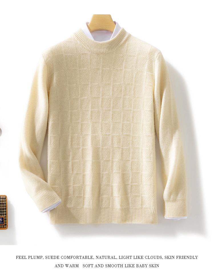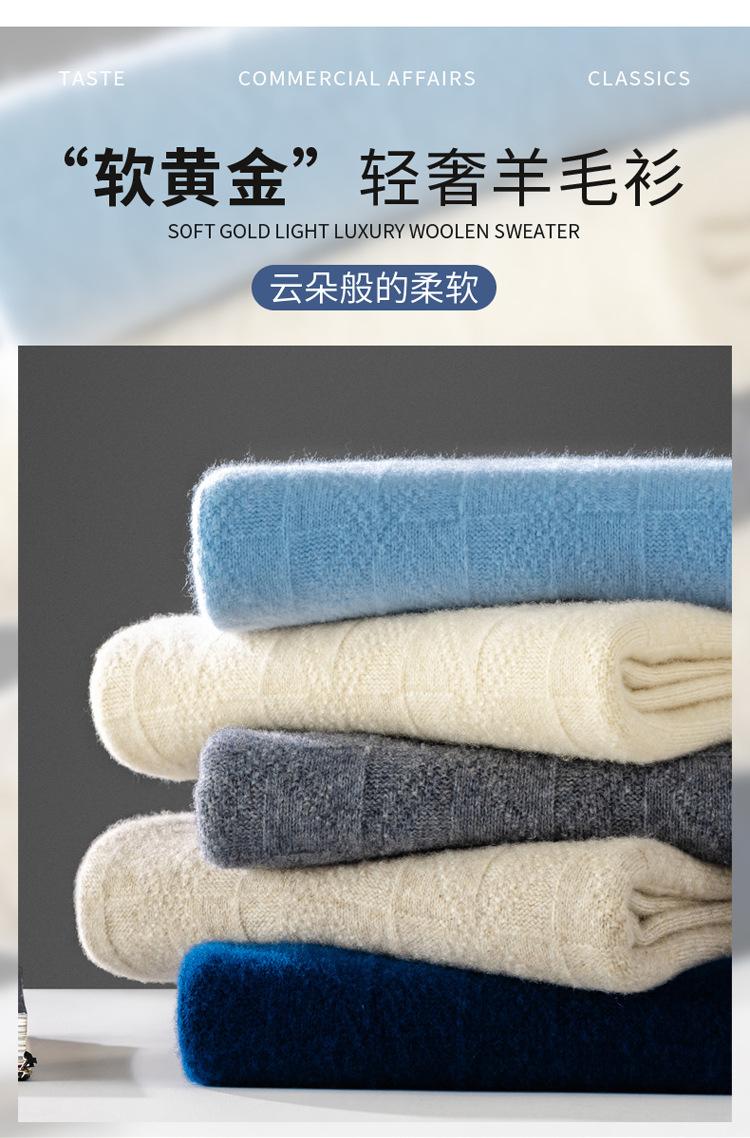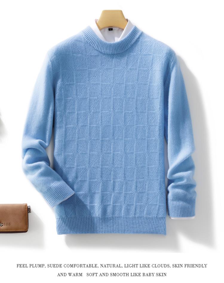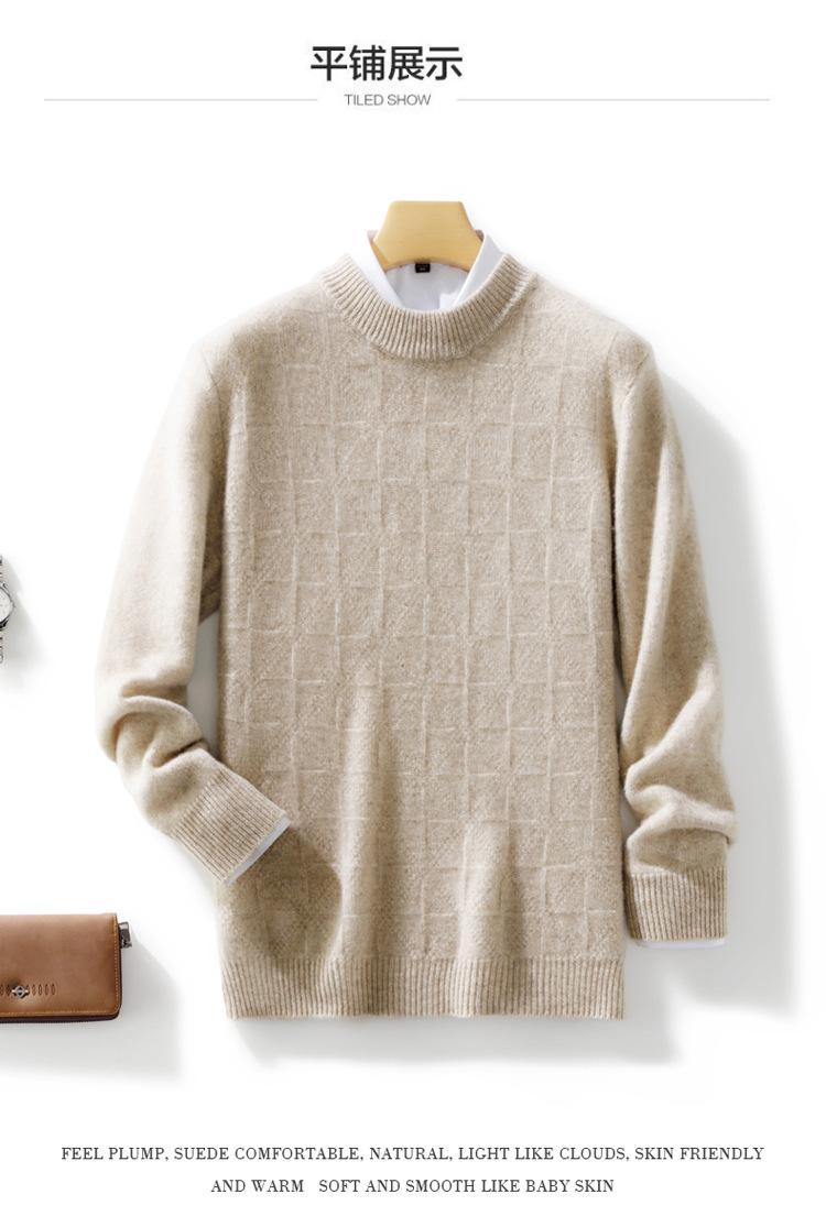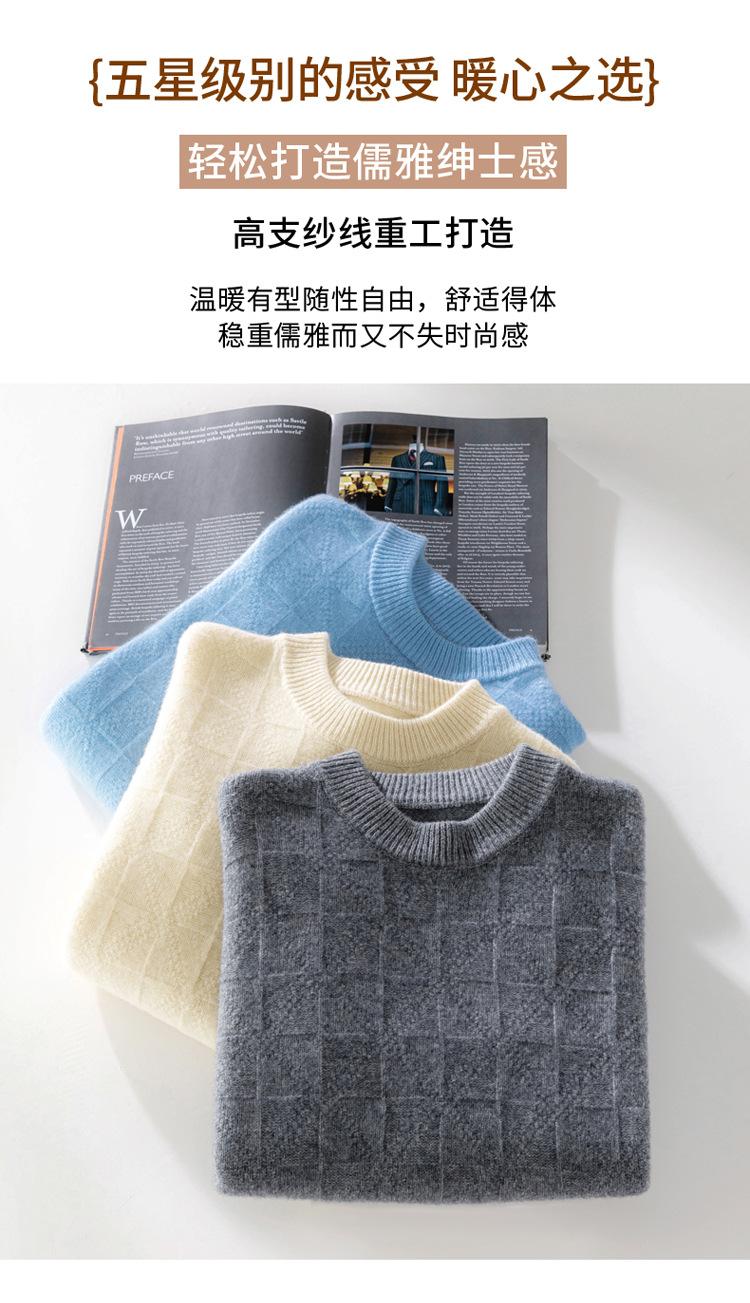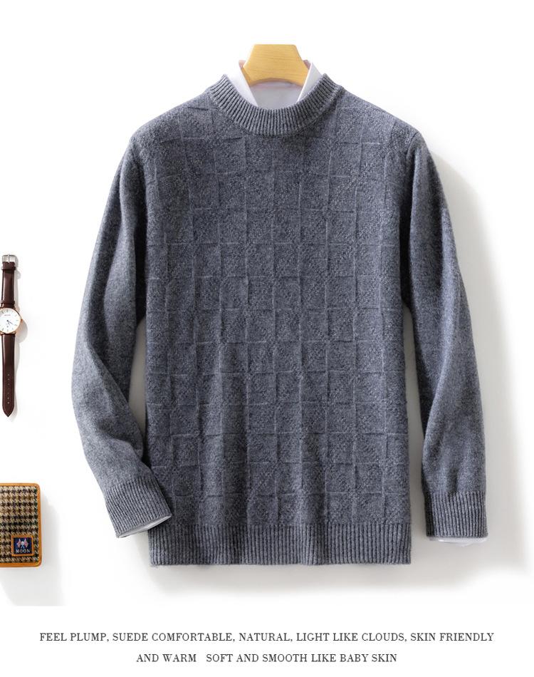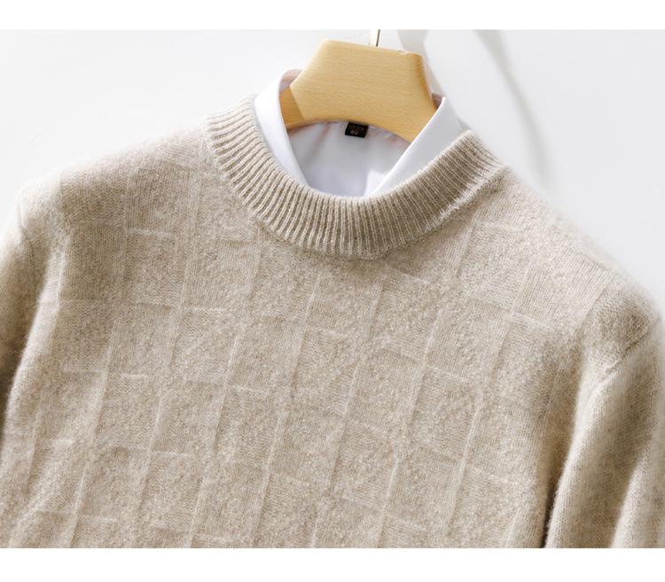 Suéter de lana nuevo de otoño e invierno para hombre, suéter jacquard grueso con cuello redondo, suelto, informal, de negocios, ligero, de lujo, de punto, camisa inferior