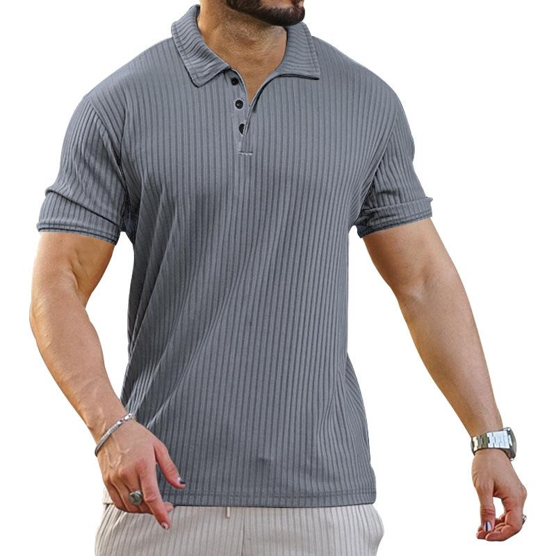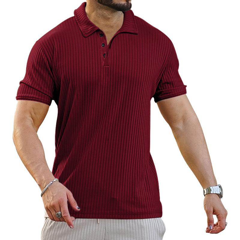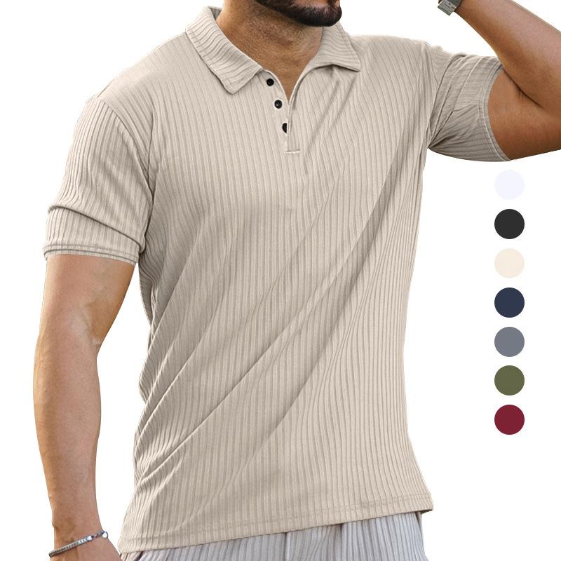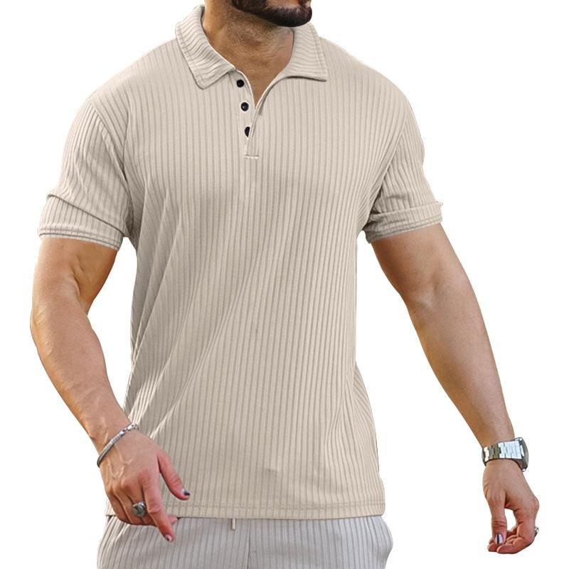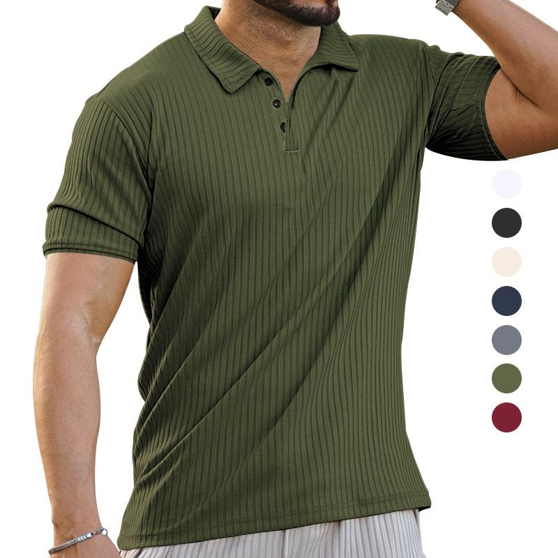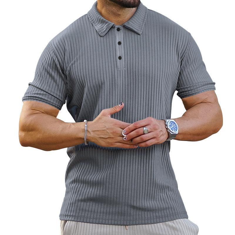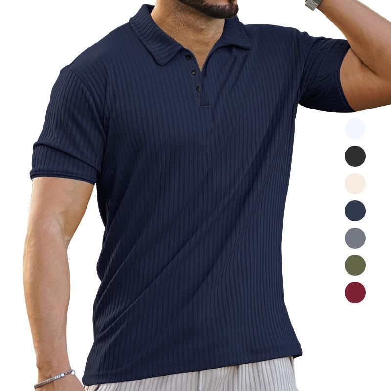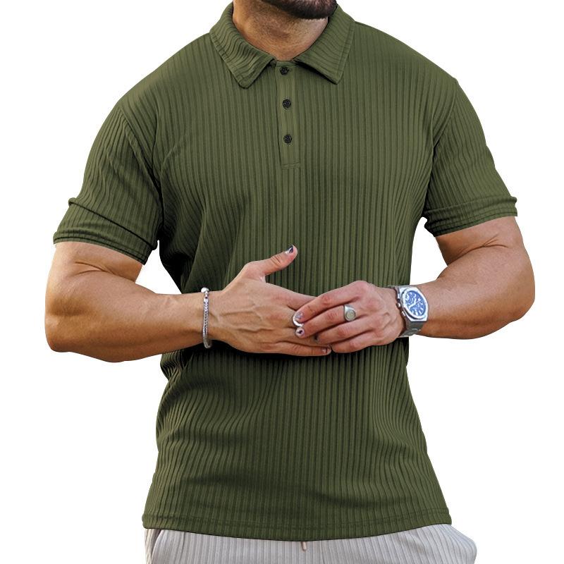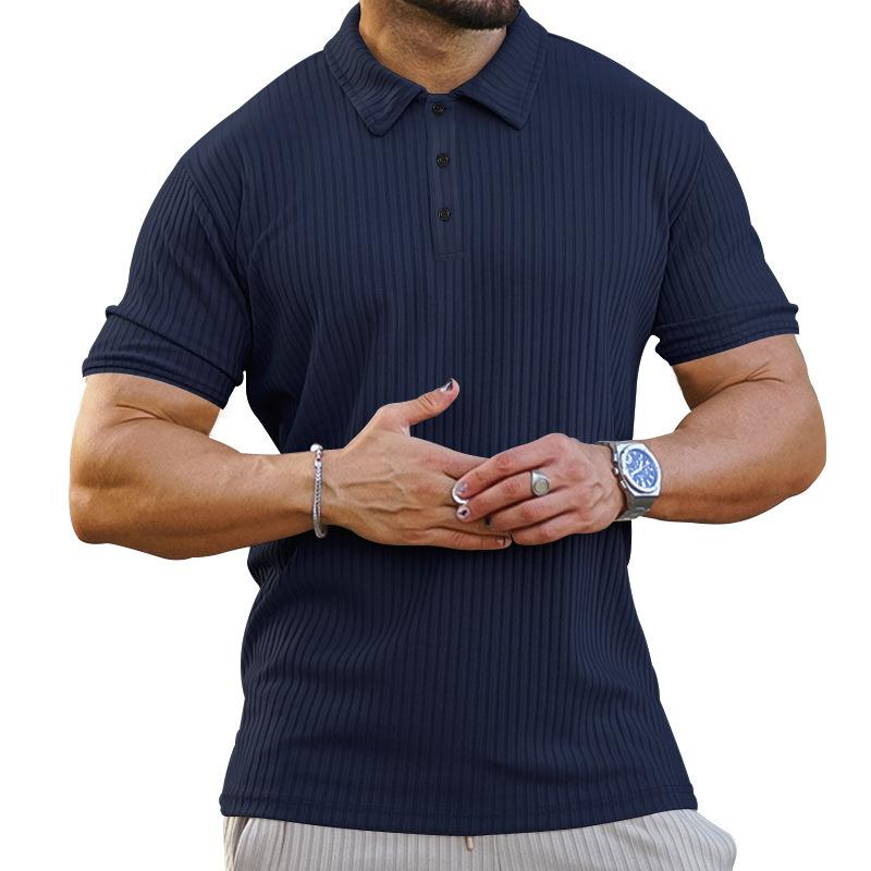 Polo de comercio exterior transfronterizo para hombre, camiseta de Amazon para hombre, con rayas, botones y solapa, color liso, holgado, 2023