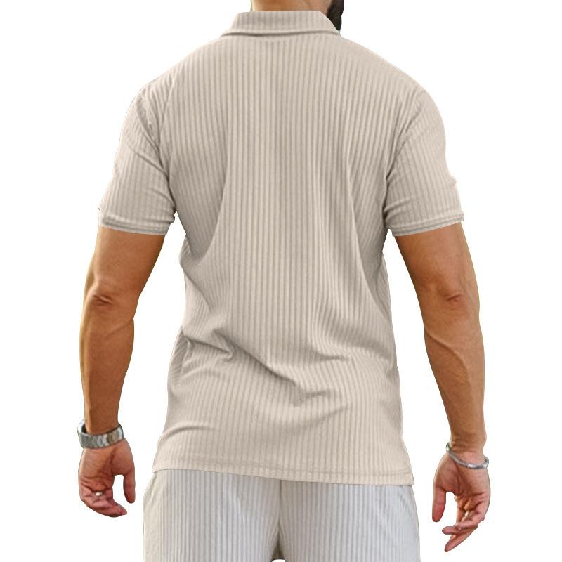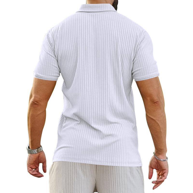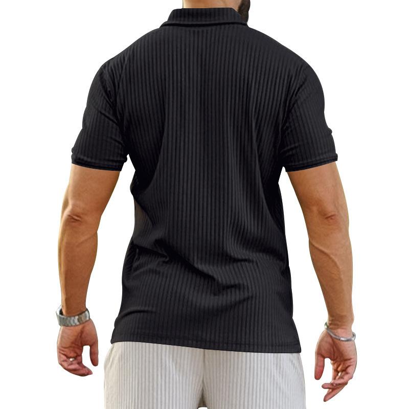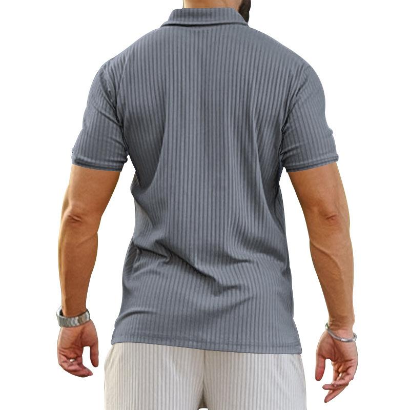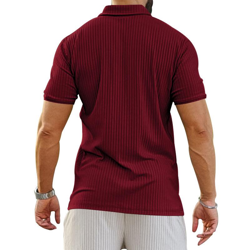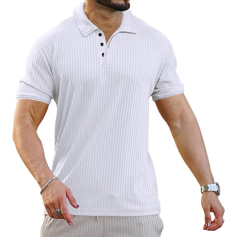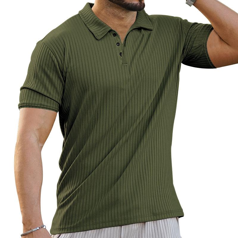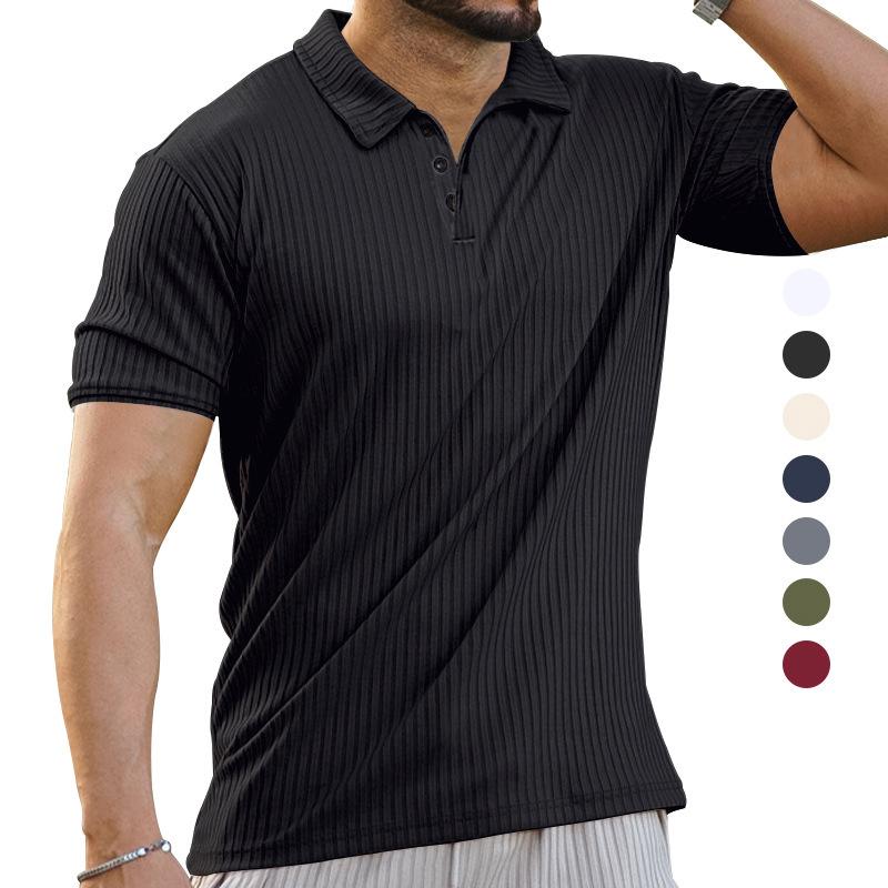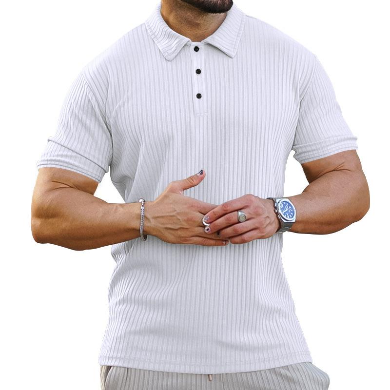 Polo de comercio exterior transfronterizo para hombre, camiseta de Amazon para hombre, con rayas, botones y solapa, color liso, holgado, 2023