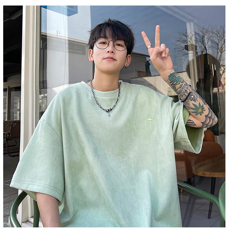 Camiseta retro americana de verano para hombre, moda de nicho, camiseta de manga corta, marca de moda urbana, camiseta informal holgada de media manga.