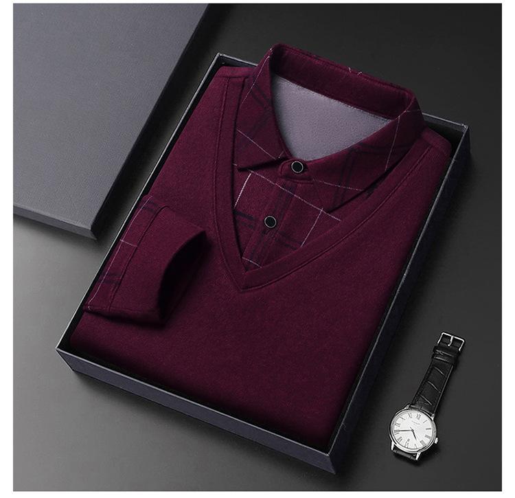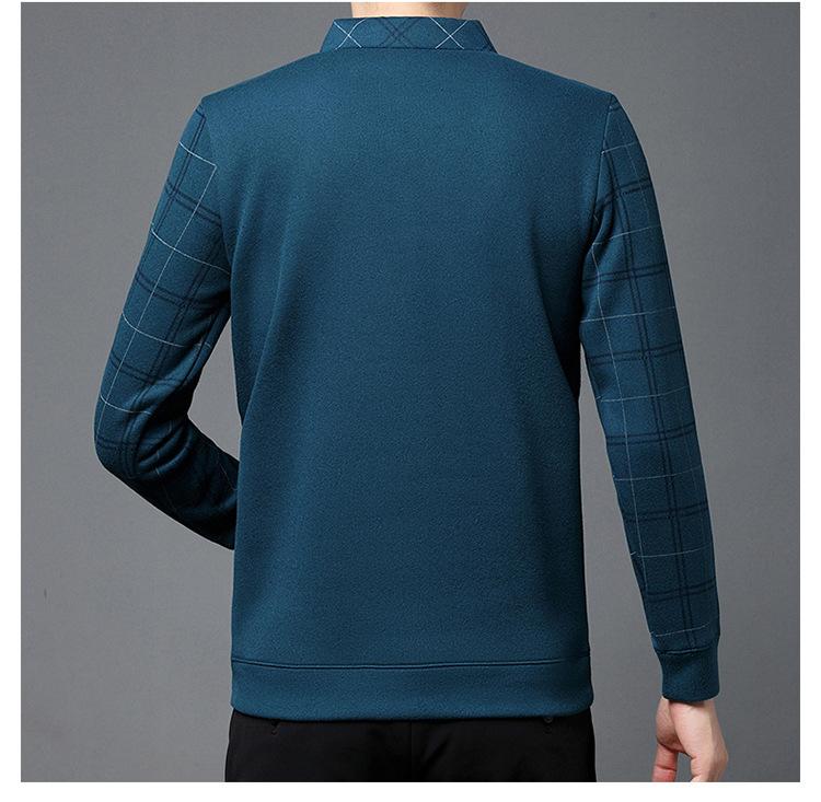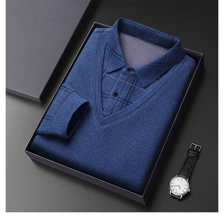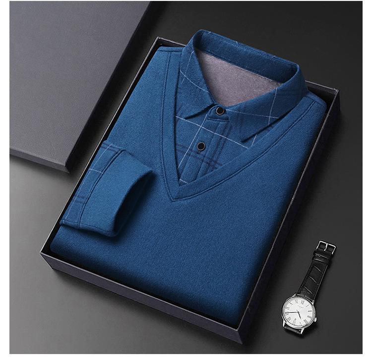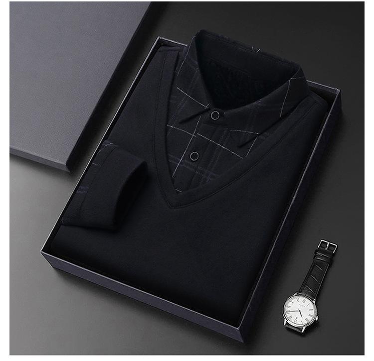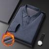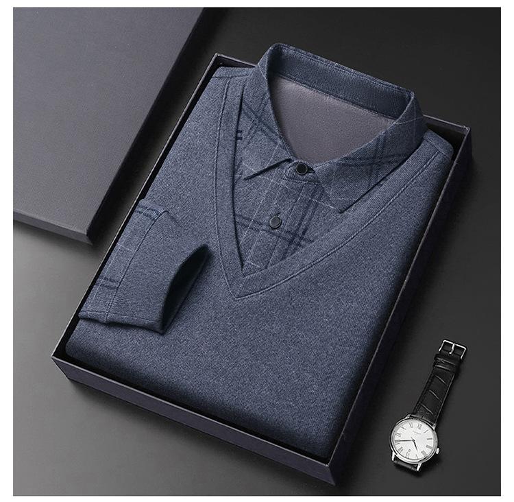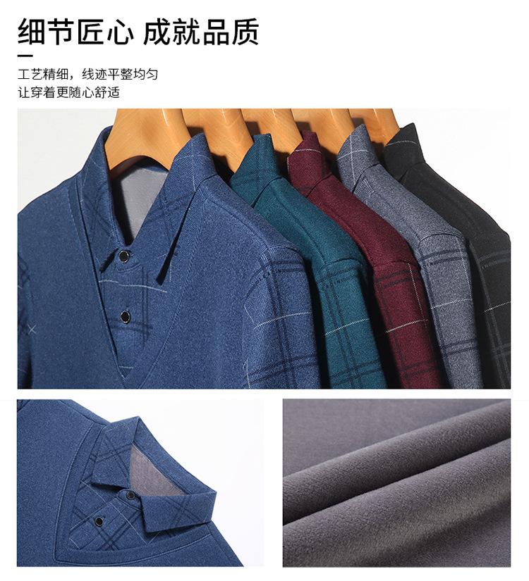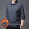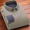 Camiseta cálida con solapa de dos piezas y forro polar para hombre de mediana edad, nueva, de otoño e invierno, con cuello y botones