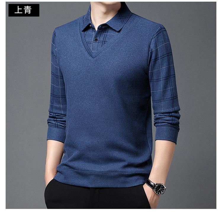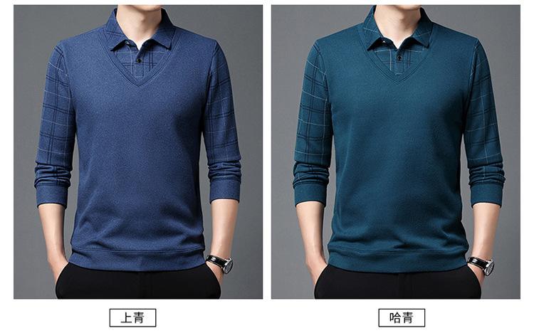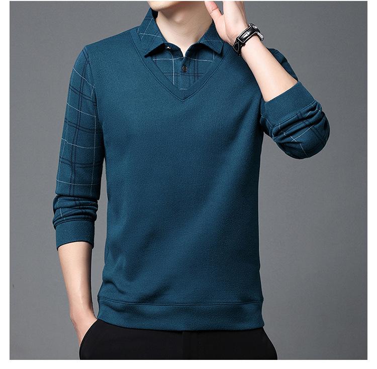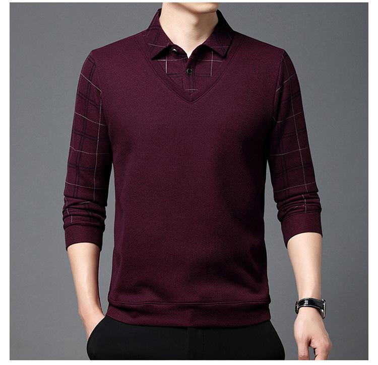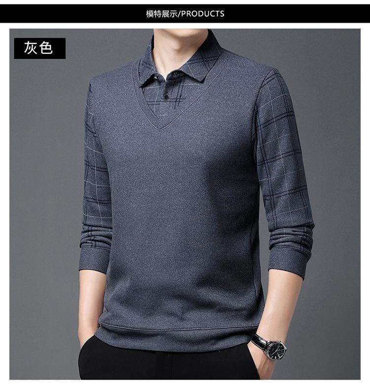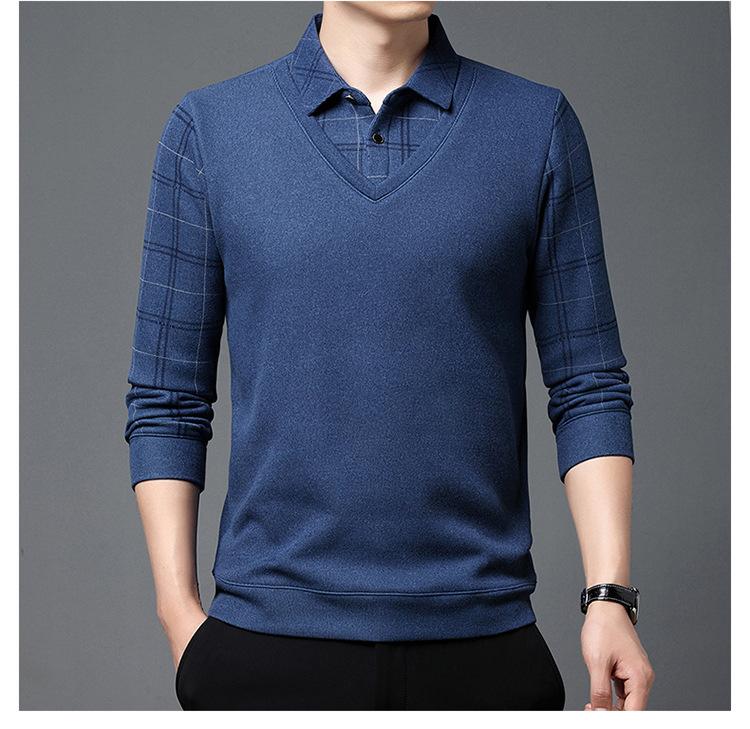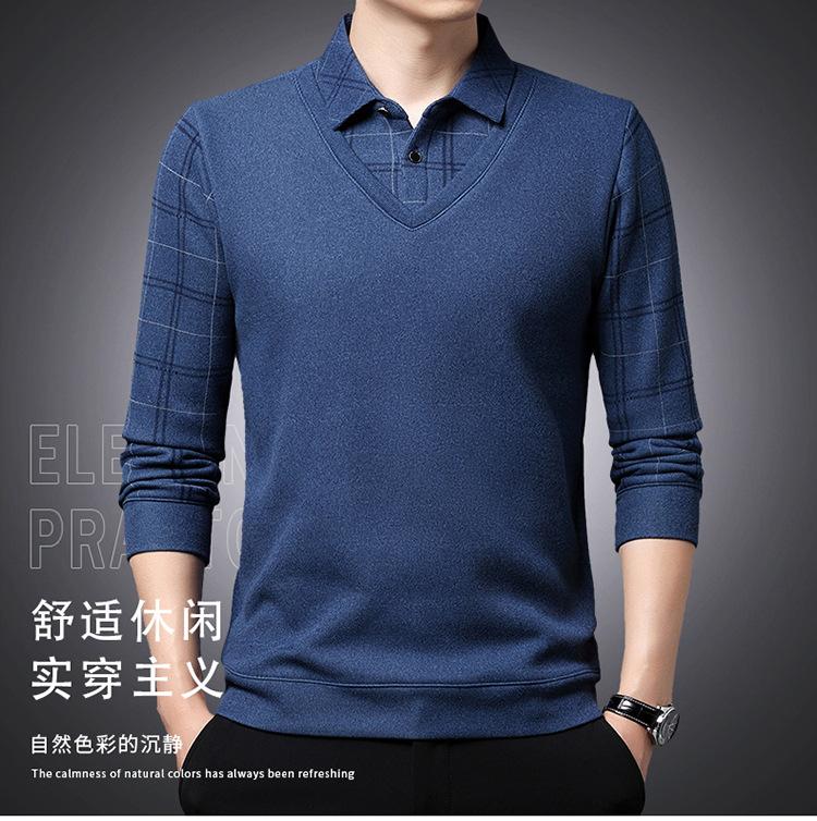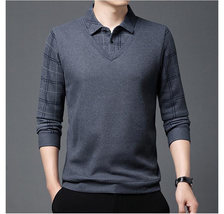 Camiseta cálida con solapa de dos piezas y forro polar para hombre de mediana edad, nueva, de otoño e invierno, con cuello y botones