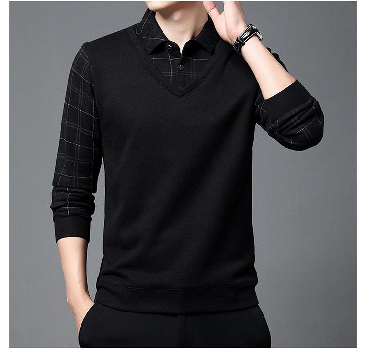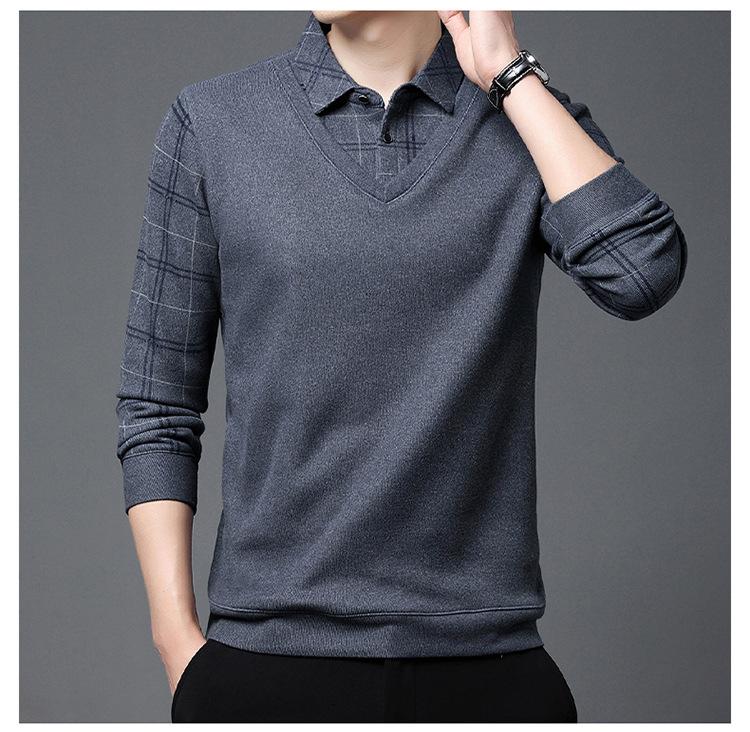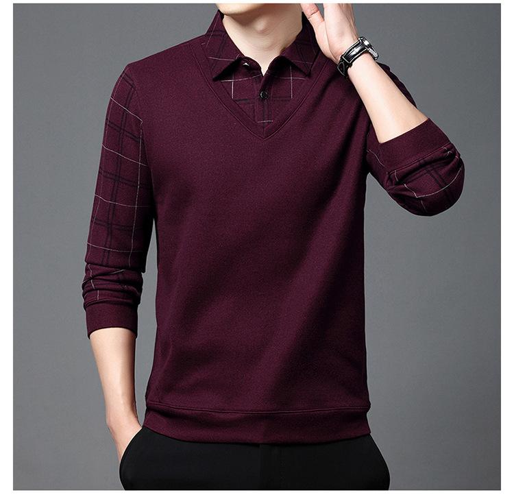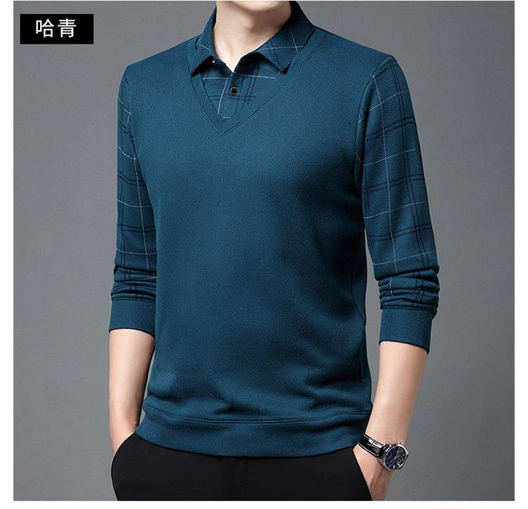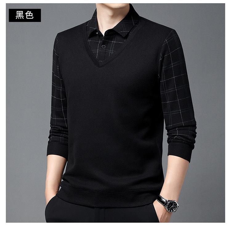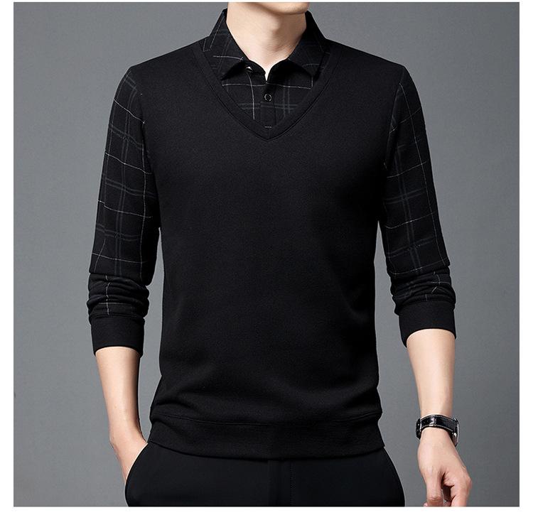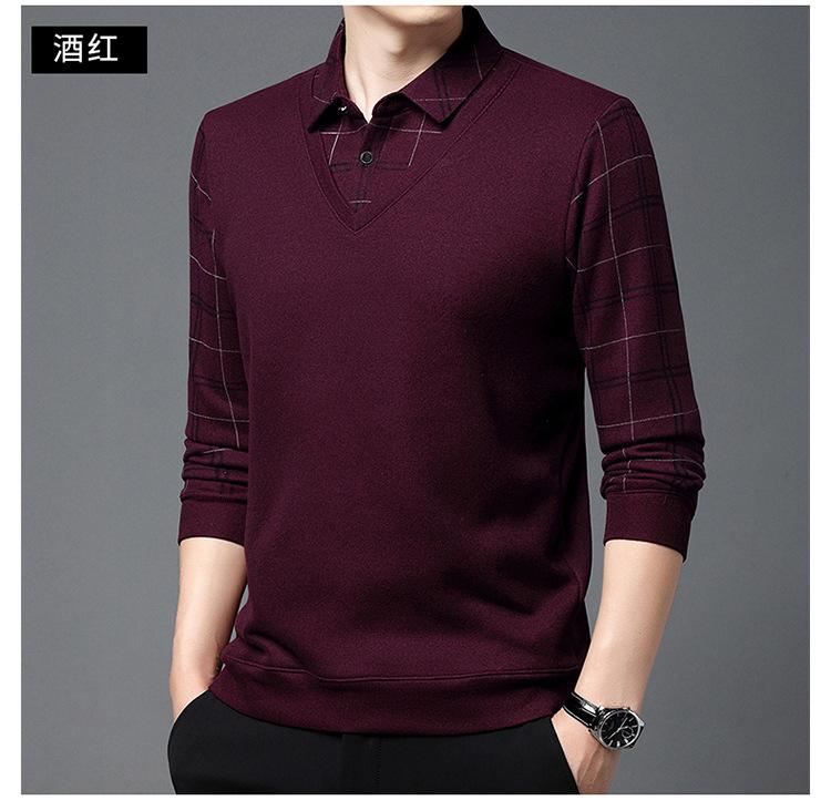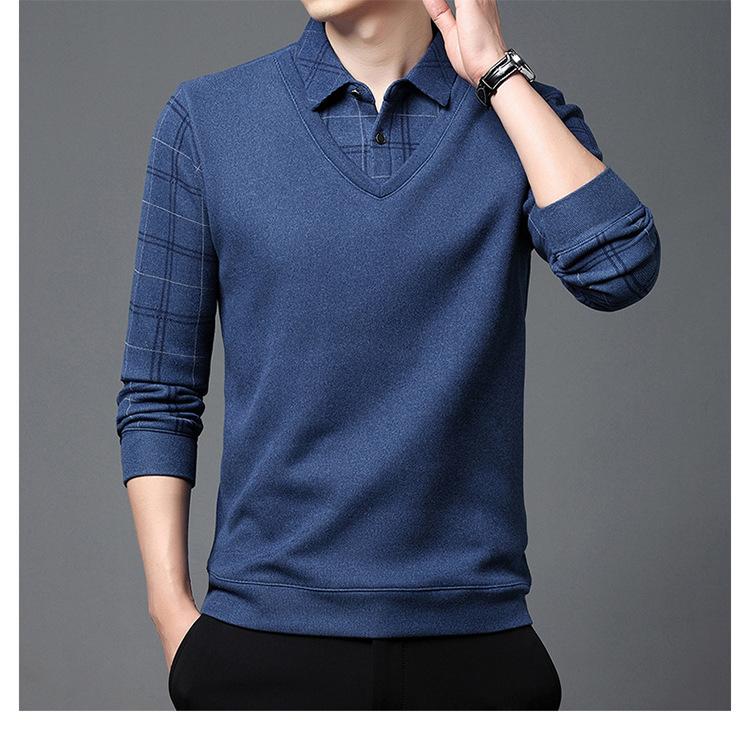 Camiseta cálida con solapa de dos piezas y forro polar para hombre de mediana edad, nueva, de otoño e invierno, con cuello y botones