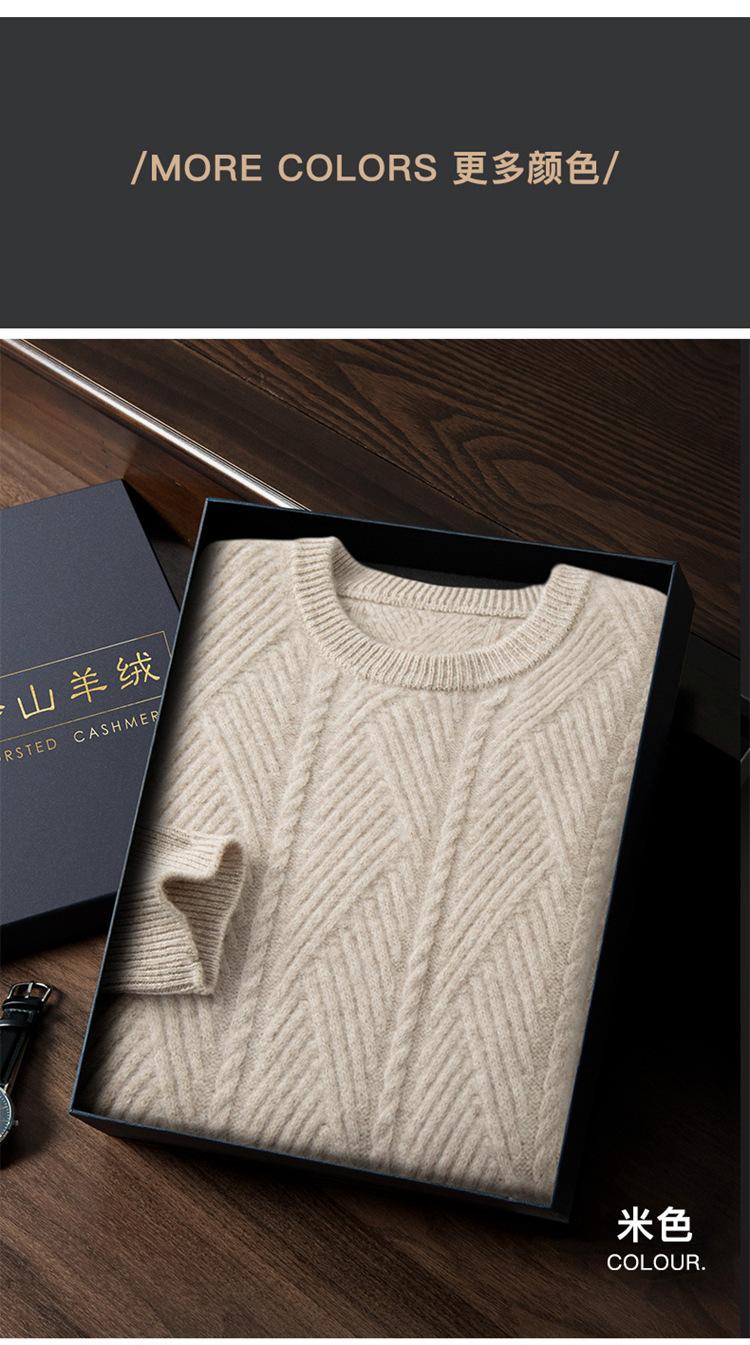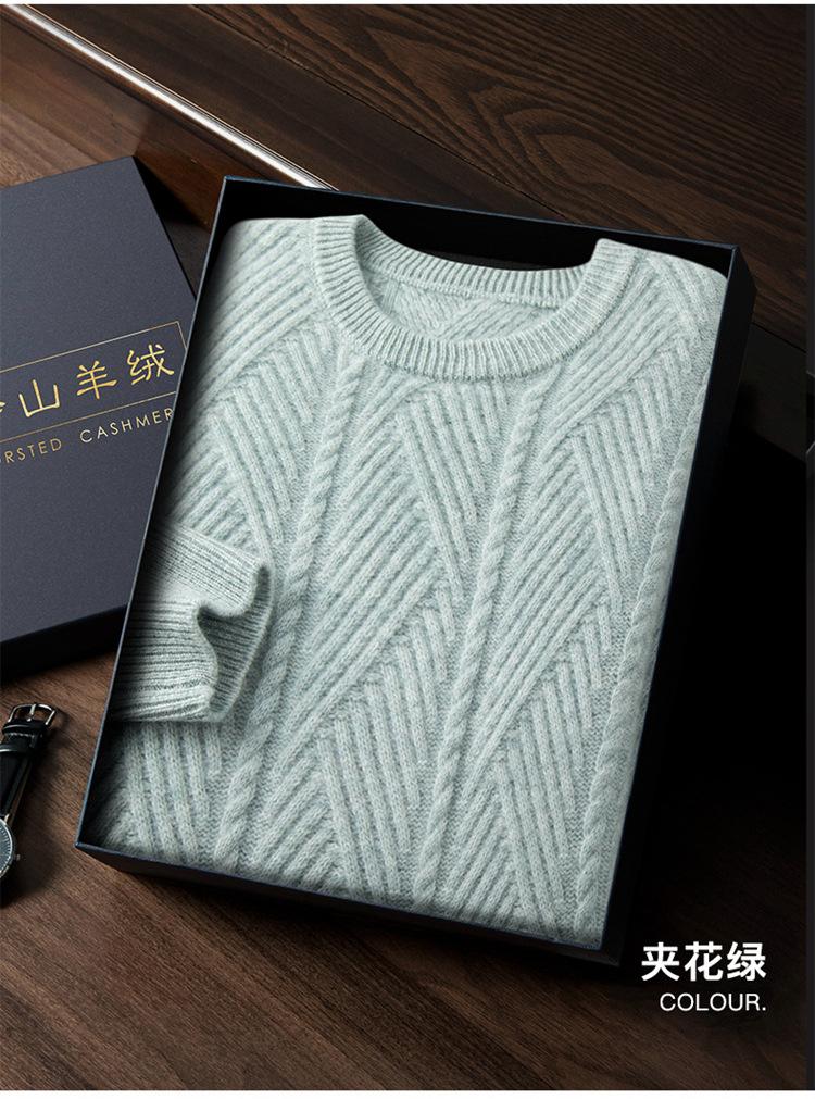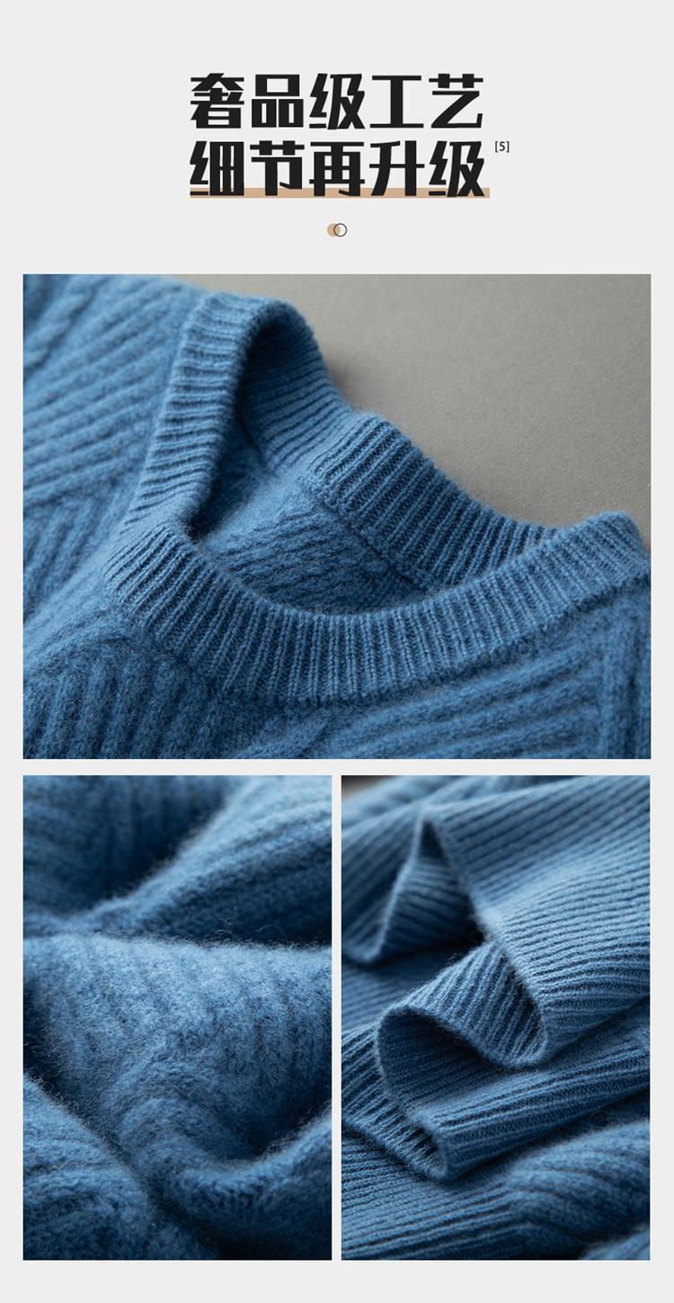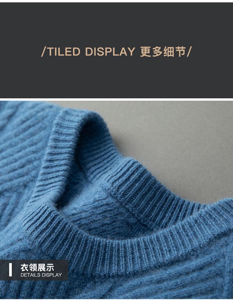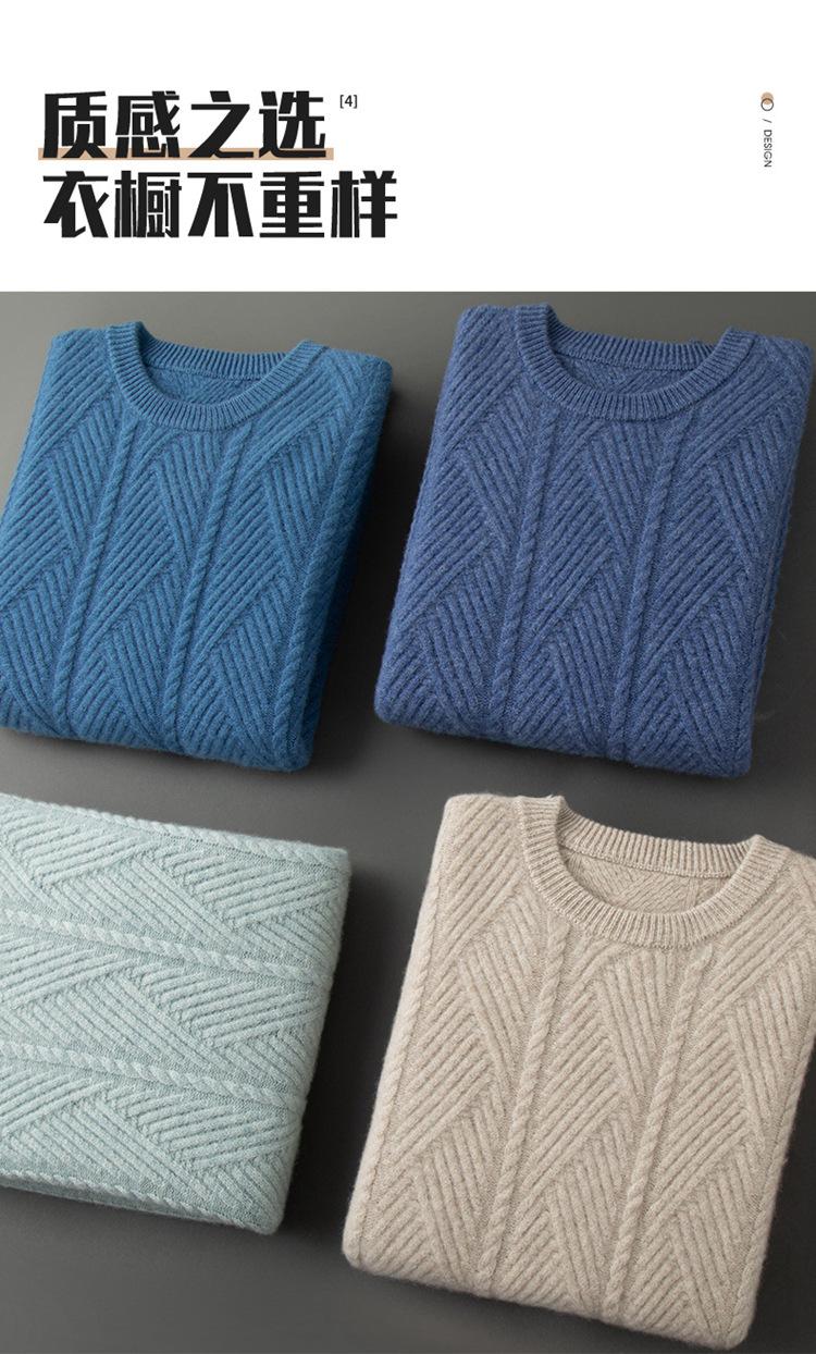Suéter de cuello medio redondo de jacquard engrosado para hombre, suéter de rombos de manga larga, camisa de fondo cálida, suéter de cachemira