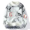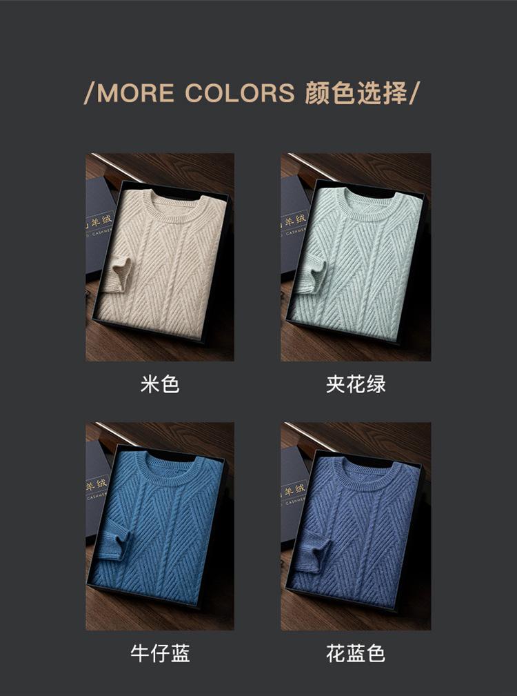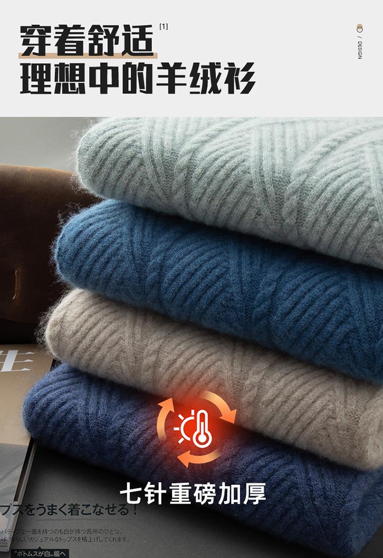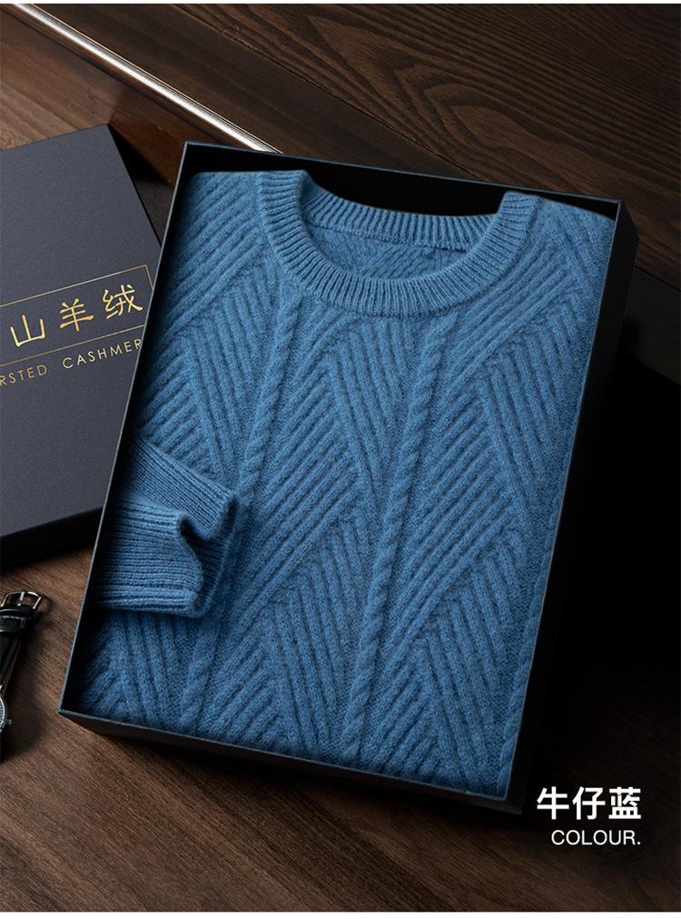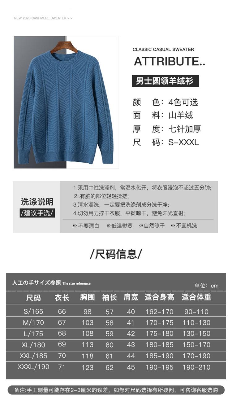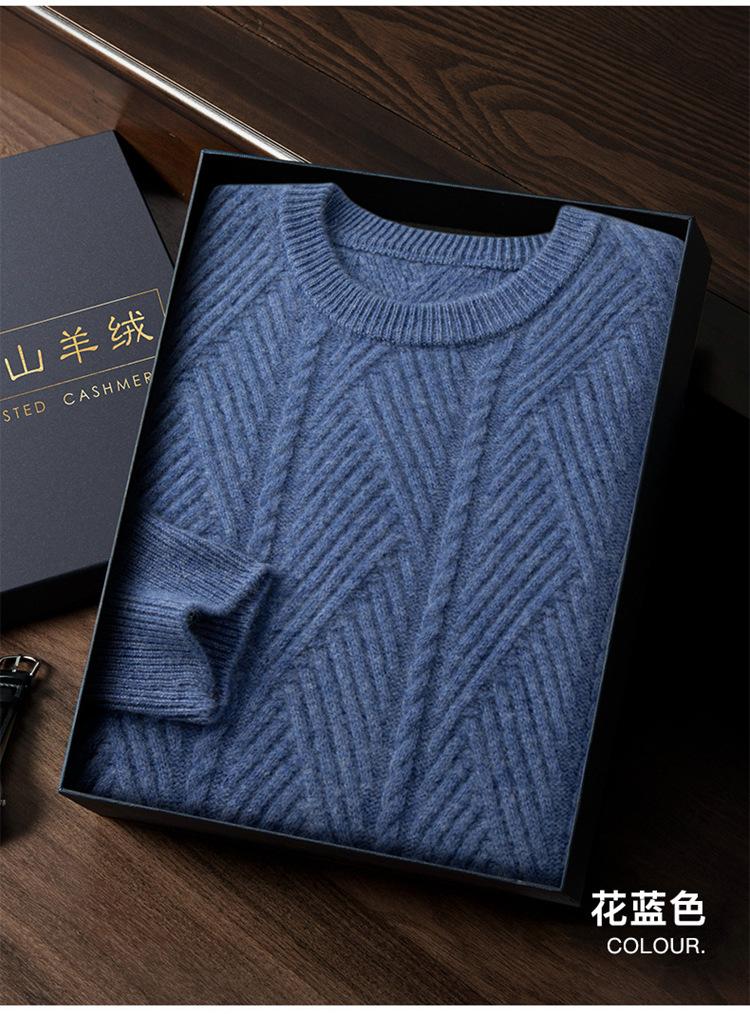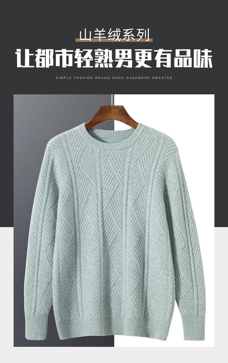 Suéter de cuello medio redondo de jacquard engrosado para hombre, suéter de rombos de manga larga, camisa de fondo cálida, suéter de cachemira