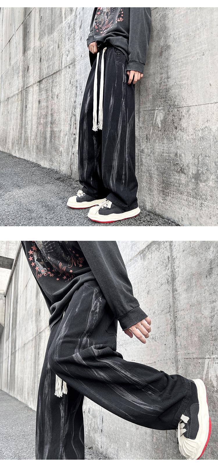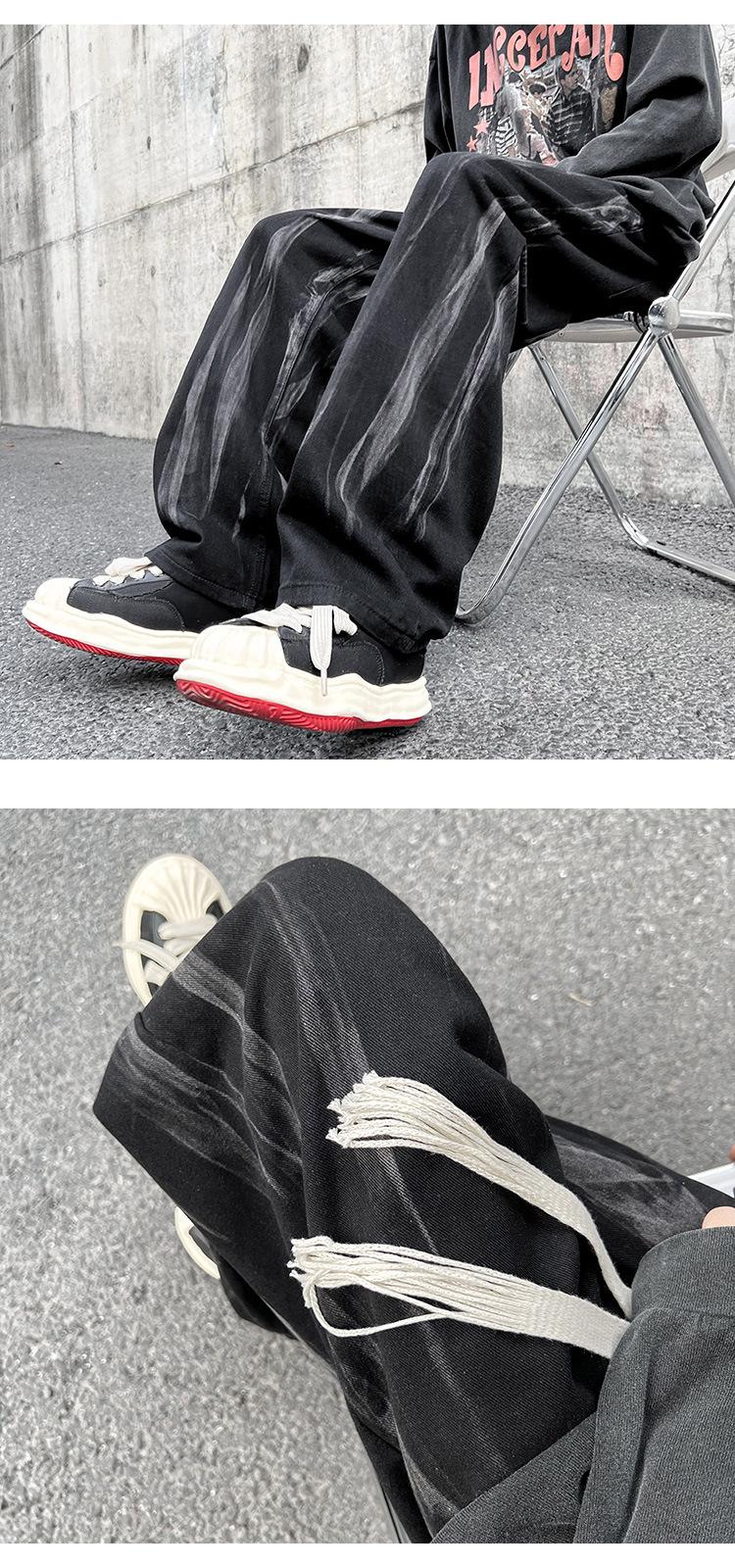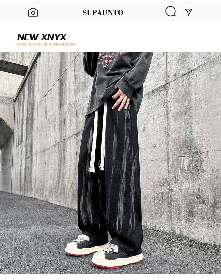 Pantalones vaqueros teñidos anudados para hombre, de marca de moda de primavera y otoño, holgados, de pierna ancha, vintage, combinables, elegantes y de moda.