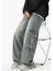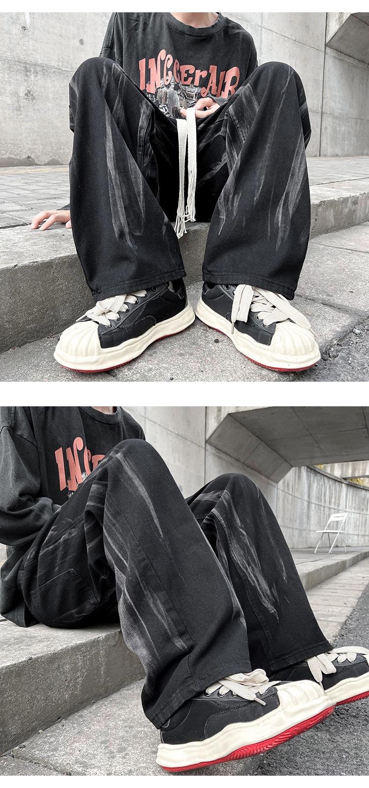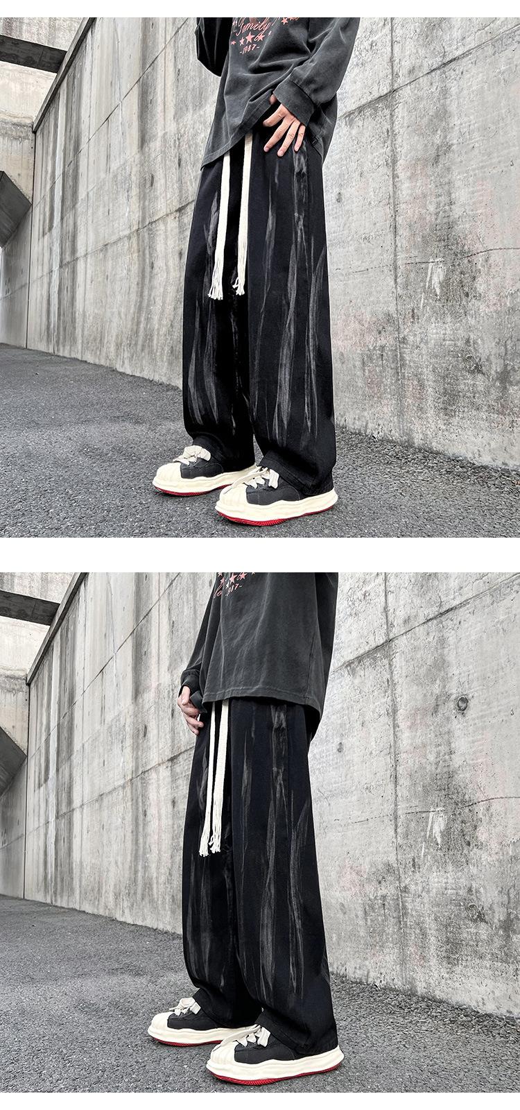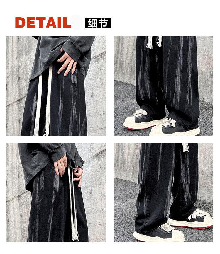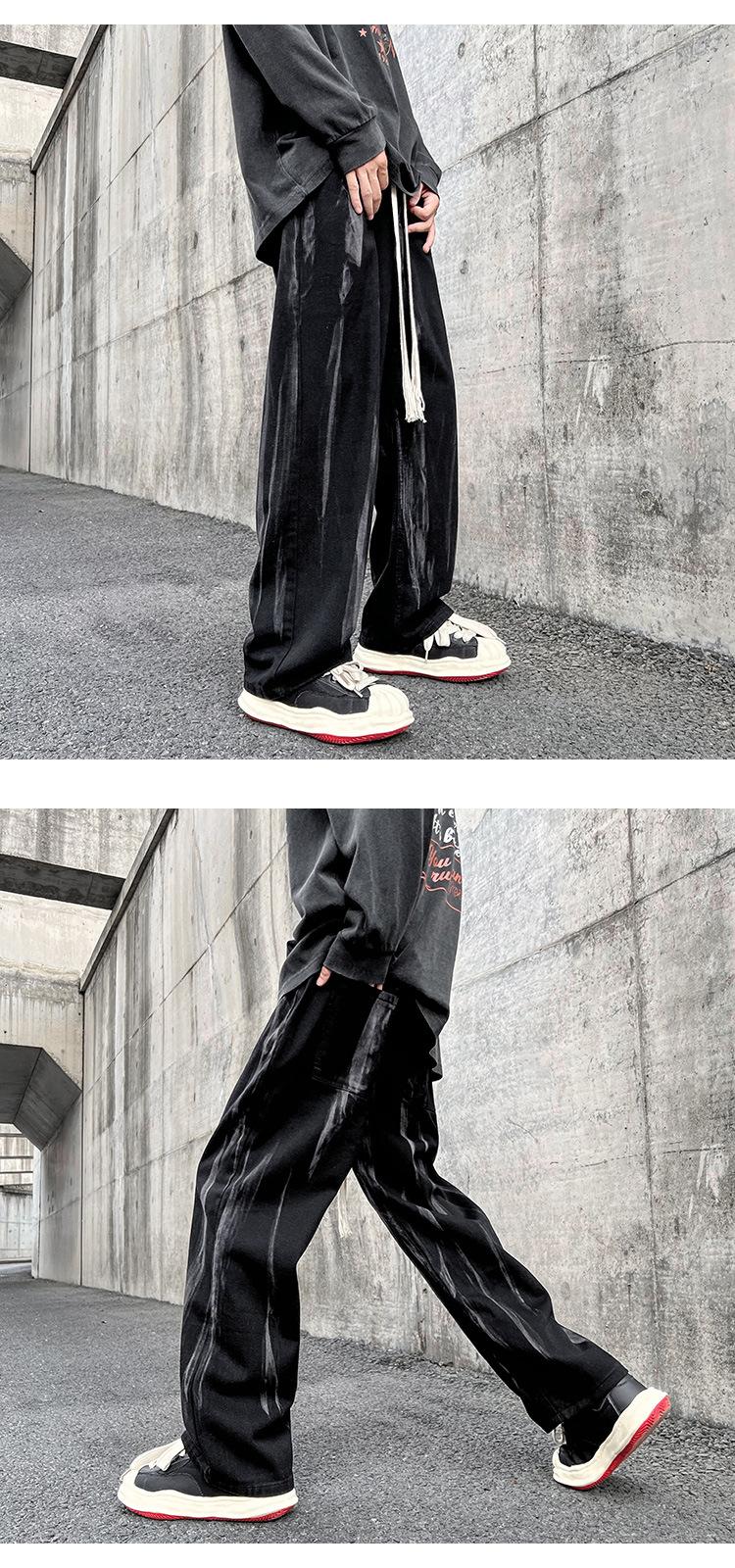 Pantalones vaqueros teñidos anudados para hombre, de marca de moda de primavera y otoño, holgados, de pierna ancha, vintage, combinables, elegantes y de moda.