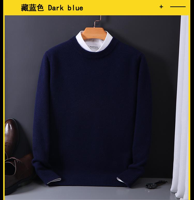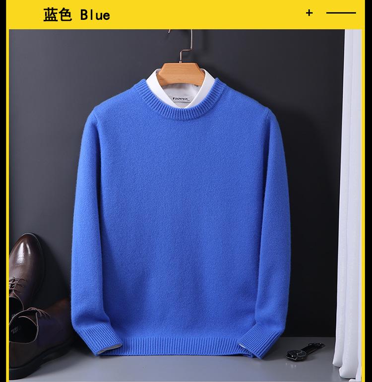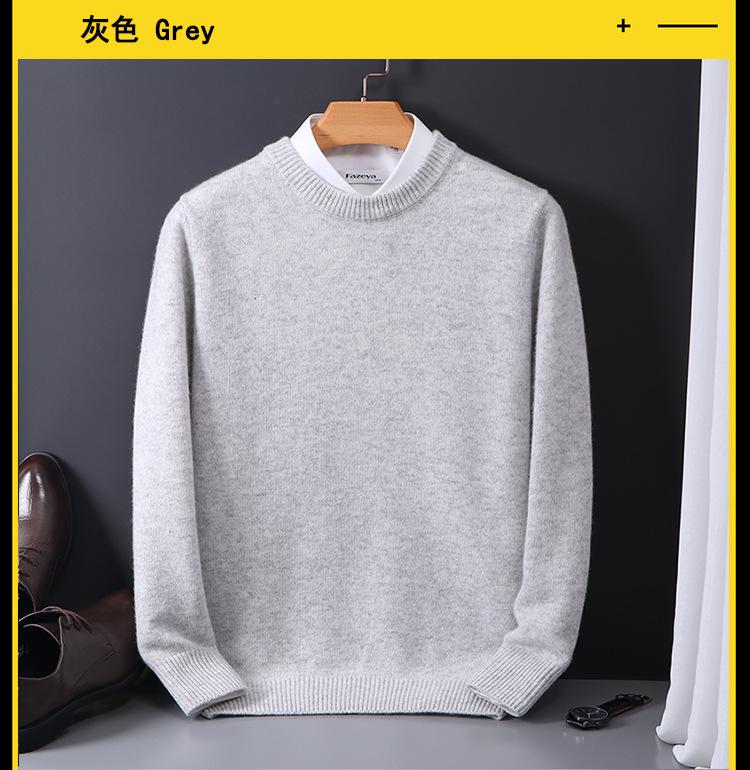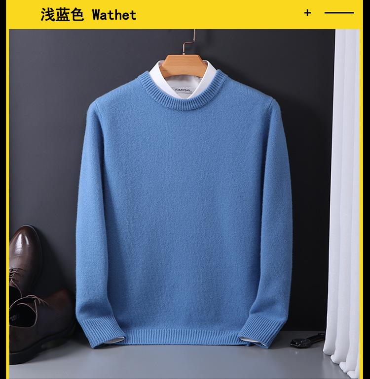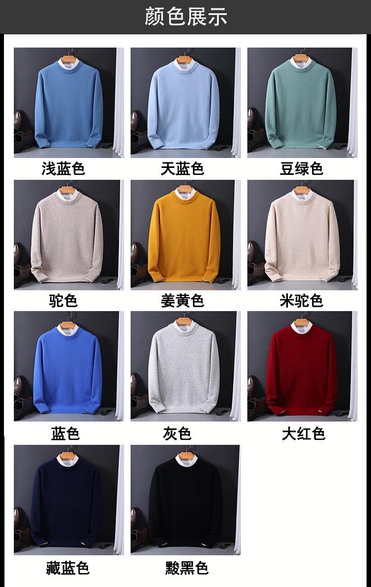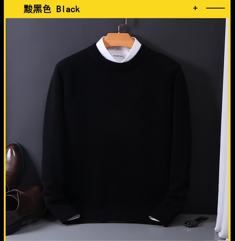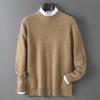 Suéter de Otoño e Invierno 100% Lana Pura para Hombre, Jersey de Cuello Redondo, Color Sólido, Suéter Grueso Tejido Holgado Base de Cachemira