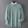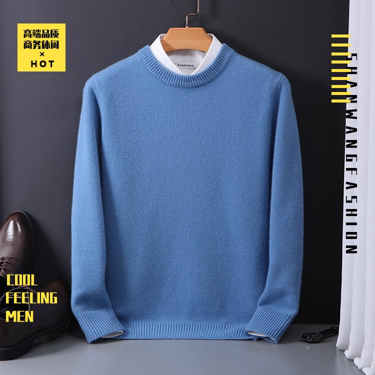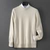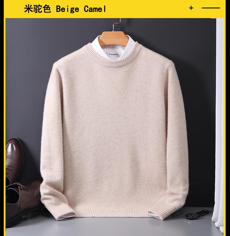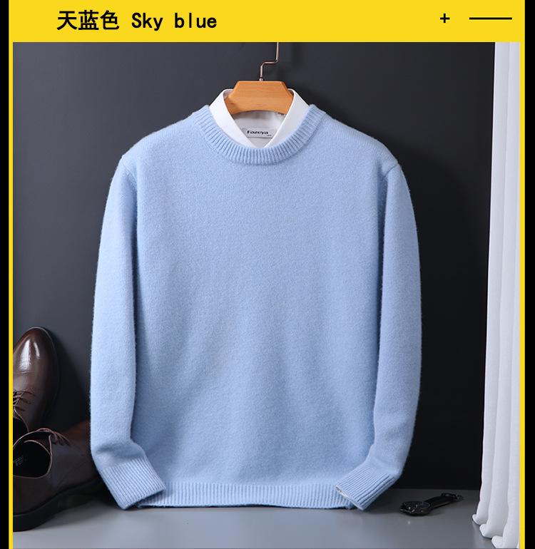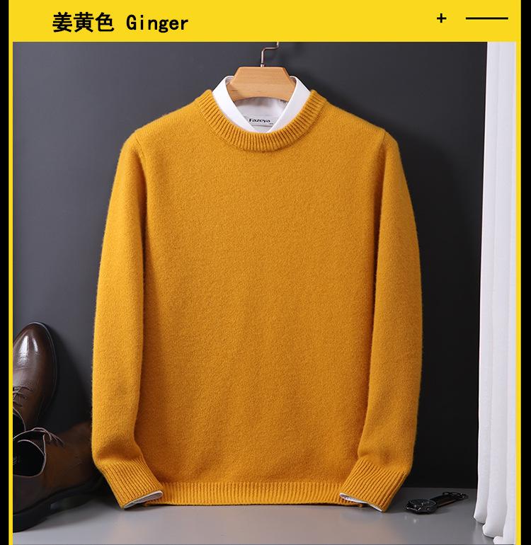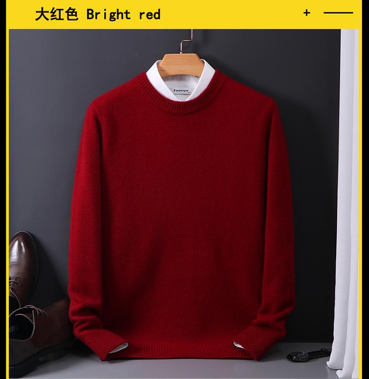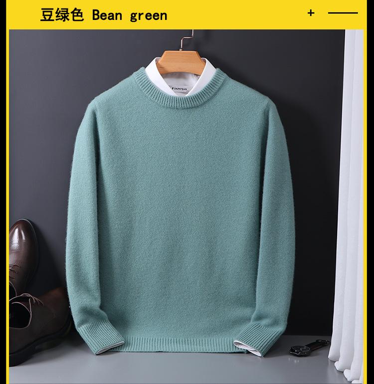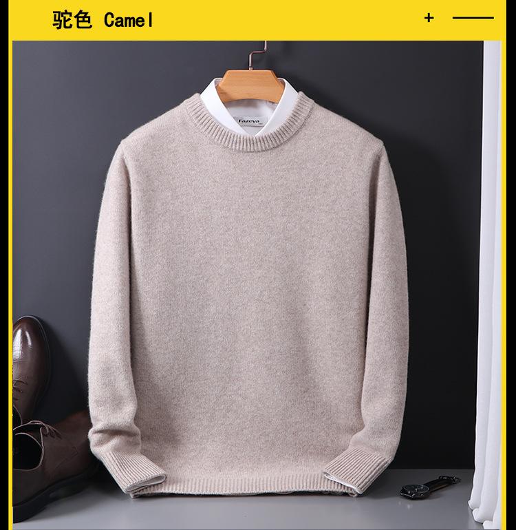 Suéter de Otoño e Invierno 100% Lana Pura para Hombre, Jersey de Cuello Redondo, Color Sólido, Suéter Grueso Tejido Holgado Base de Cachemira