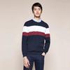 Suéter de otoño para hombre, ajustado, con rayas de colores contrastantes, manga larga, cuello redondo fino