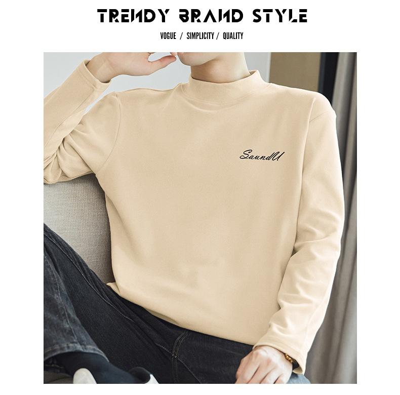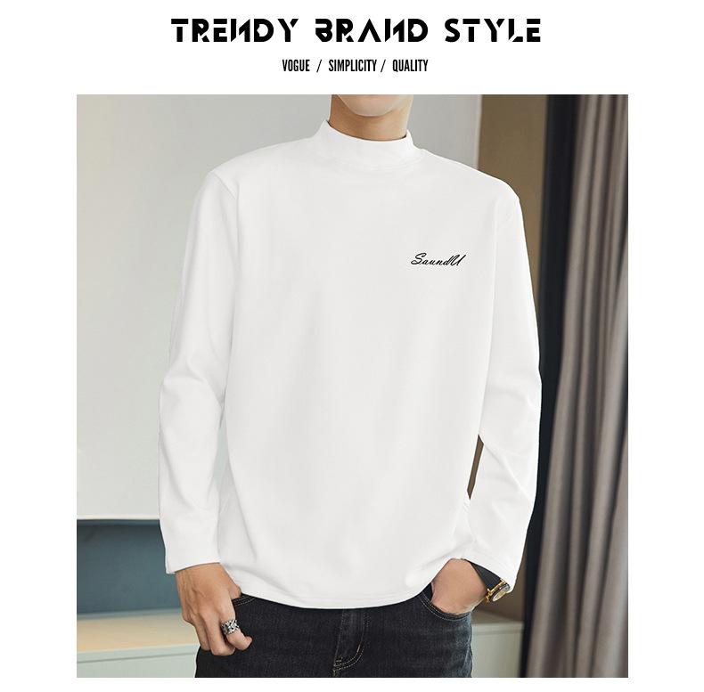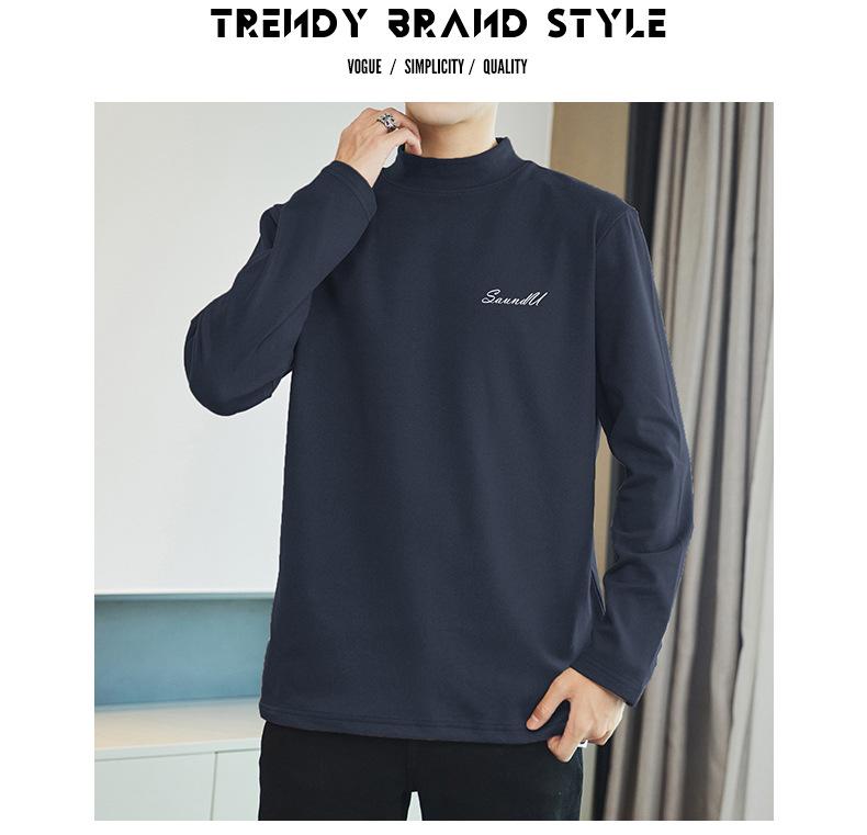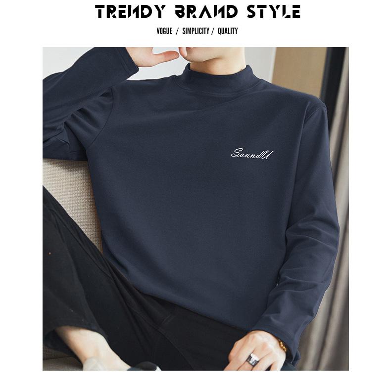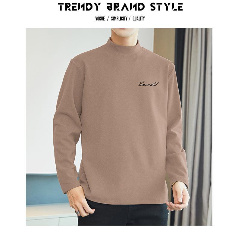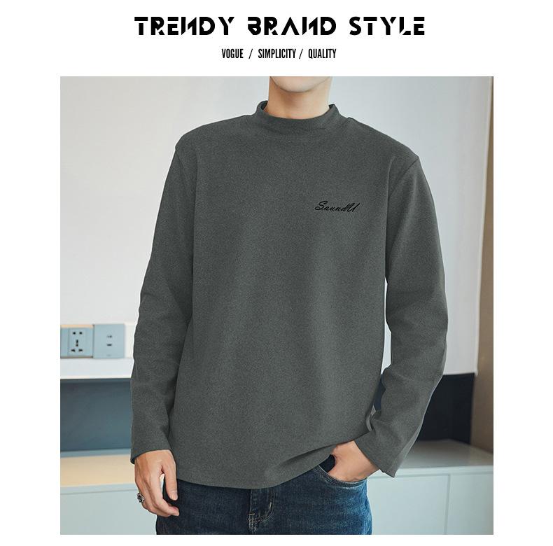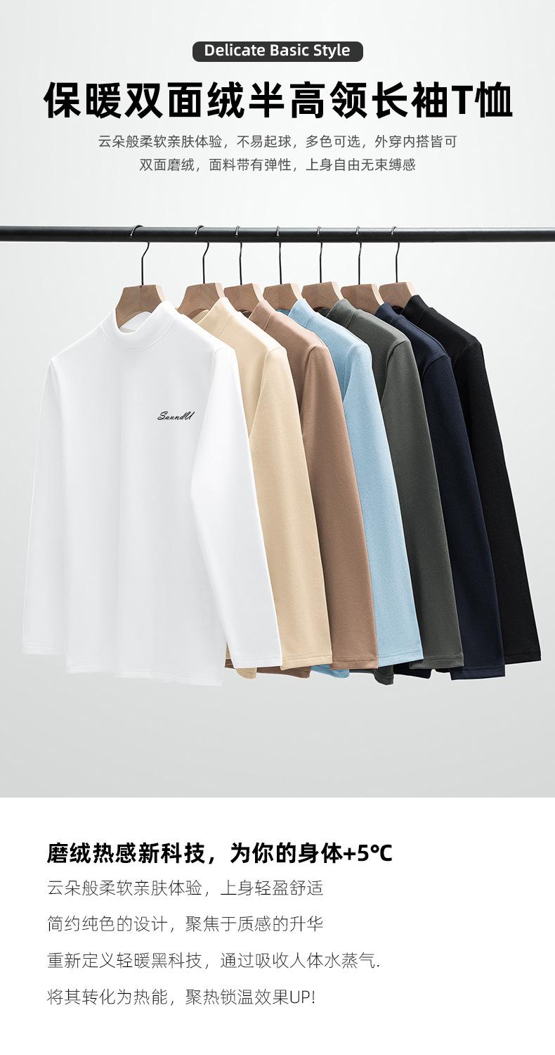 Camiseta de Manga Larga Derong para Hombre 2025 Nuevo Otoño e Invierno Cálida Cuello Medio Tortuga Interior de Terciopelo a Doble Cara Abrigo de Otoño de Cuello Medio