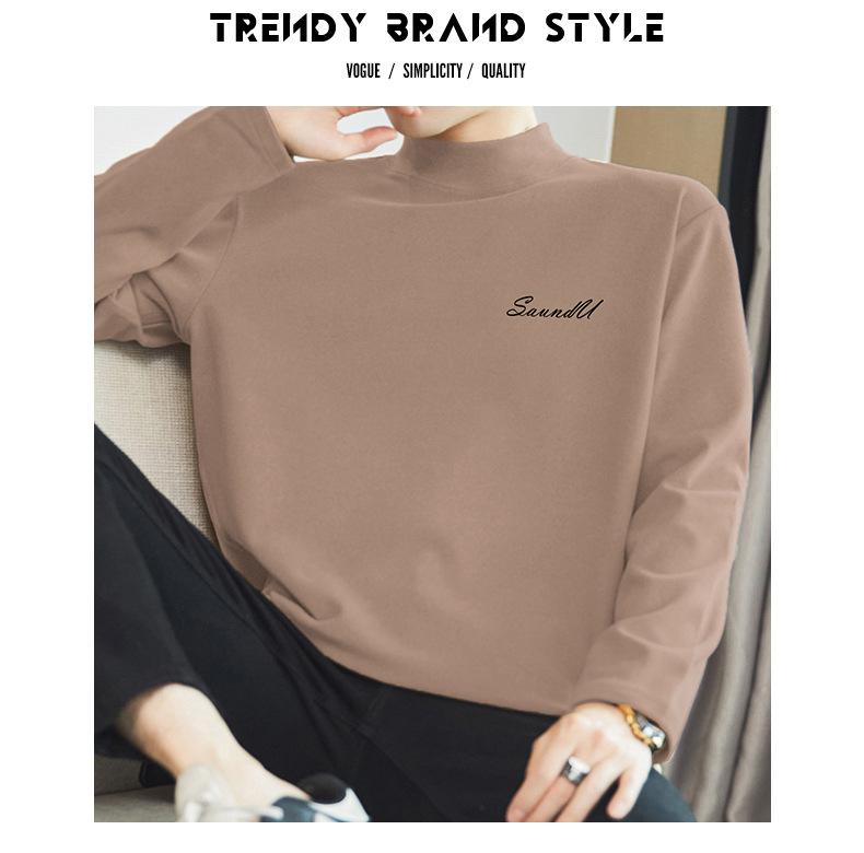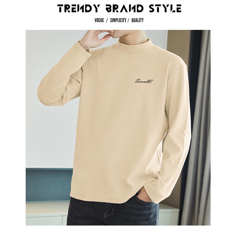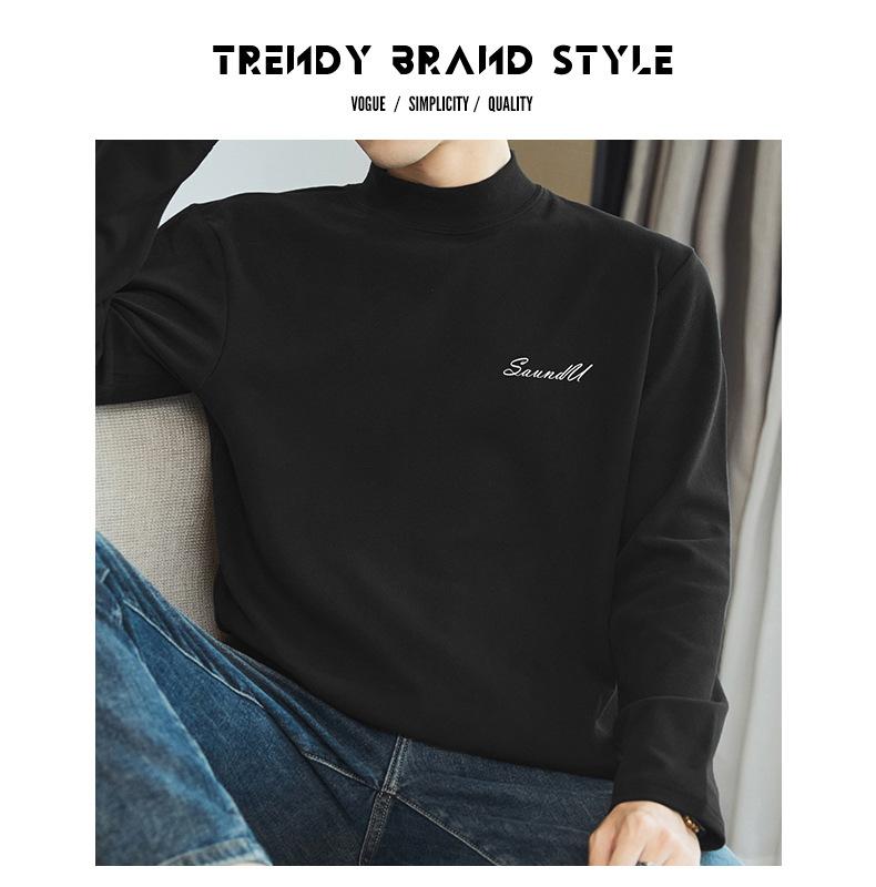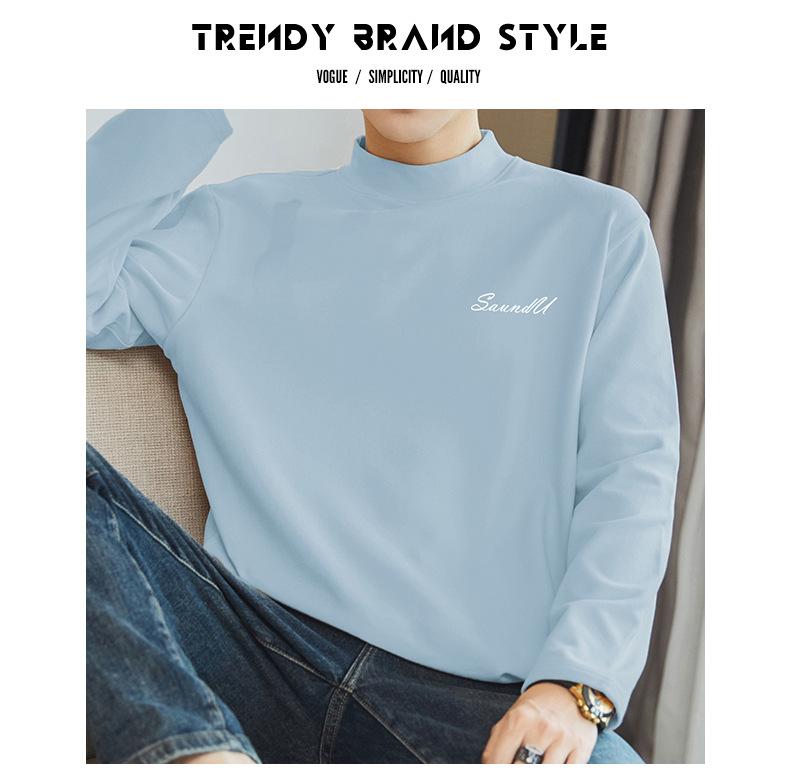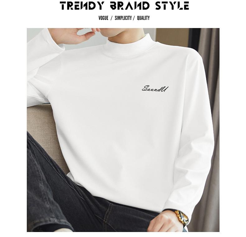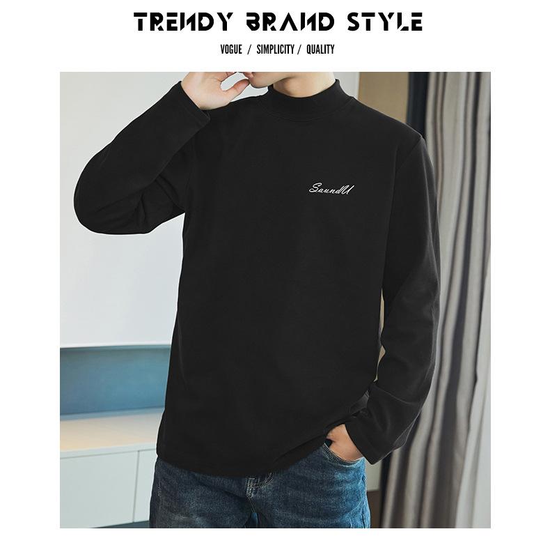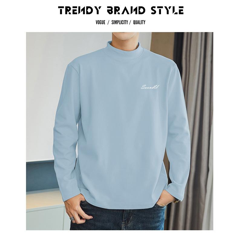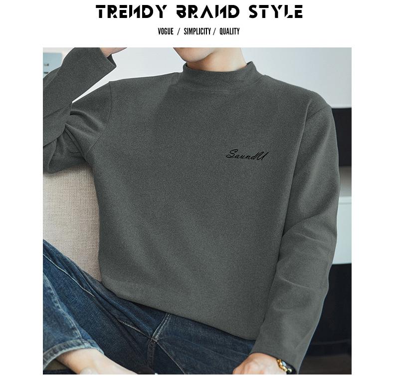 Camiseta de Manga Larga Derong para Hombre 2025 Nuevo Otoño e Invierno Cálida Cuello Medio Tortuga Interior de Terciopelo a Doble Cara Abrigo de Otoño de Cuello Medio