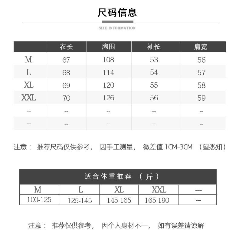 M100--125 Jin, L125--140 Jin, XL145--160 Jin, XXL165--190 Jin