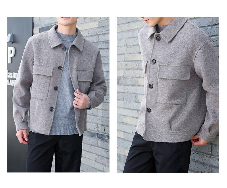 Chaqueta de lana de doble cara con solapa de traje para hombre 2023 nuevo abrigo estilo Chanel otoño e invierno de alta calidad a juego guapo