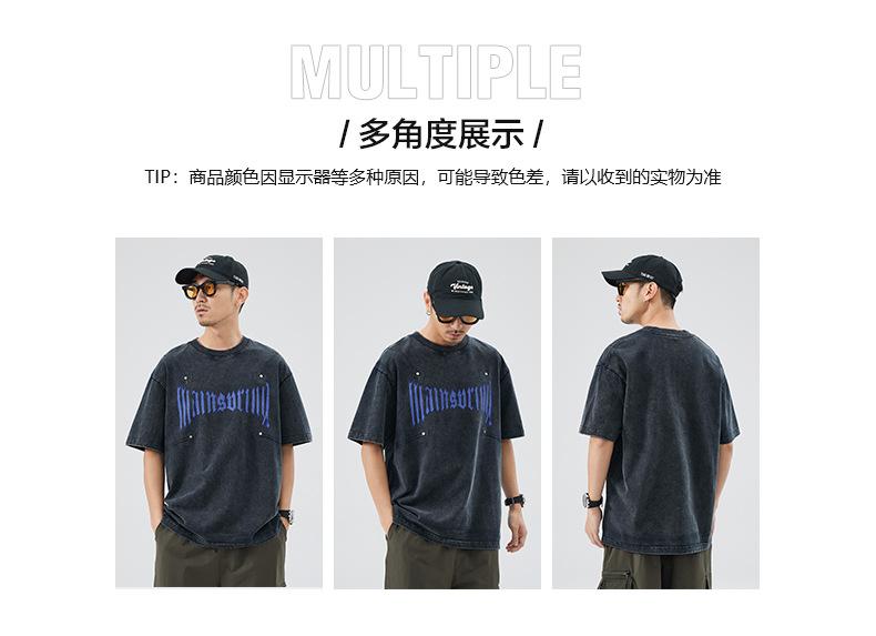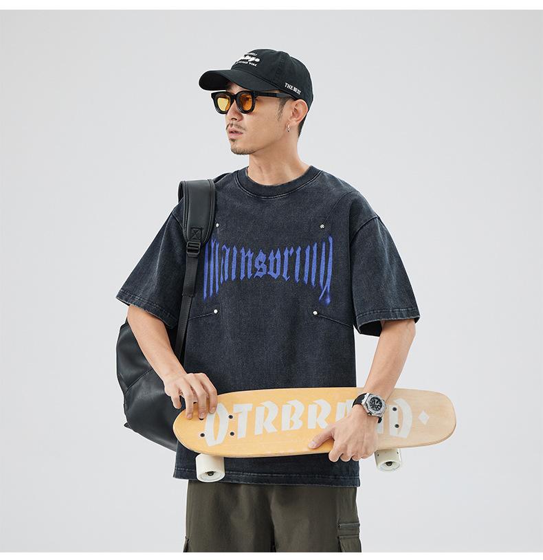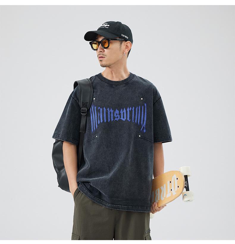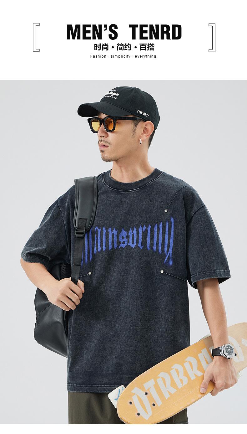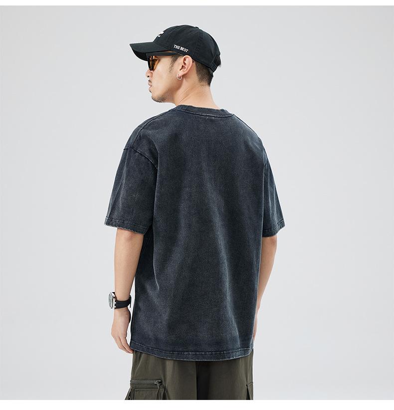 Camiseta de manga corta vieja lavada de algodón pesado para hombre, nueva camiseta de verano de estilo americano de calle alta, holgada, retro, de media manga