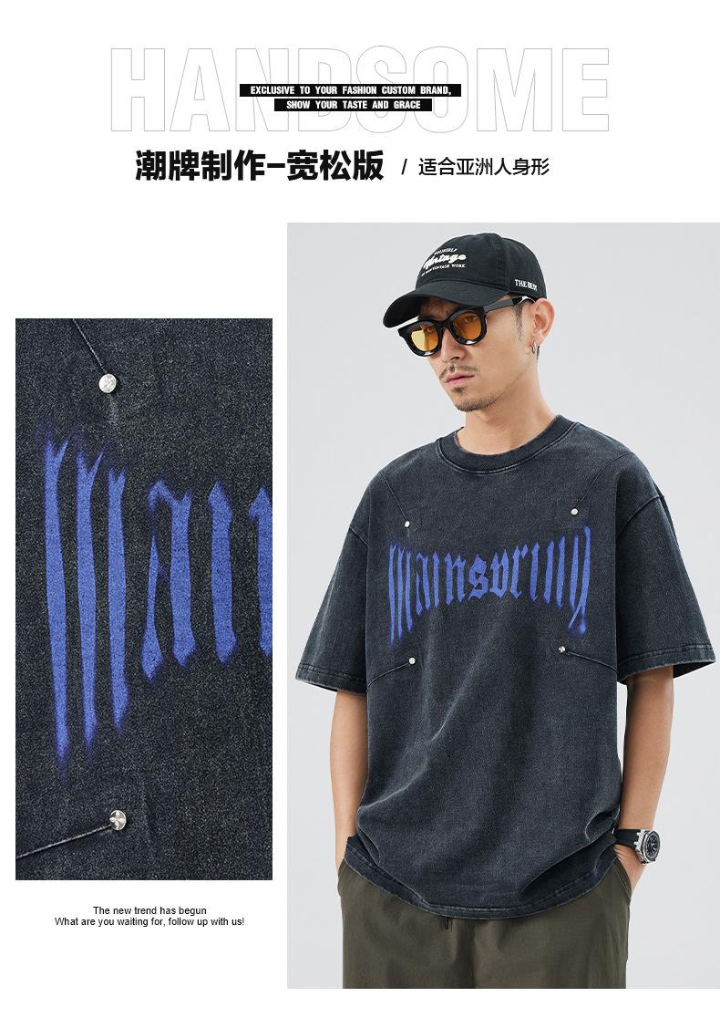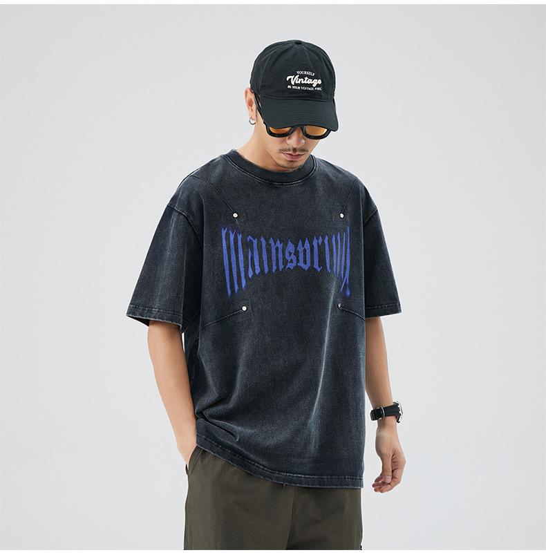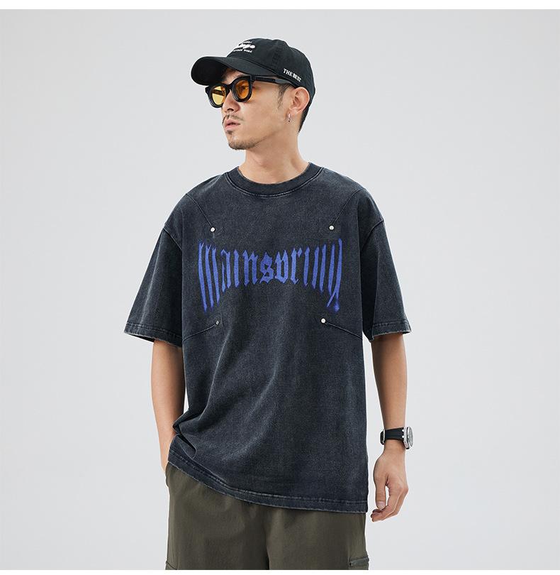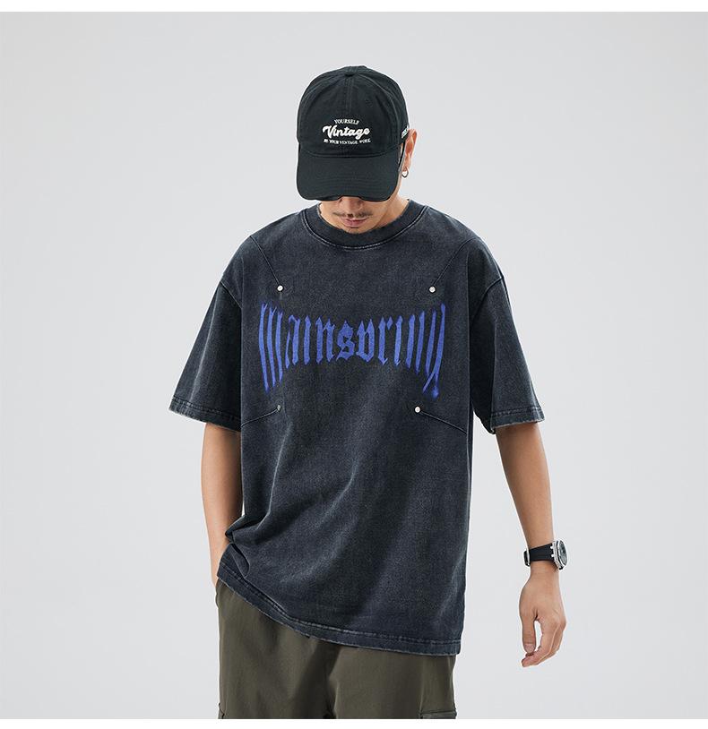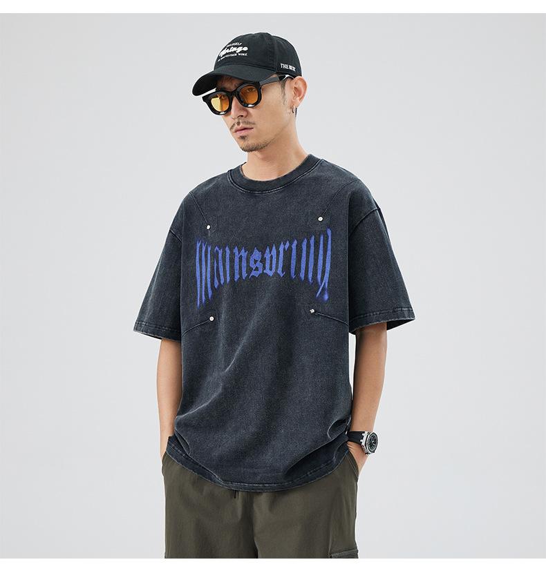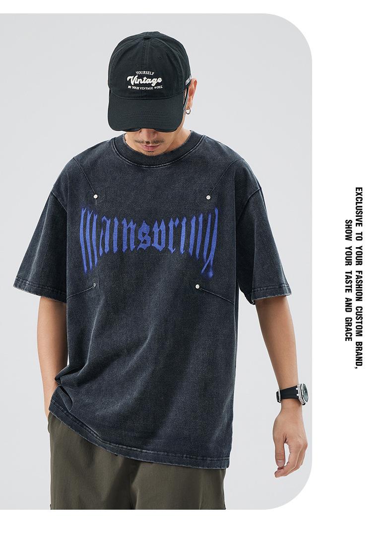 Camiseta de manga corta vieja lavada de algodón pesado para hombre, nueva camiseta de verano de estilo americano de calle alta, holgada, retro, de media manga
