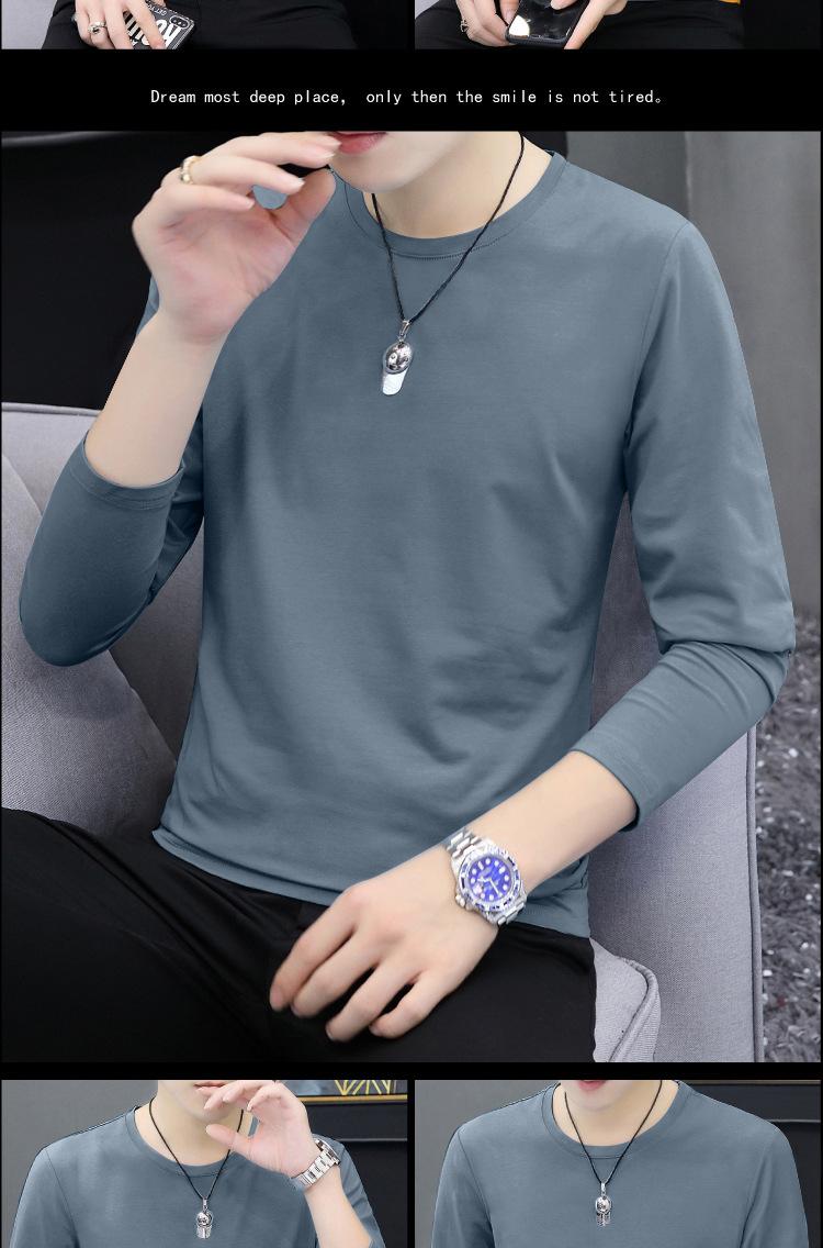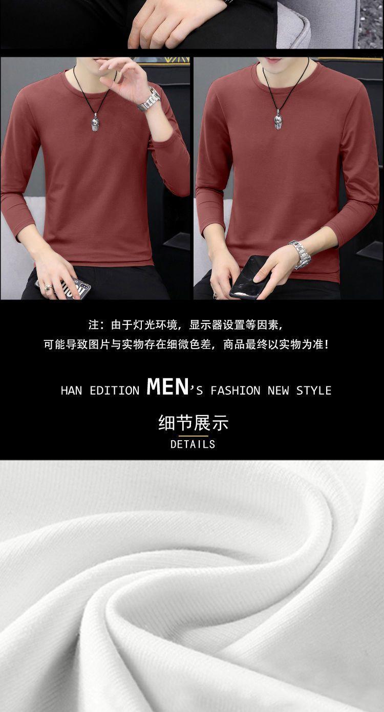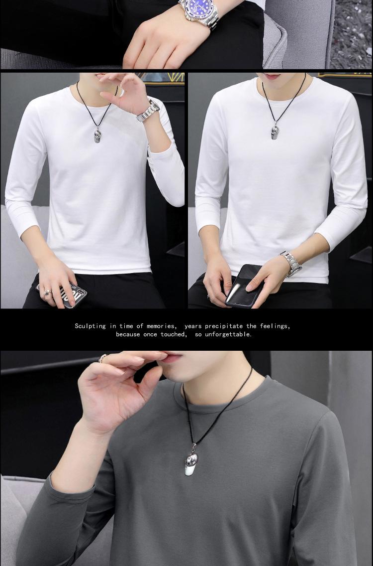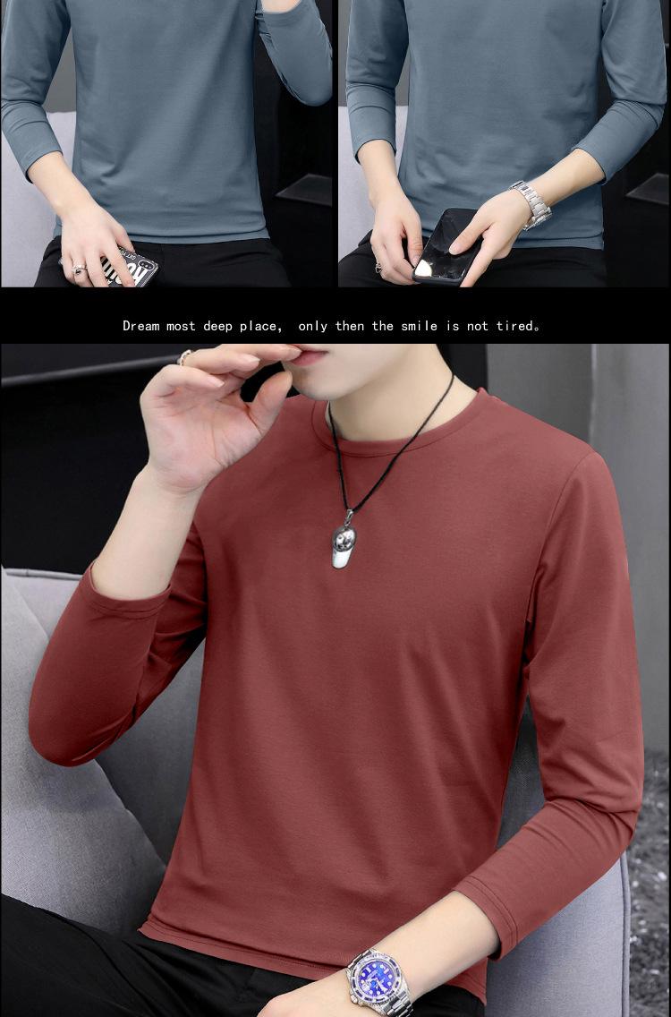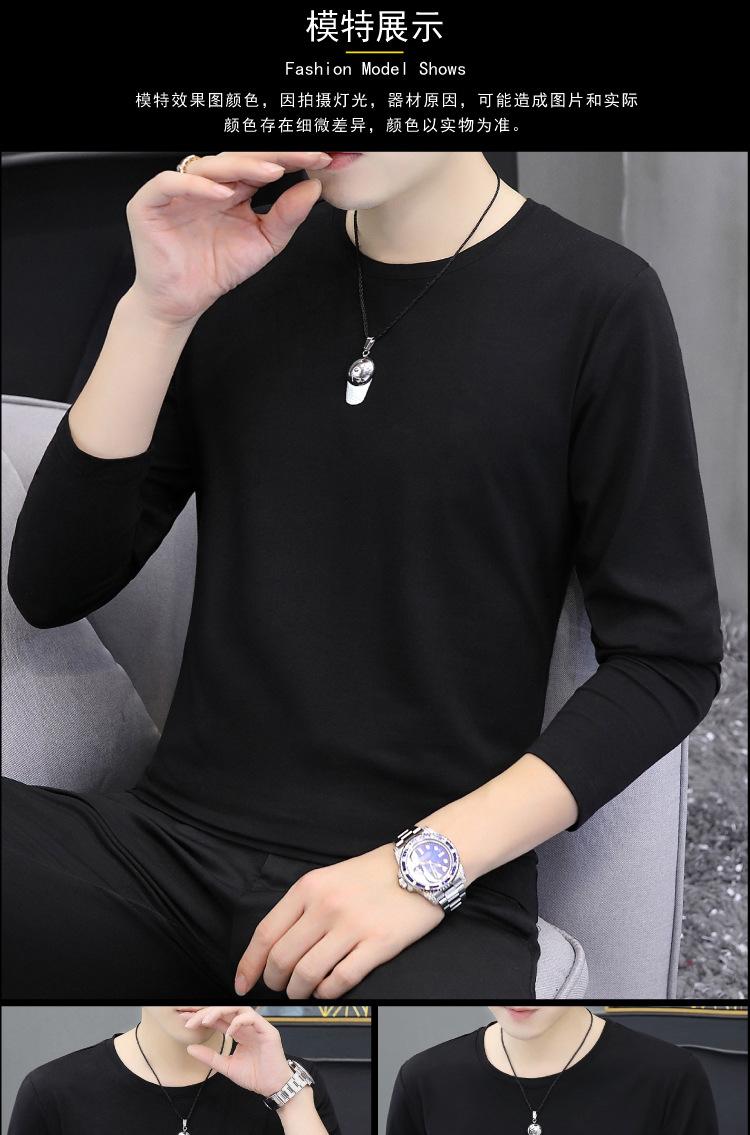 Camiseta de algodón de manga larga con cuello redondo para otoño e invierno, camisa de hombre, camisa de fondo fino, ropa interior de otoño, ropa interior ajustada a juego.