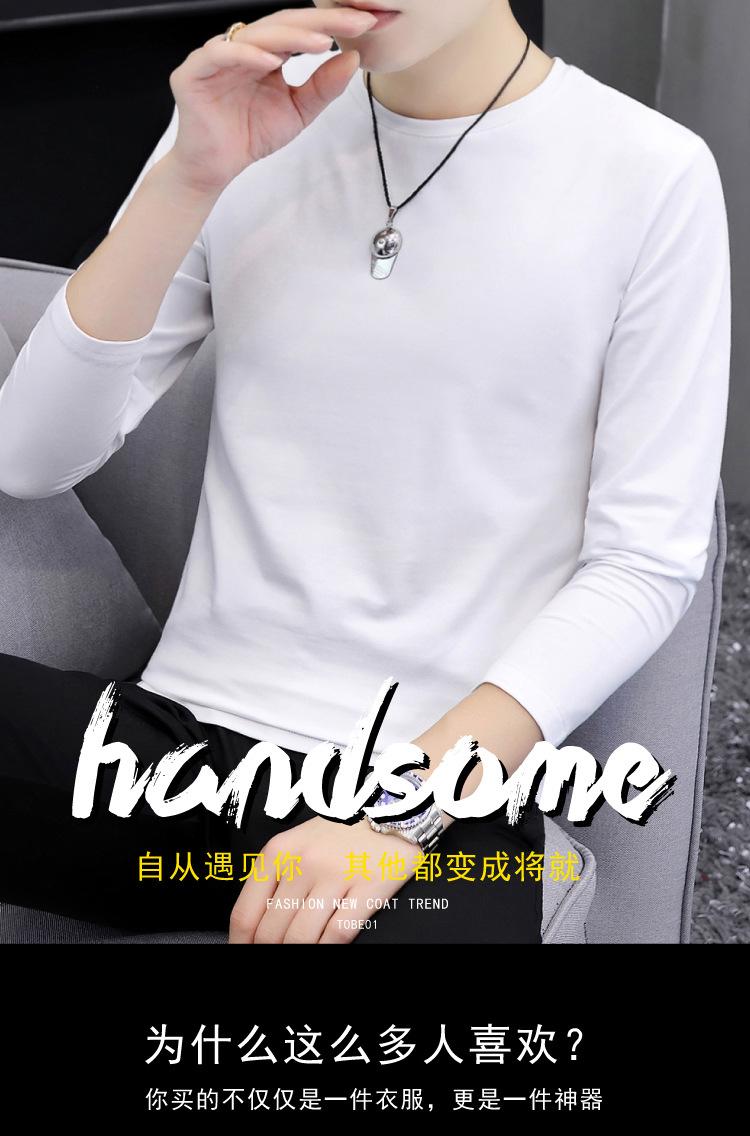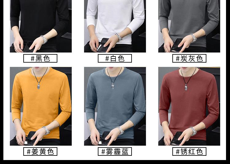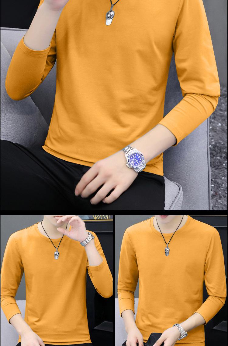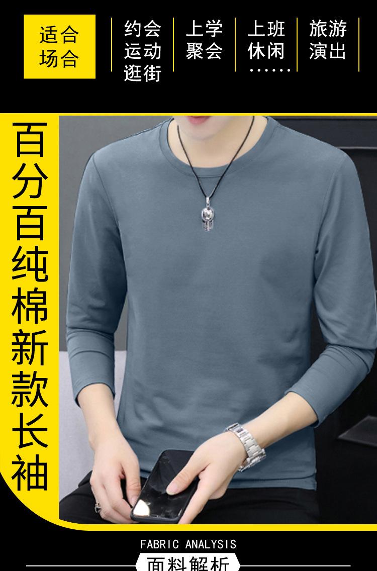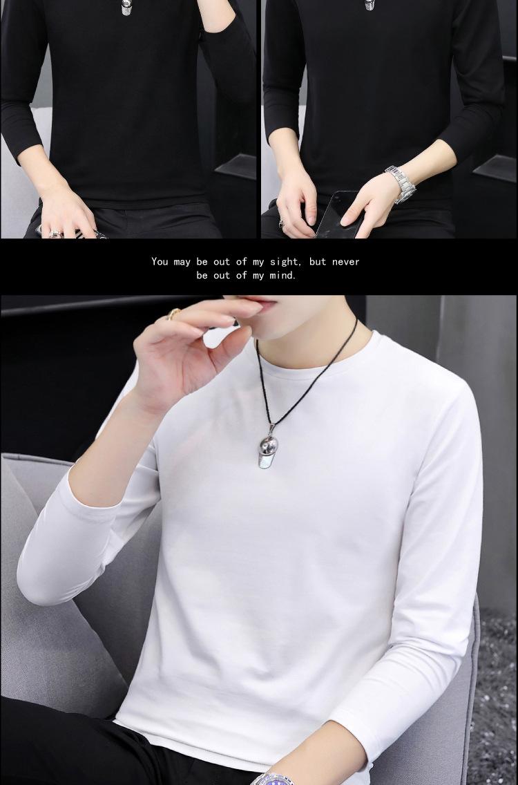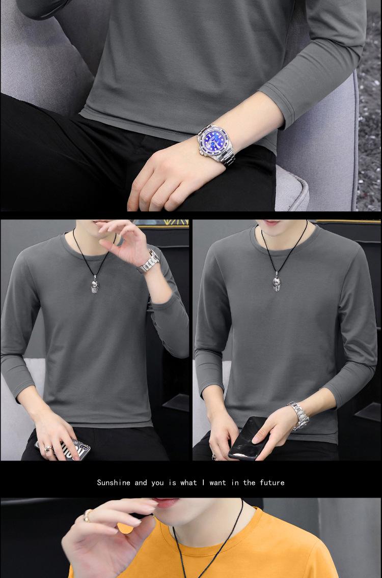 Camiseta de algodón de manga larga con cuello redondo para otoño e invierno, camisa de hombre, camisa de fondo fino, ropa interior de otoño, ropa interior ajustada a juego.