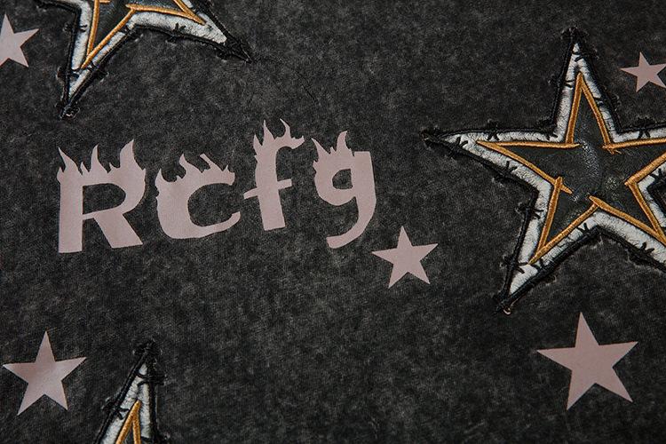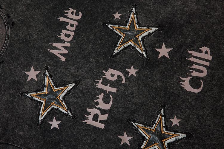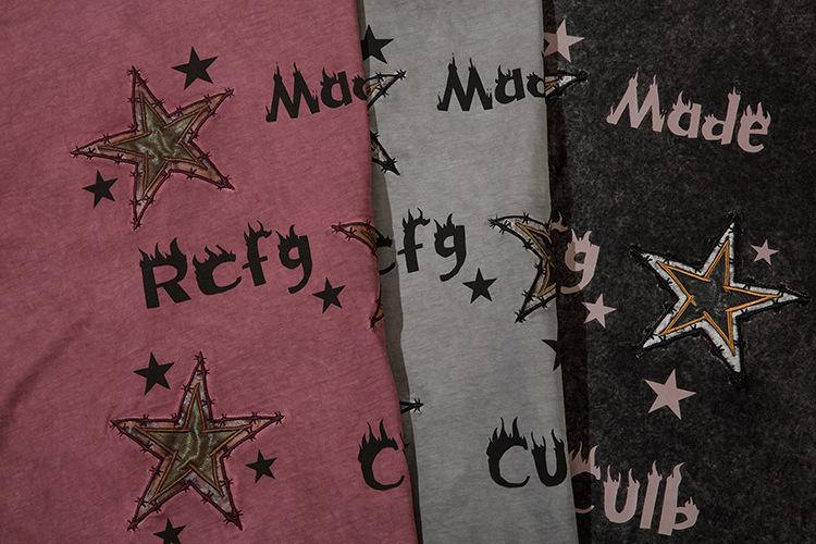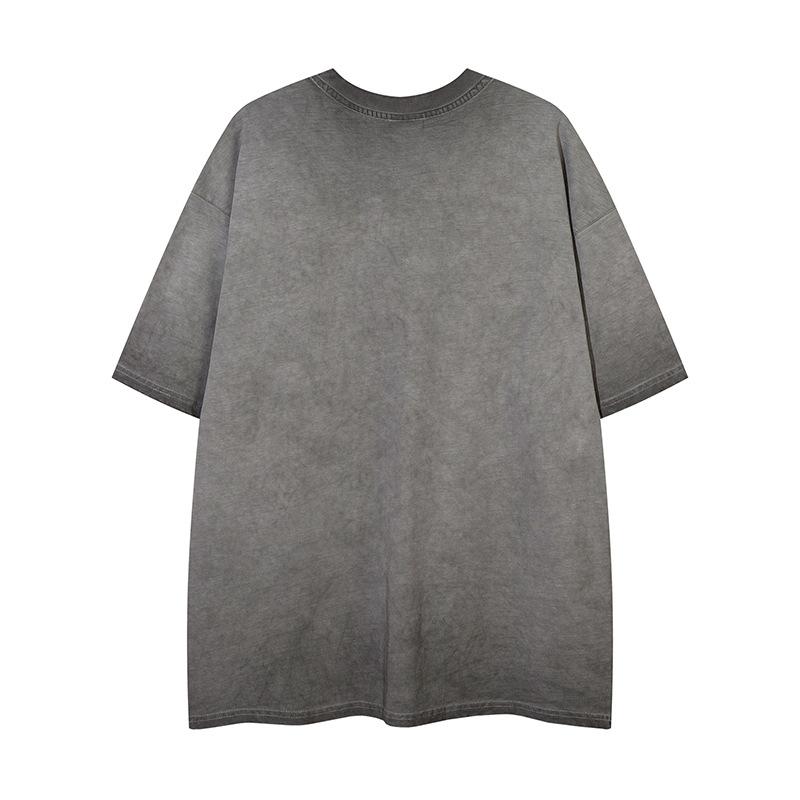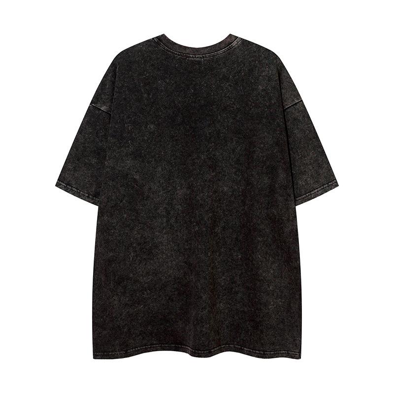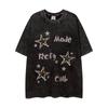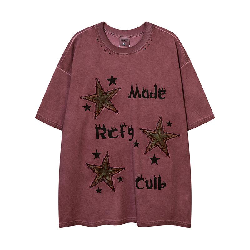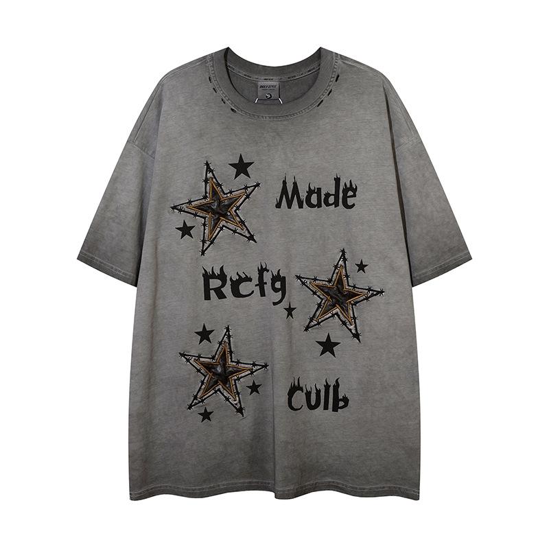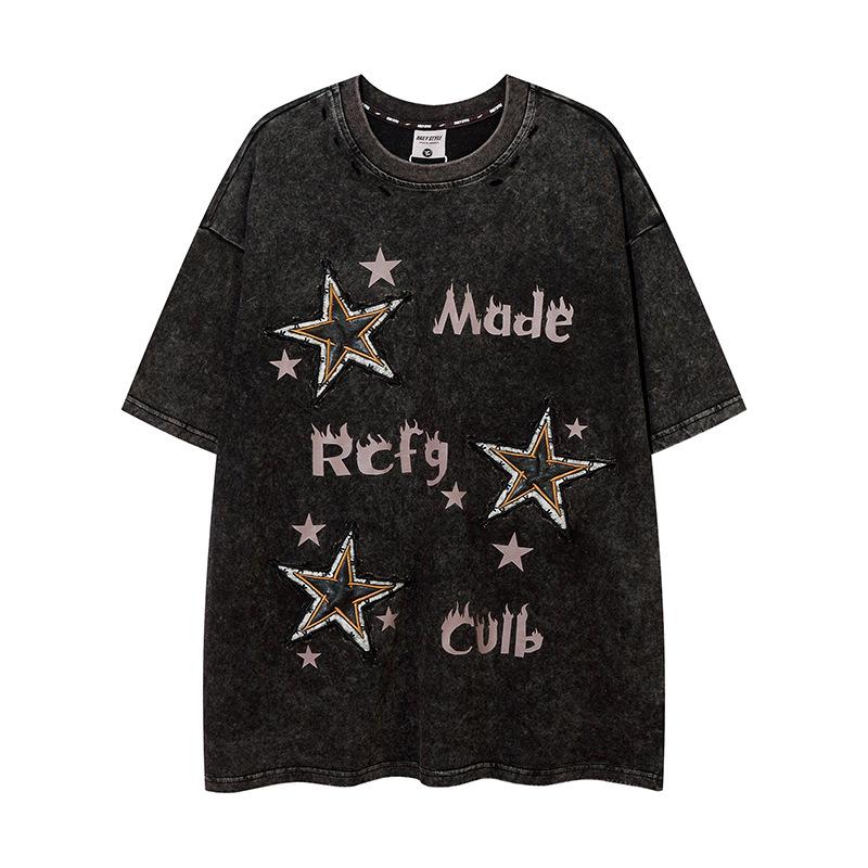 Camiseta de manga corta con estampado de estrellas antiguas lavadas de estilo americano para hombre y mujer, estilo hip-hop, holgada, de media manga.