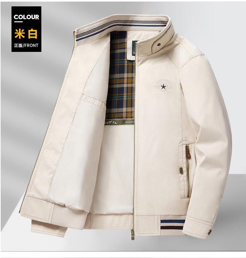 Chaqueta informal estilo retro americano de primavera y otoño, con cuello vertical, holgada, para caza al aire libre, para hombre, traje de vuelo transfronterizo