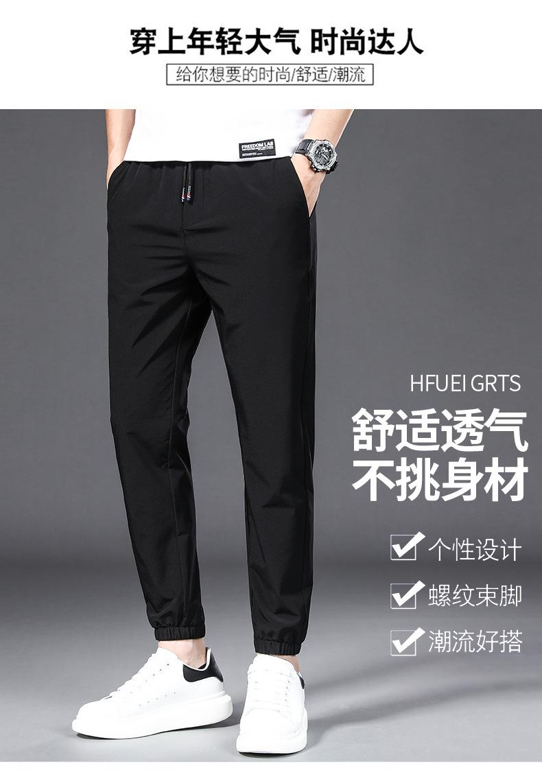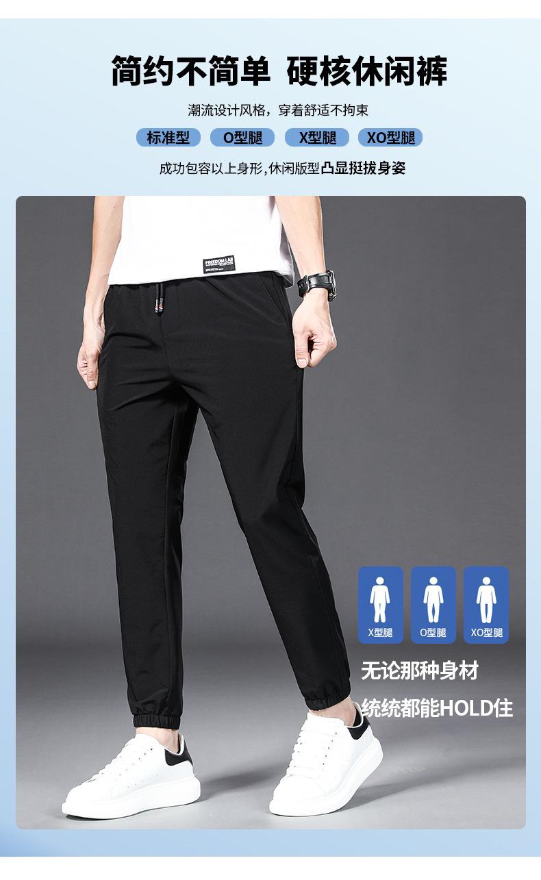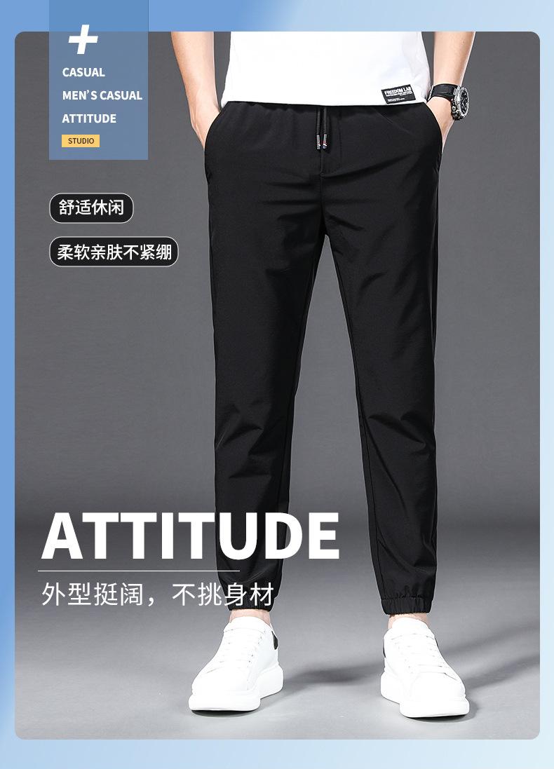 Compra Pantalones casuales de nailon de seda de hielo 2023 para hombre, pantalones deportivos rectos elásticos de verano con tobillo ajustado, pantalones de negocios de secado rápido para hombre al por mayor en Joom.pro