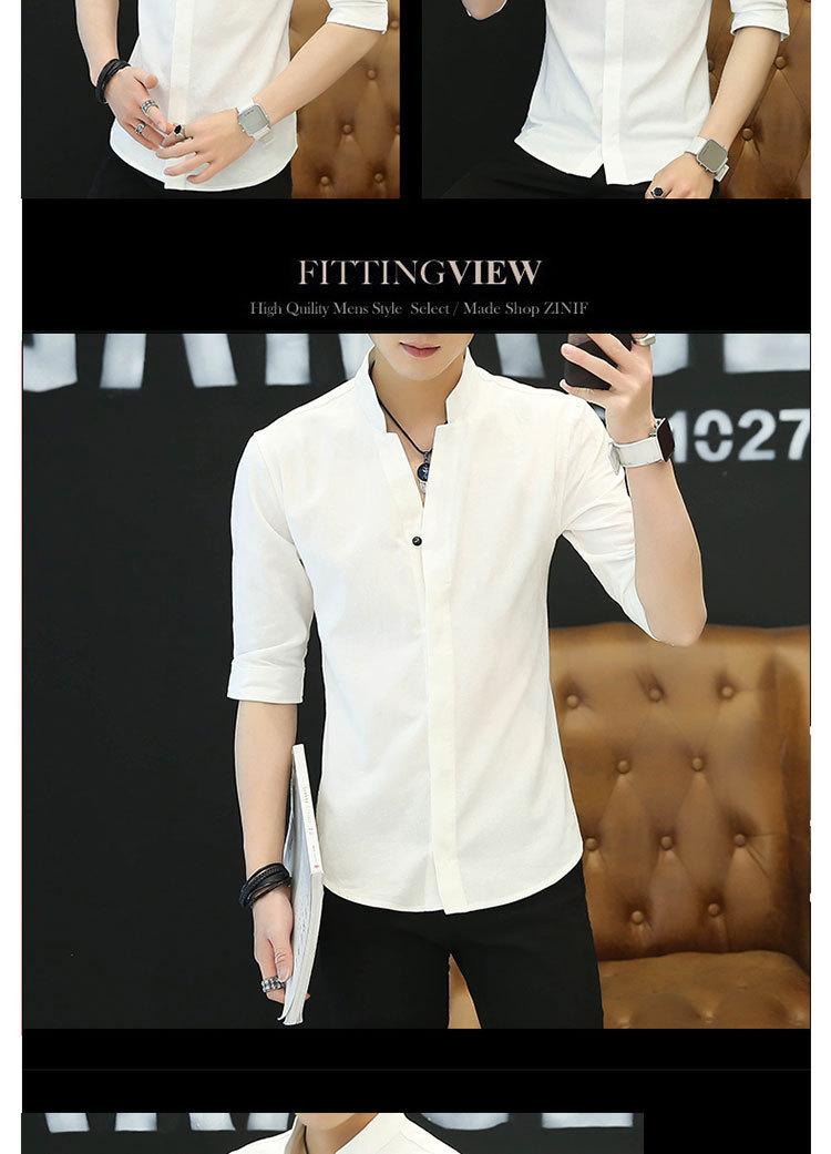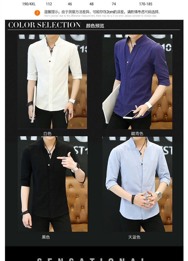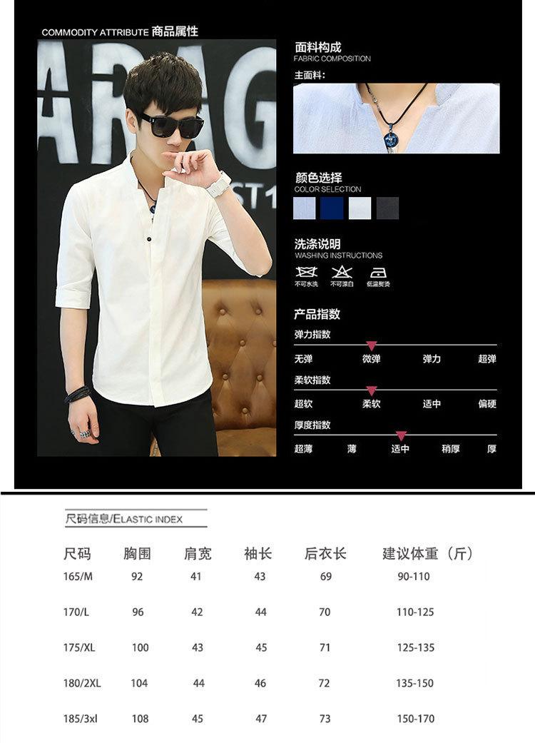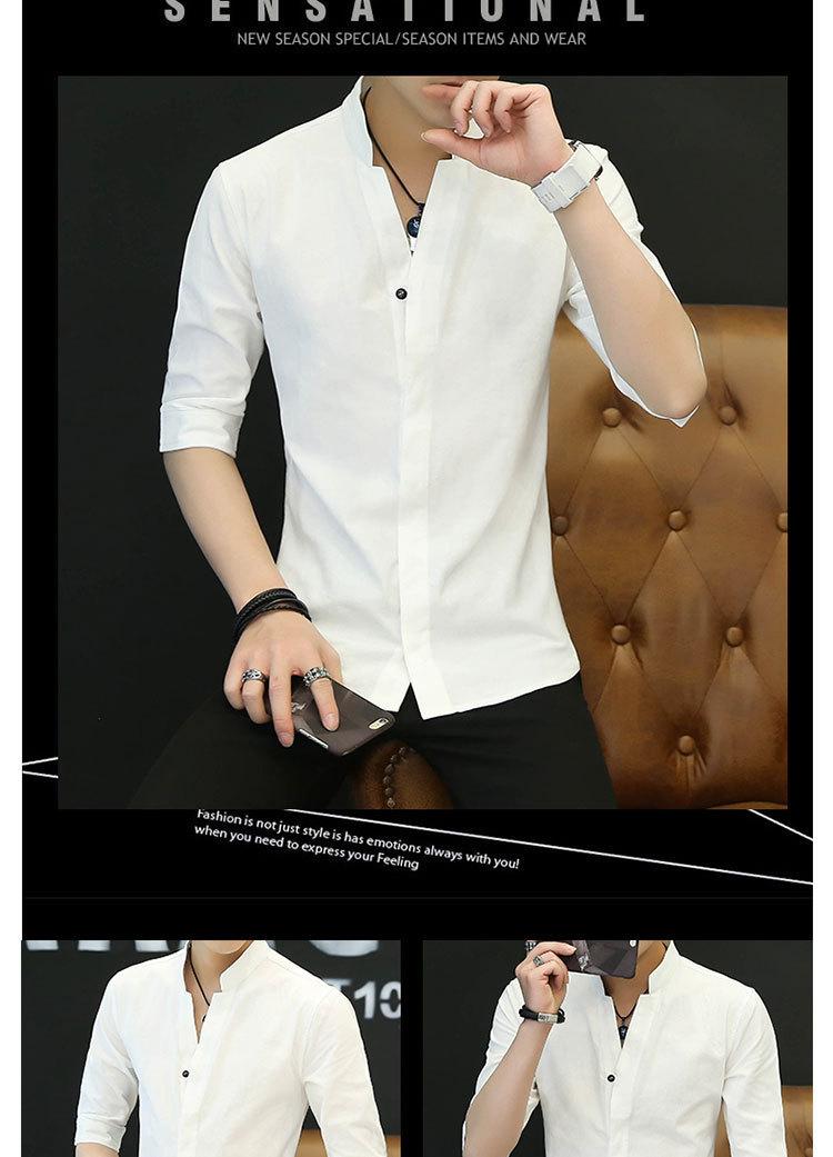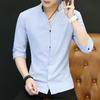 Compra Camisa de lino de verano de manga corta para hombre, estilo coreano, ajustada, moderna, informal, elegante, de media manga, blanca al por mayor en Joom.pro