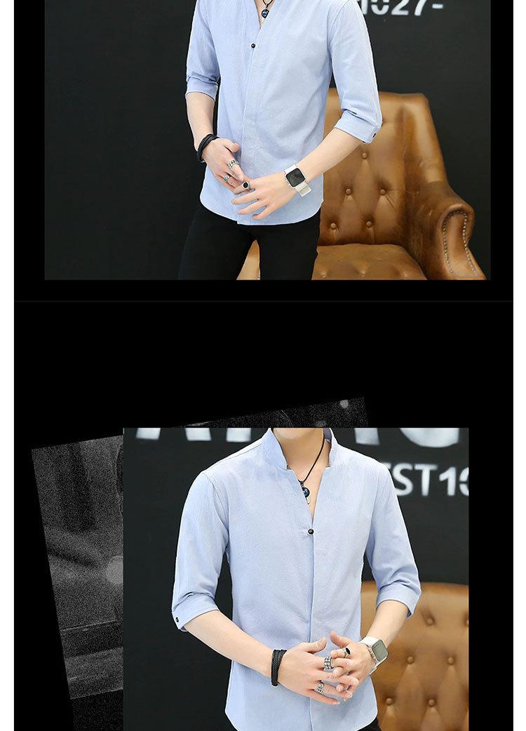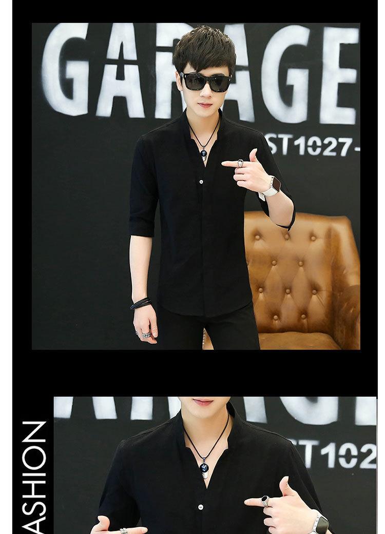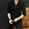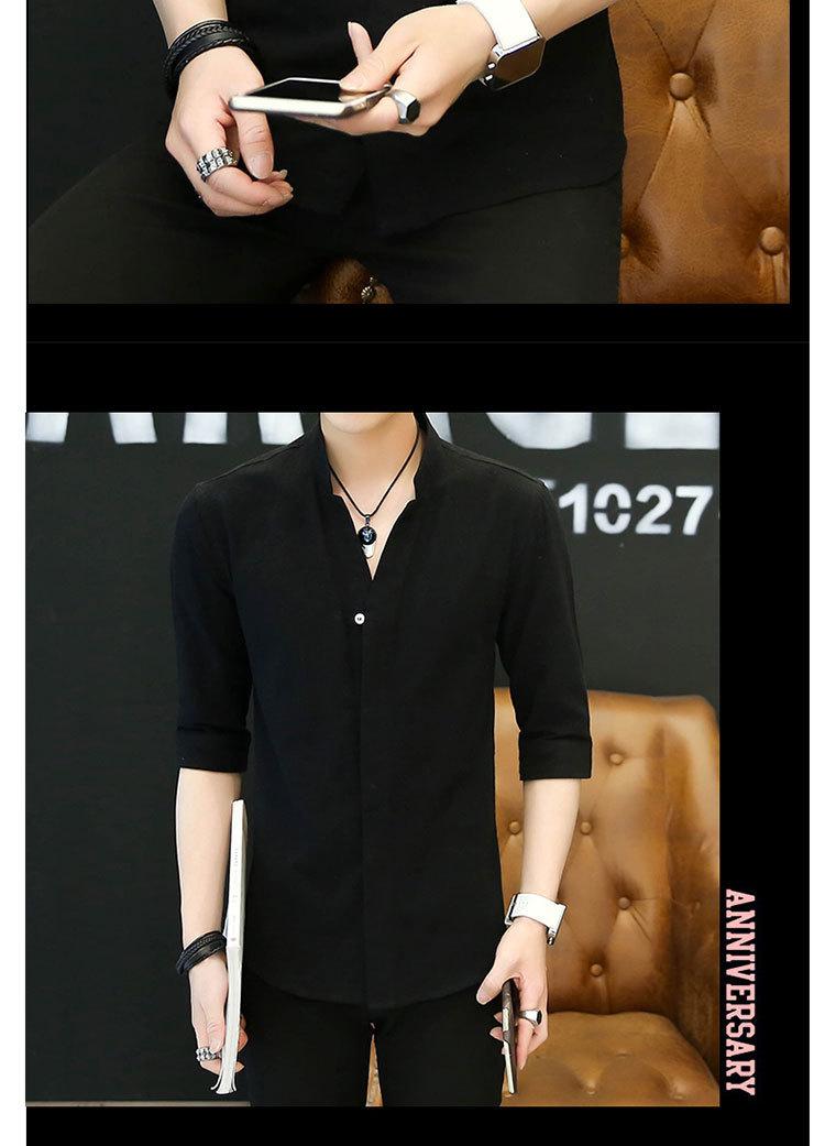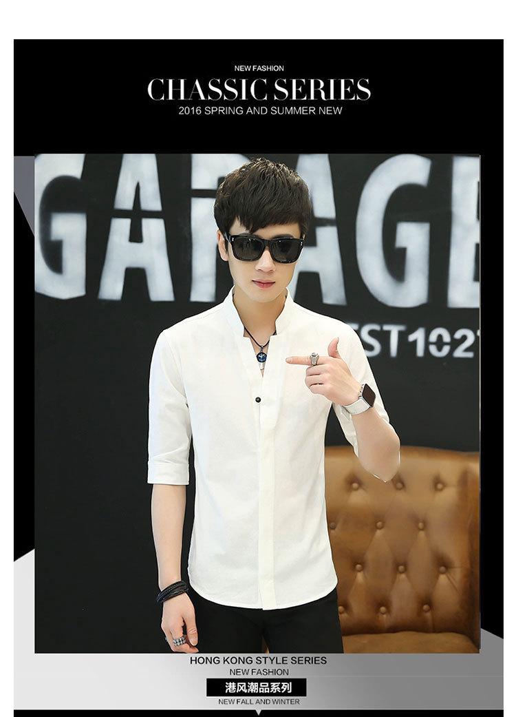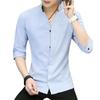 Compra Camisa de lino de verano de manga corta para hombre, estilo coreano, ajustada, moderna, informal, elegante, de media manga, blanca al por mayor en Joom.pro