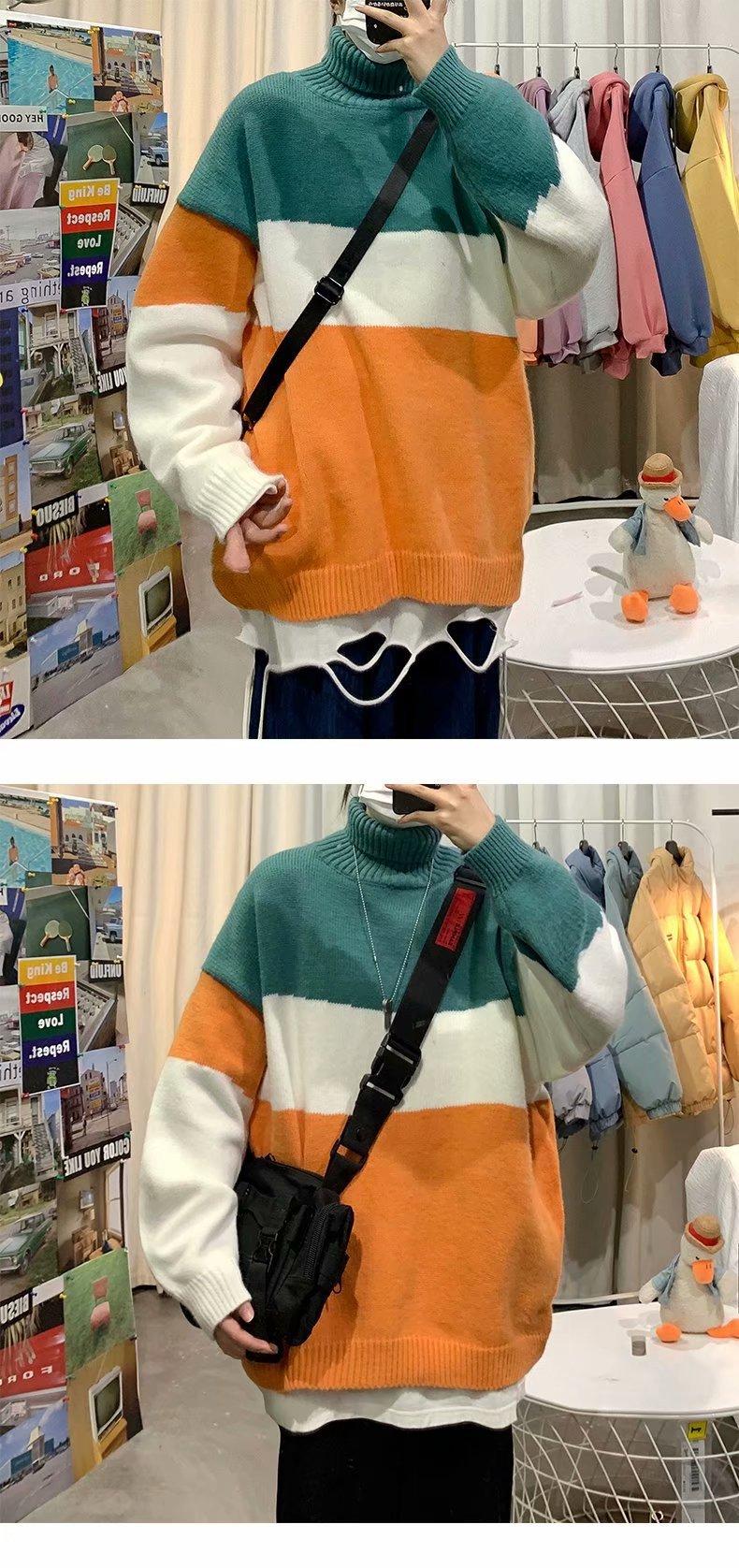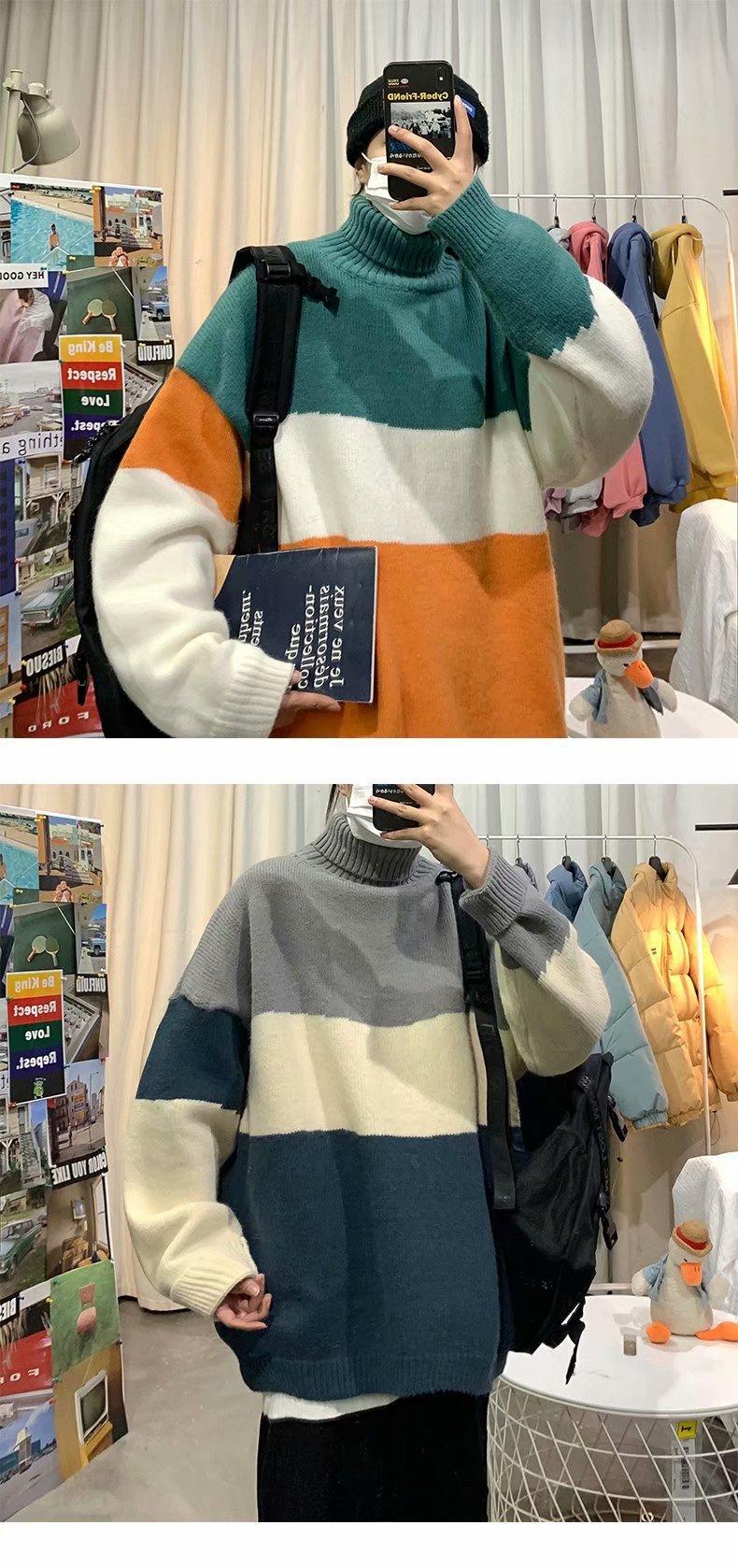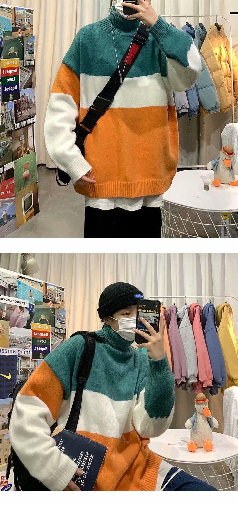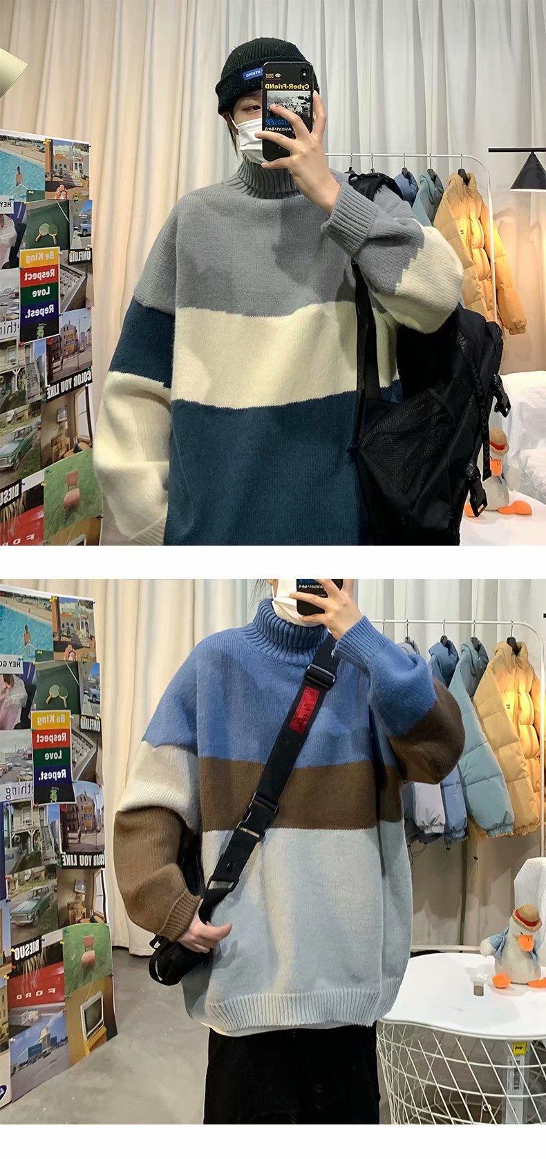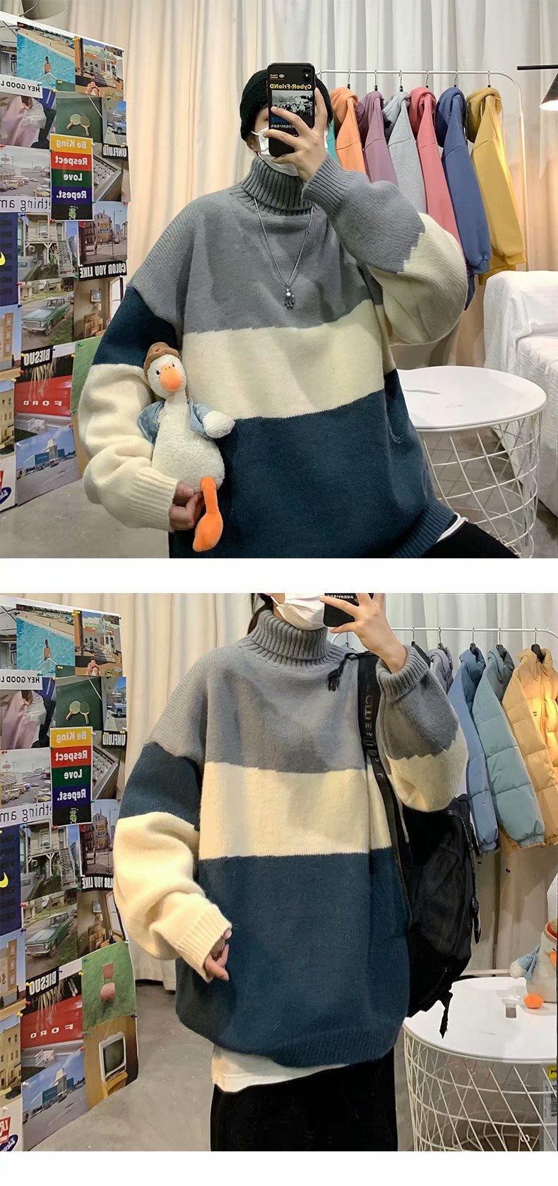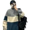 Suéter grueso casual holgado para hombre en color de contraste, estilo coreano versátil de cuello redondo, suéter de otoño e invierno 2023, suéter para hombre