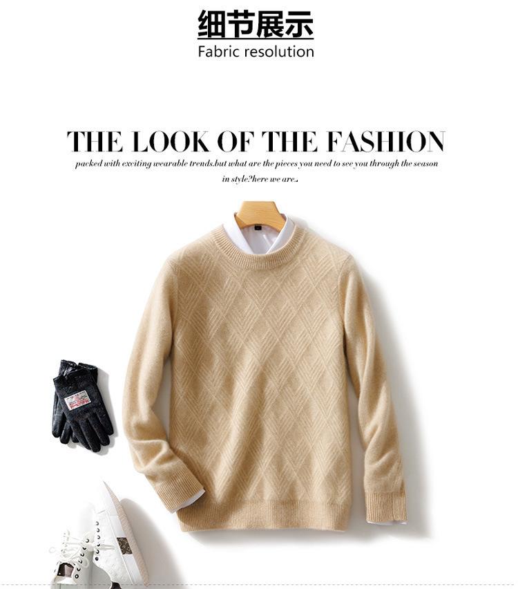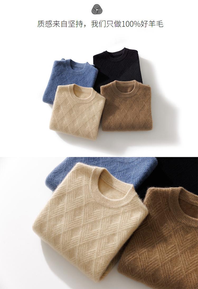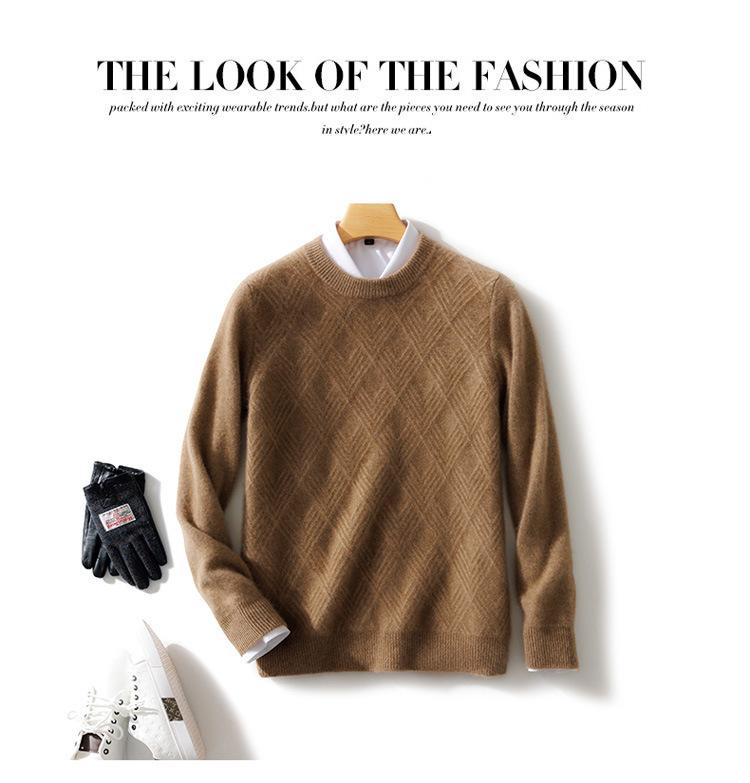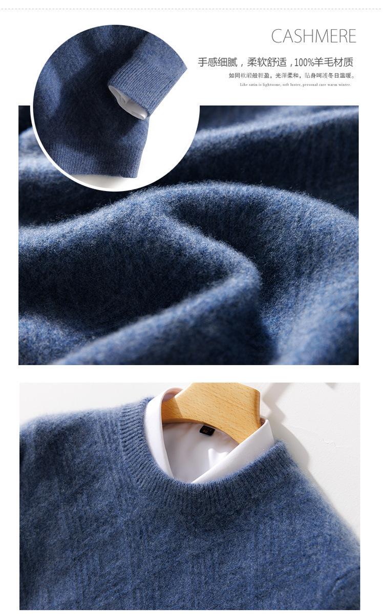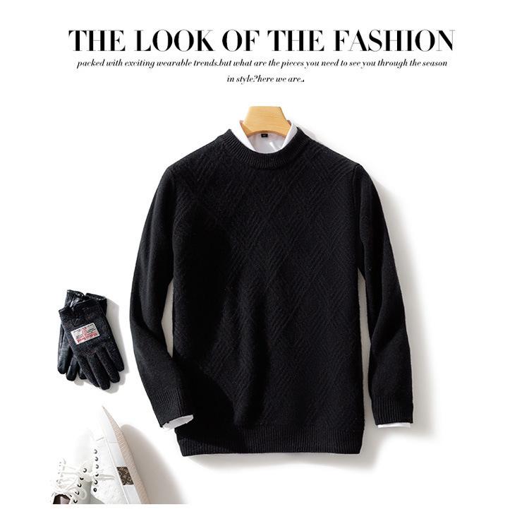 Suéter de Lana Nueva de Otoño e Invierno para Hombre, Suéter Grueso Holgado de Cuello Redondo, Tejido Casual de Negocios, Suéter Base de Cachemira