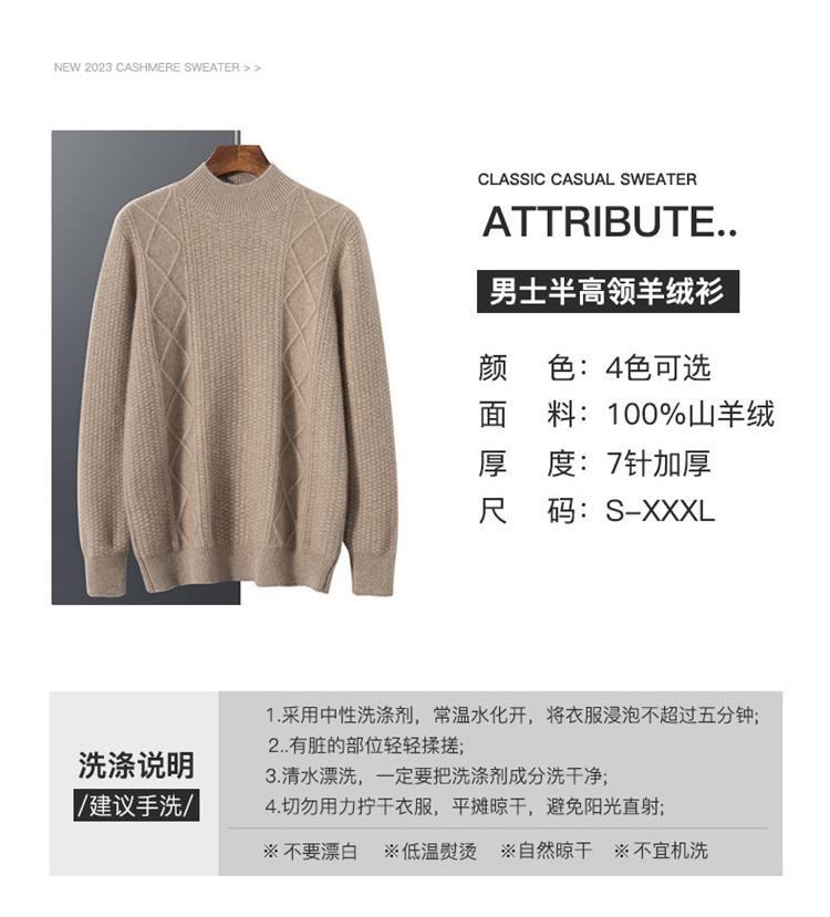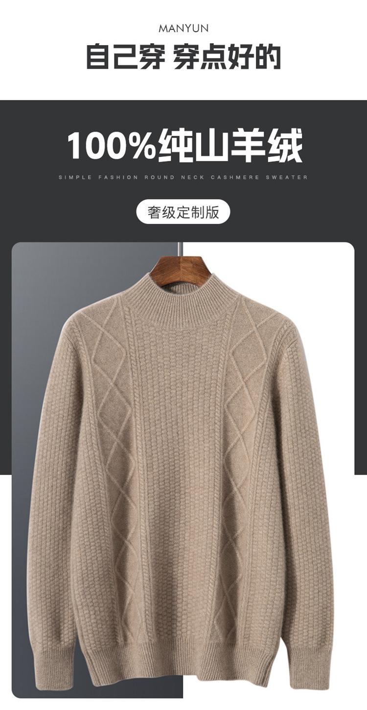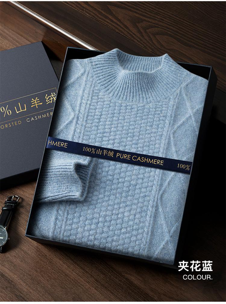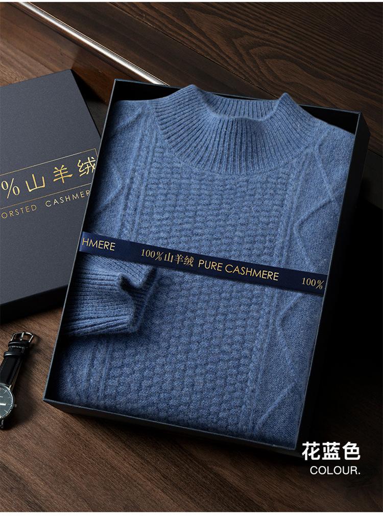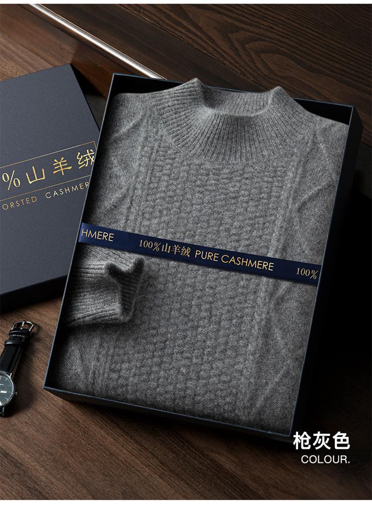 Suéter de cachemira de cuello alto medio grueso y pesado para hombre de alta calidad, suéter de cachemira de alta calidad, suéter suave y cálido