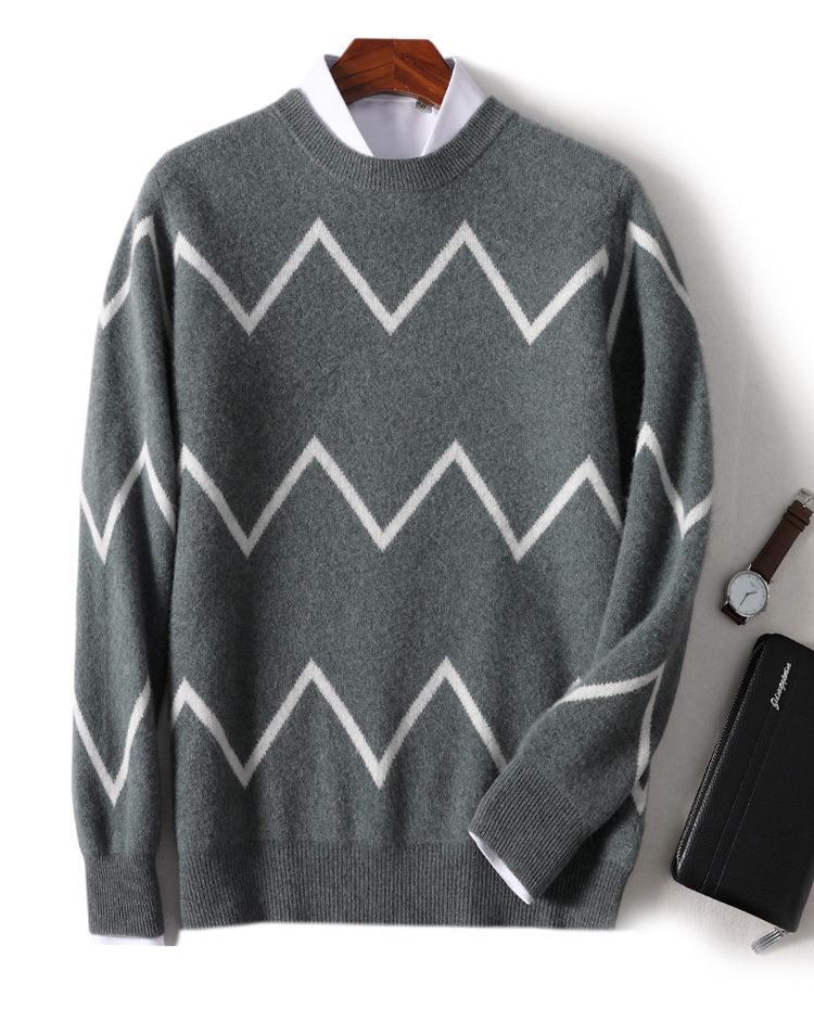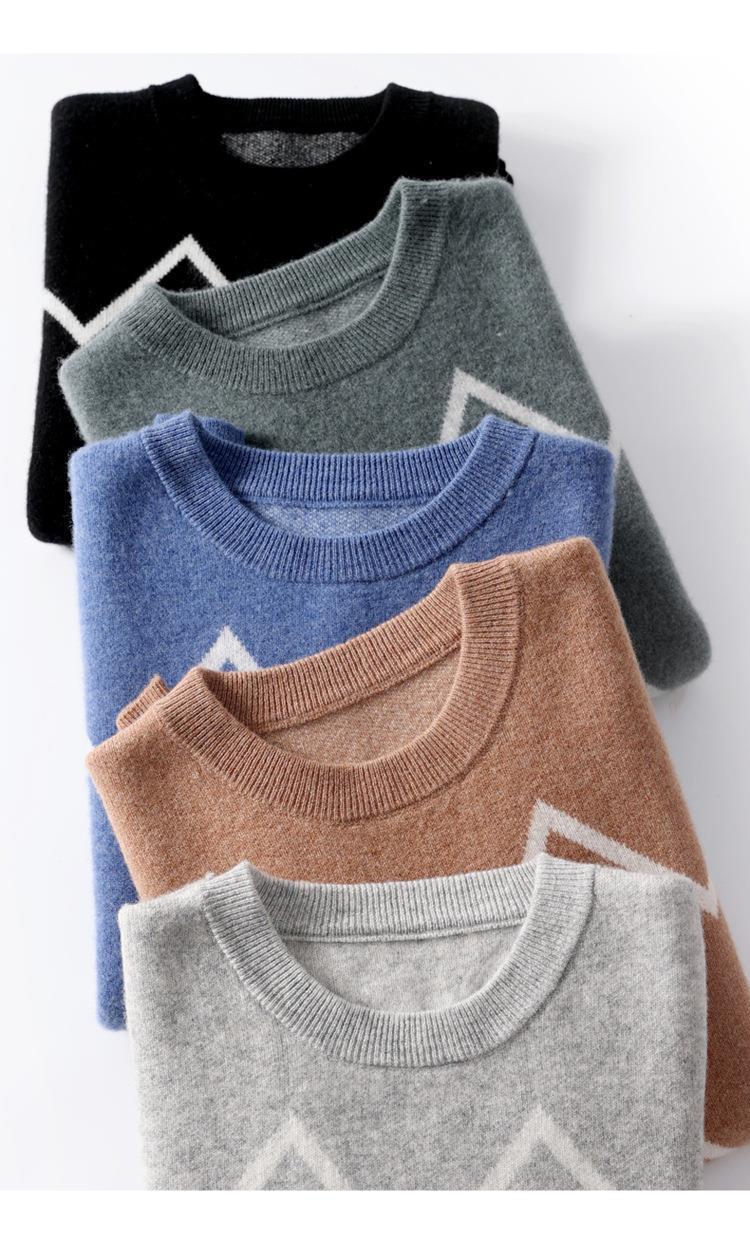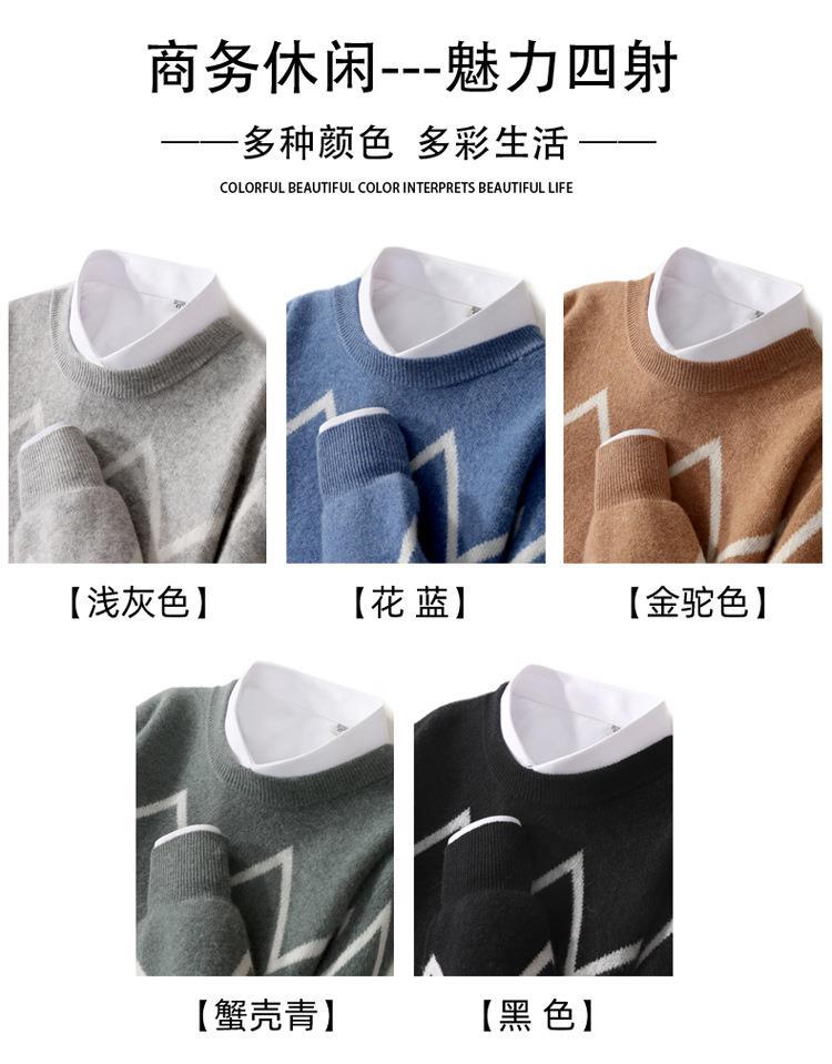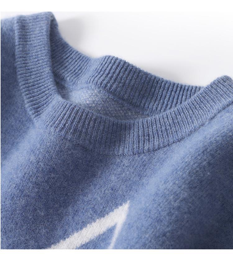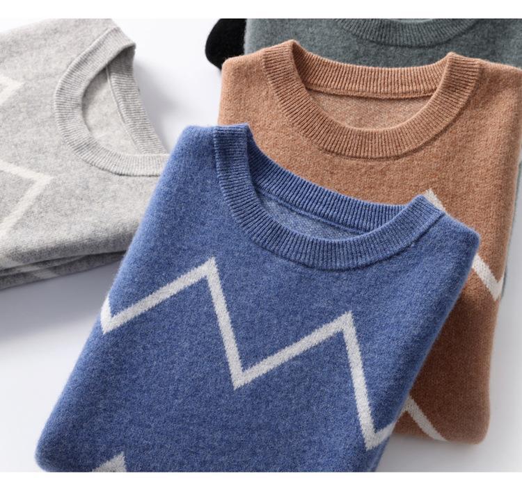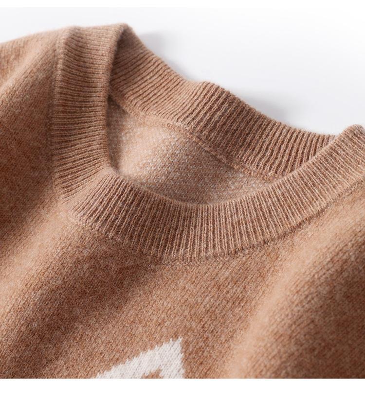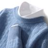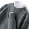 Suéter de lana 100% para hombre, suéter de punto con cuello redondo, grueso, suelto, de cachemira, para jóvenes, cálido, para otoño e invierno