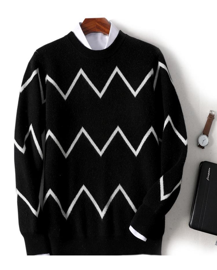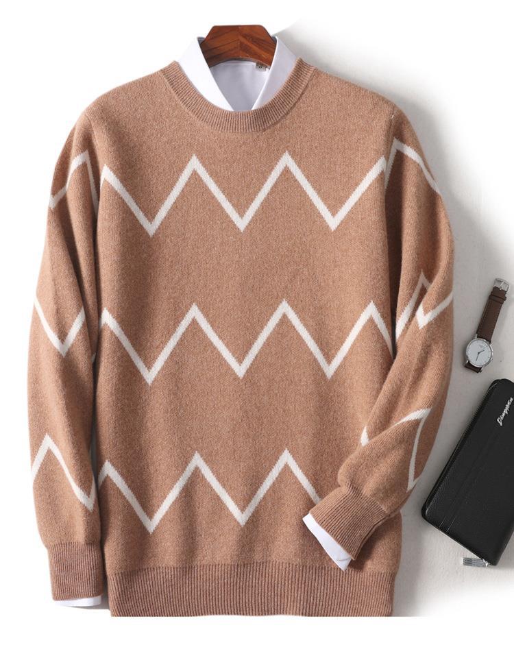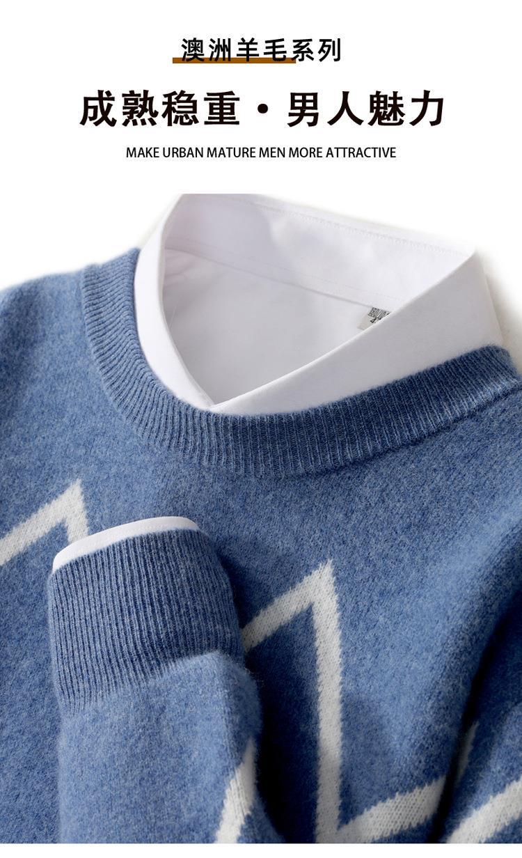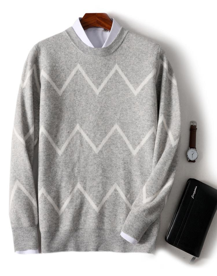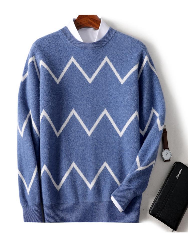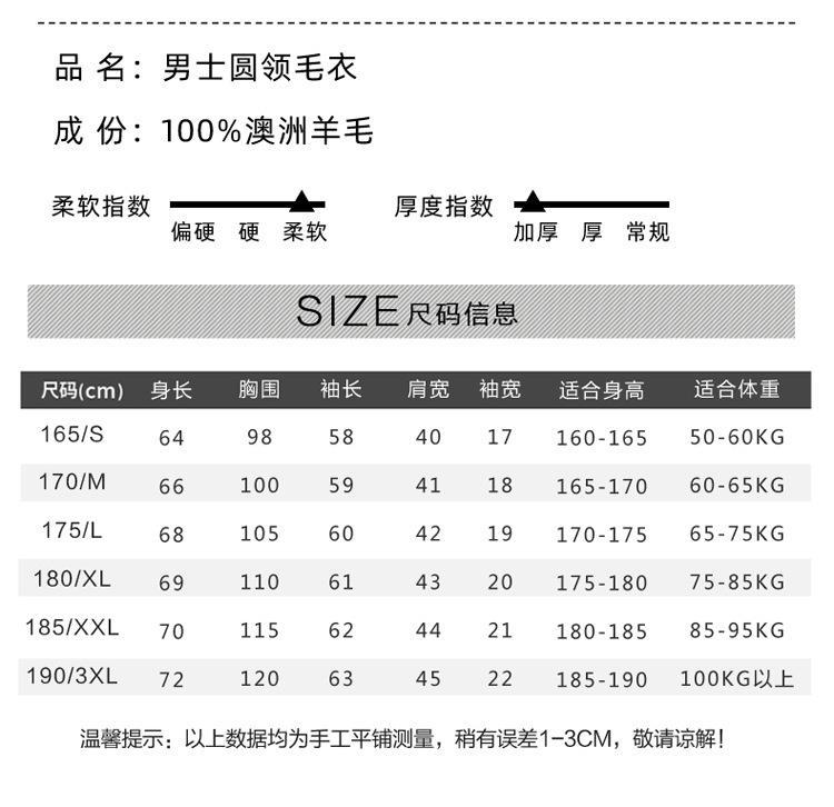 Suéter de lana 100% para hombre, suéter de punto con cuello redondo, grueso, suelto, de cachemira, para jóvenes, cálido, para otoño e invierno