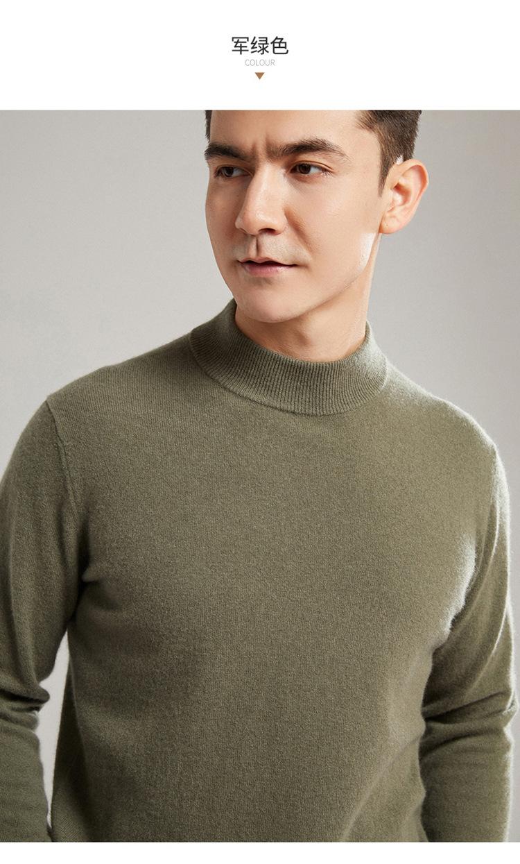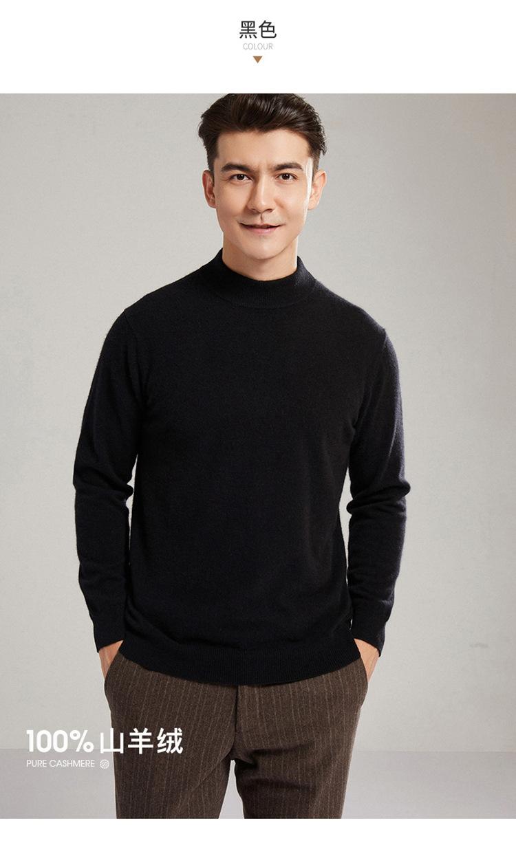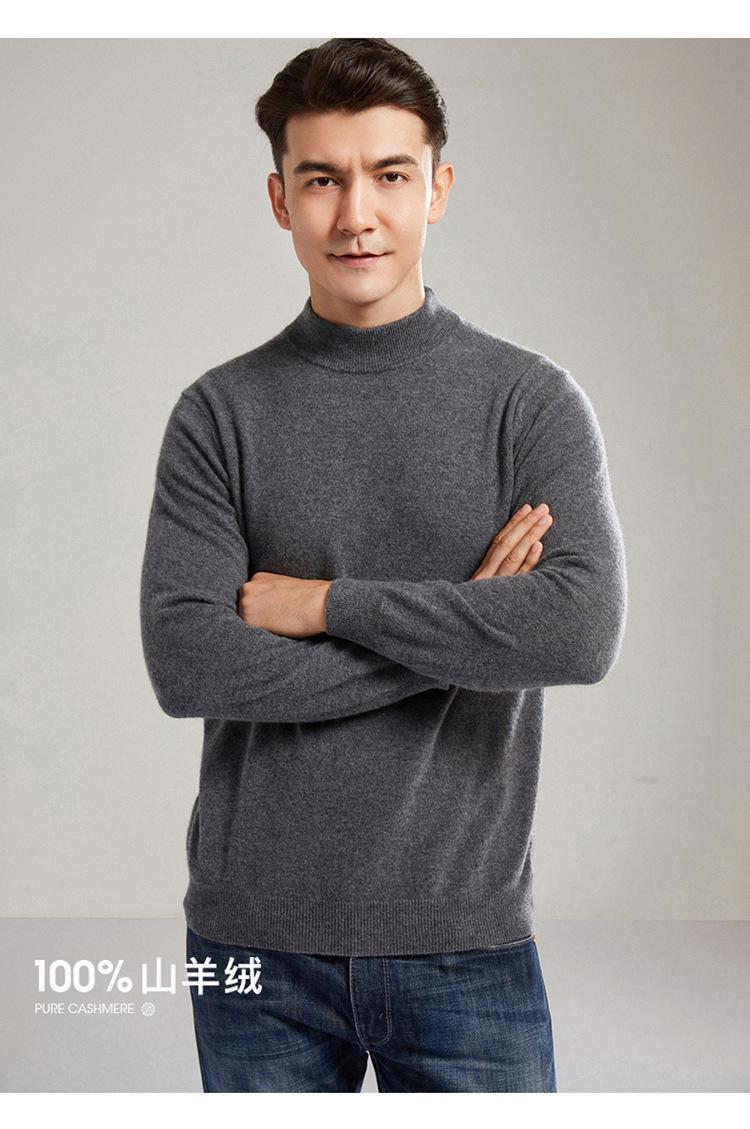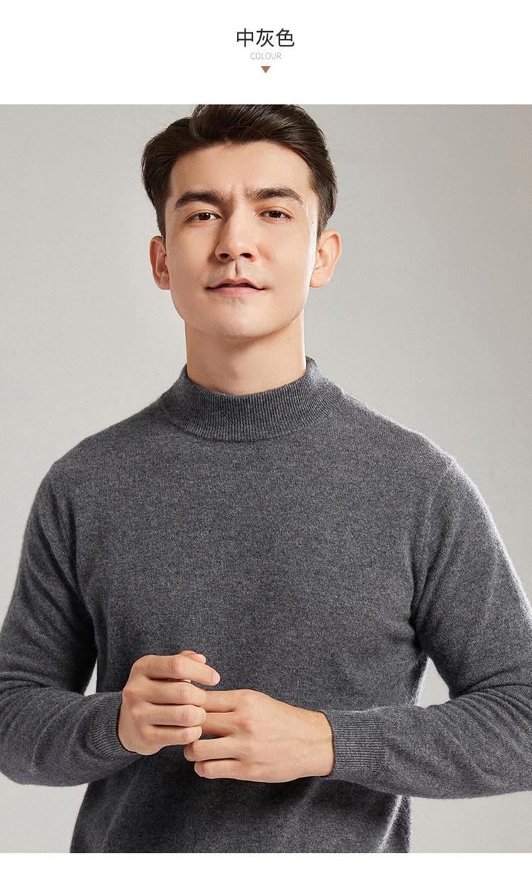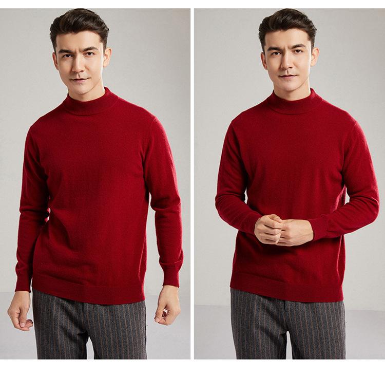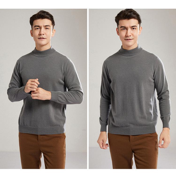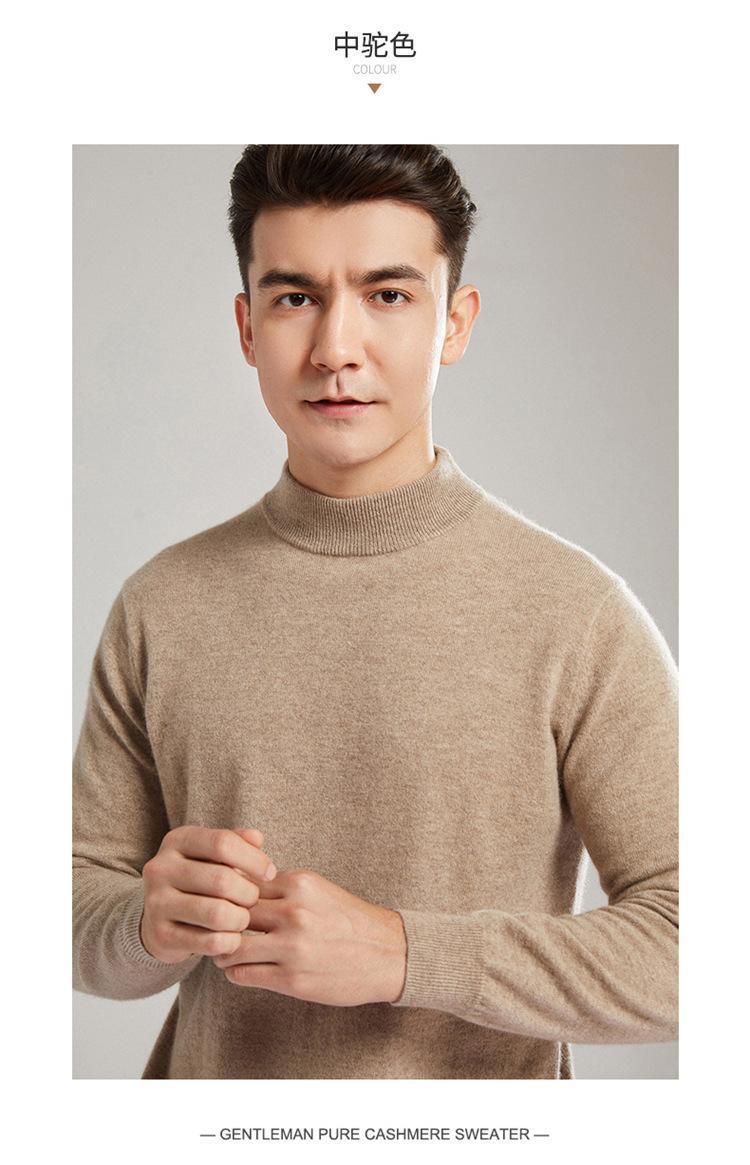 Otoño e invierno nuevo suéter de cachemira cálido de cuello alto medio para hombre, camisa de fondo de cachemira 100% pura, suéter de color sólido, suéter de manga larga de moda