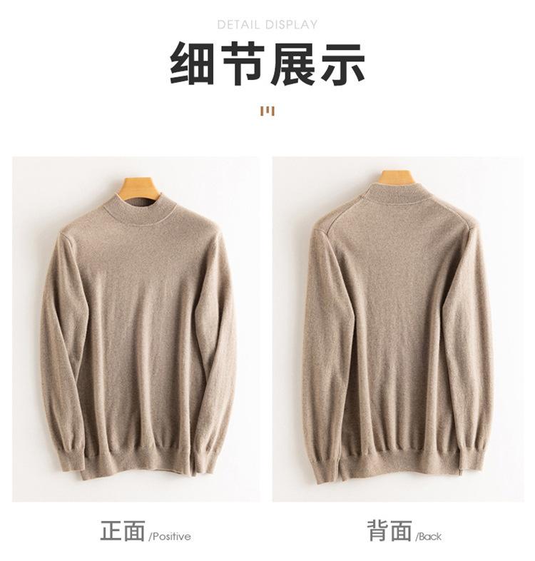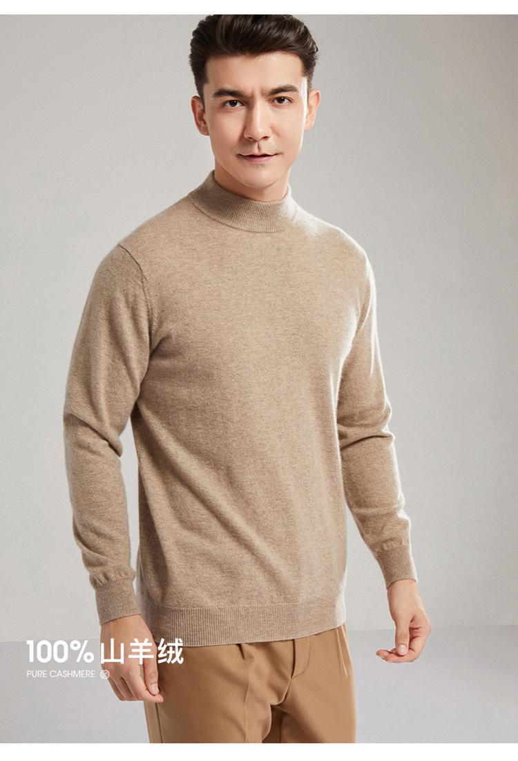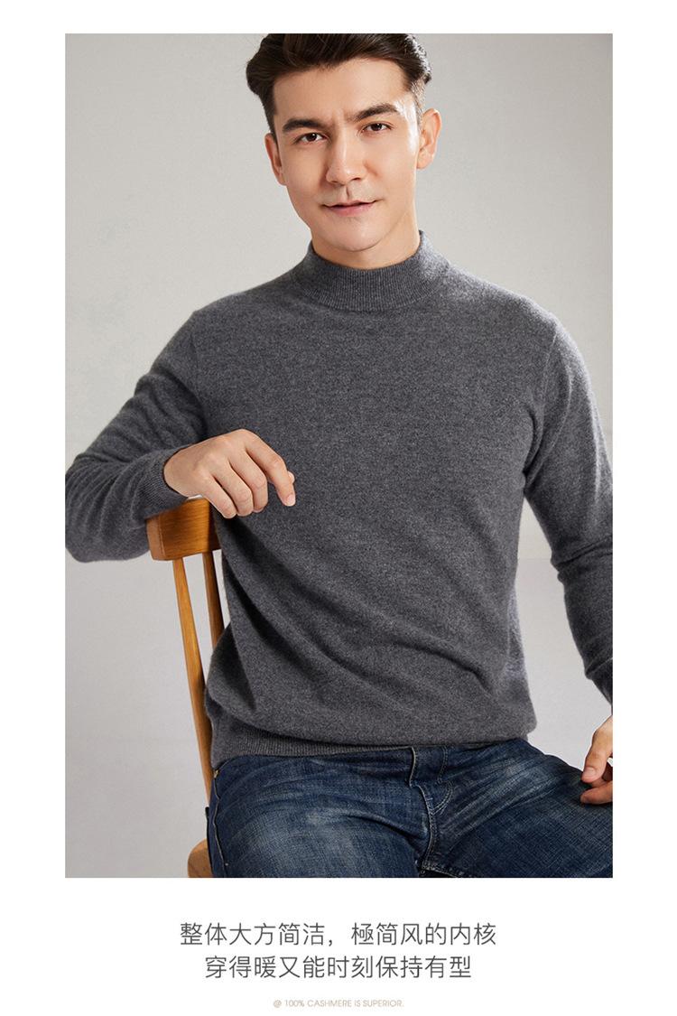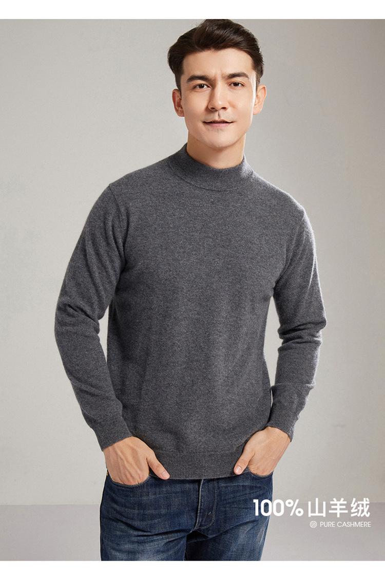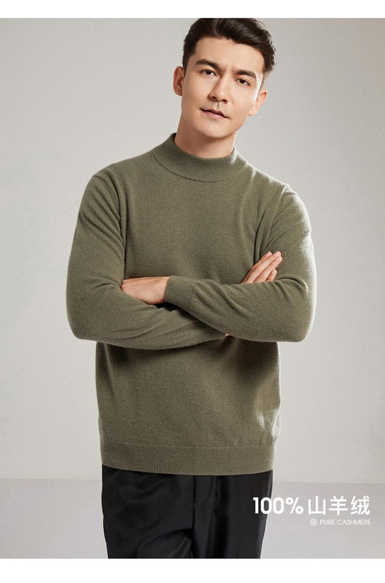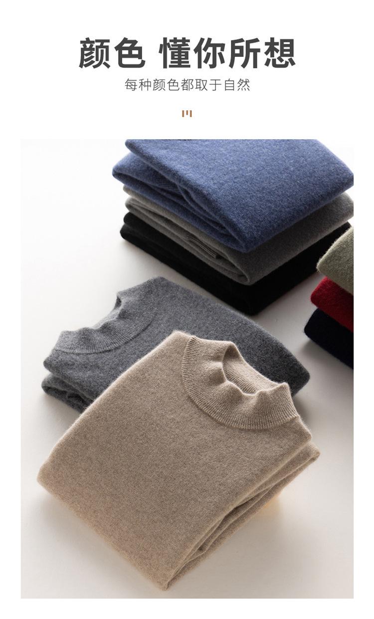 Otoño e invierno nuevo suéter de cachemira cálido de cuello alto medio para hombre, camisa de fondo de cachemira 100% pura, suéter de color sólido, suéter de manga larga de moda