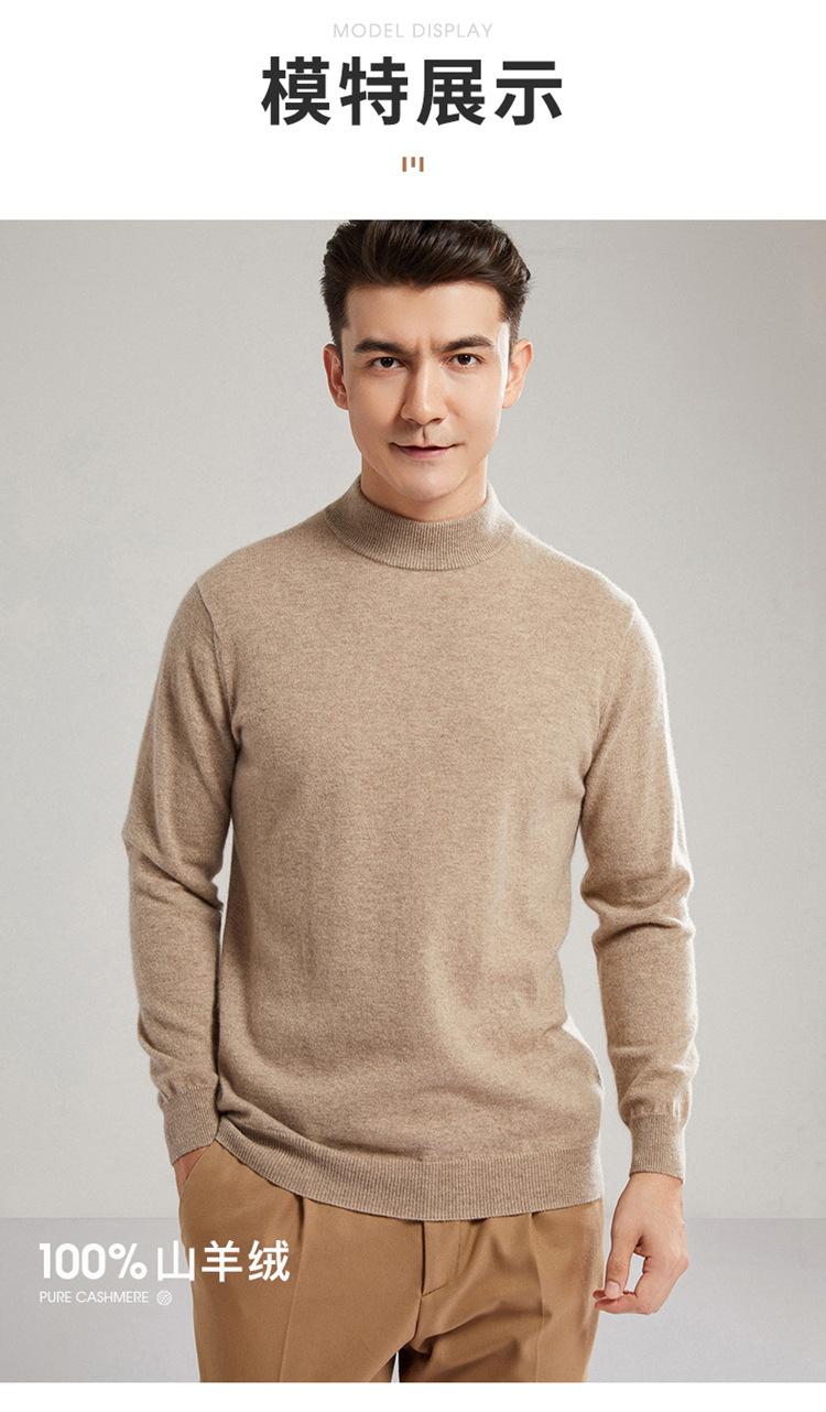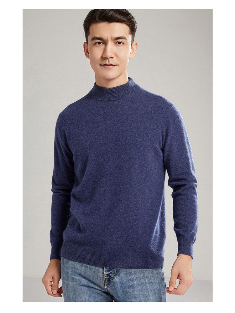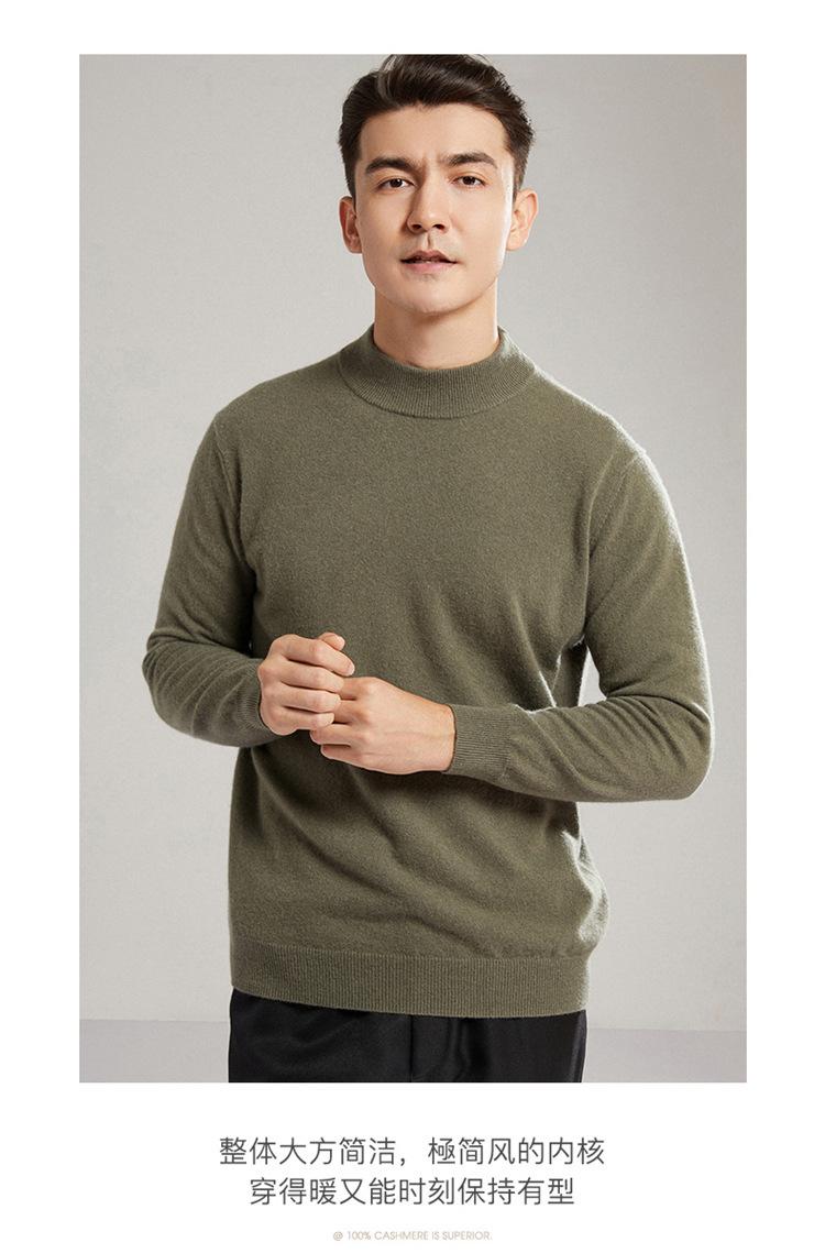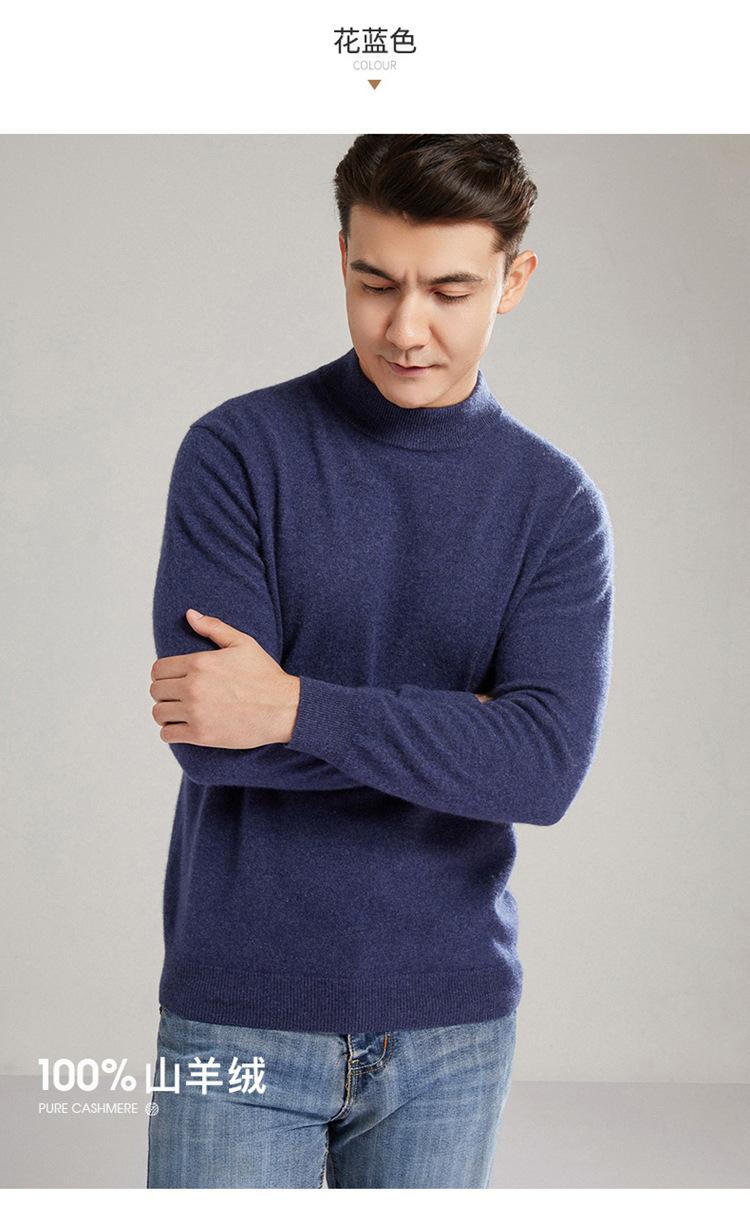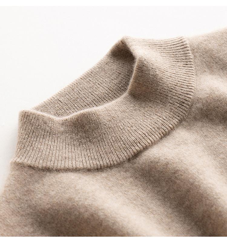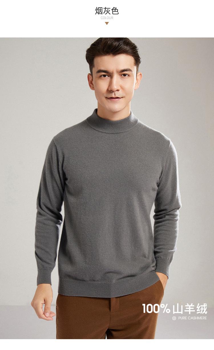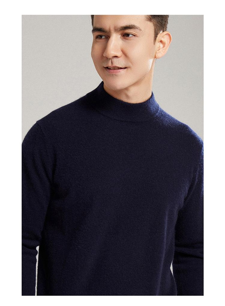 Otoño e invierno nuevo suéter de cachemira cálido de cuello alto medio para hombre, camisa de fondo de cachemira 100% pura, suéter de color sólido, suéter de manga larga de moda