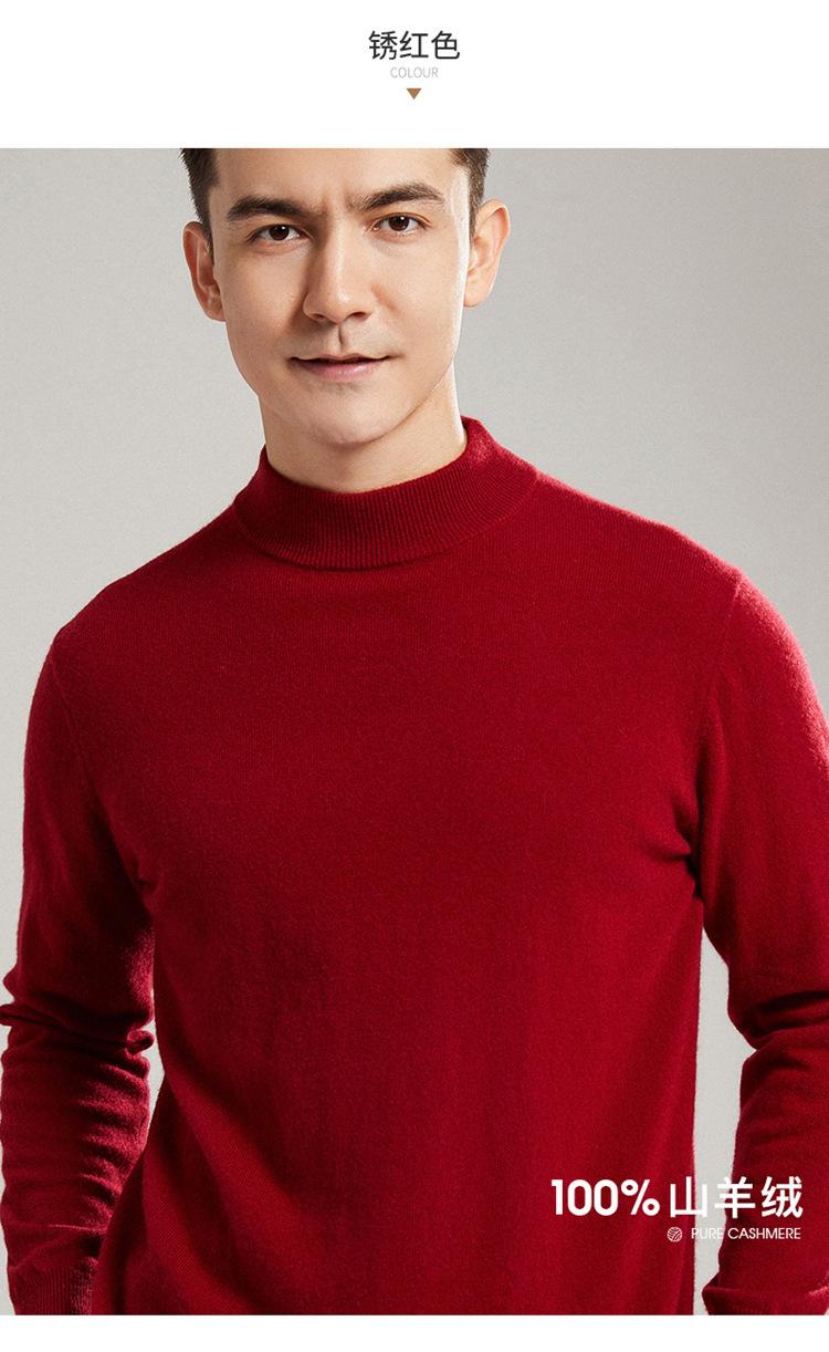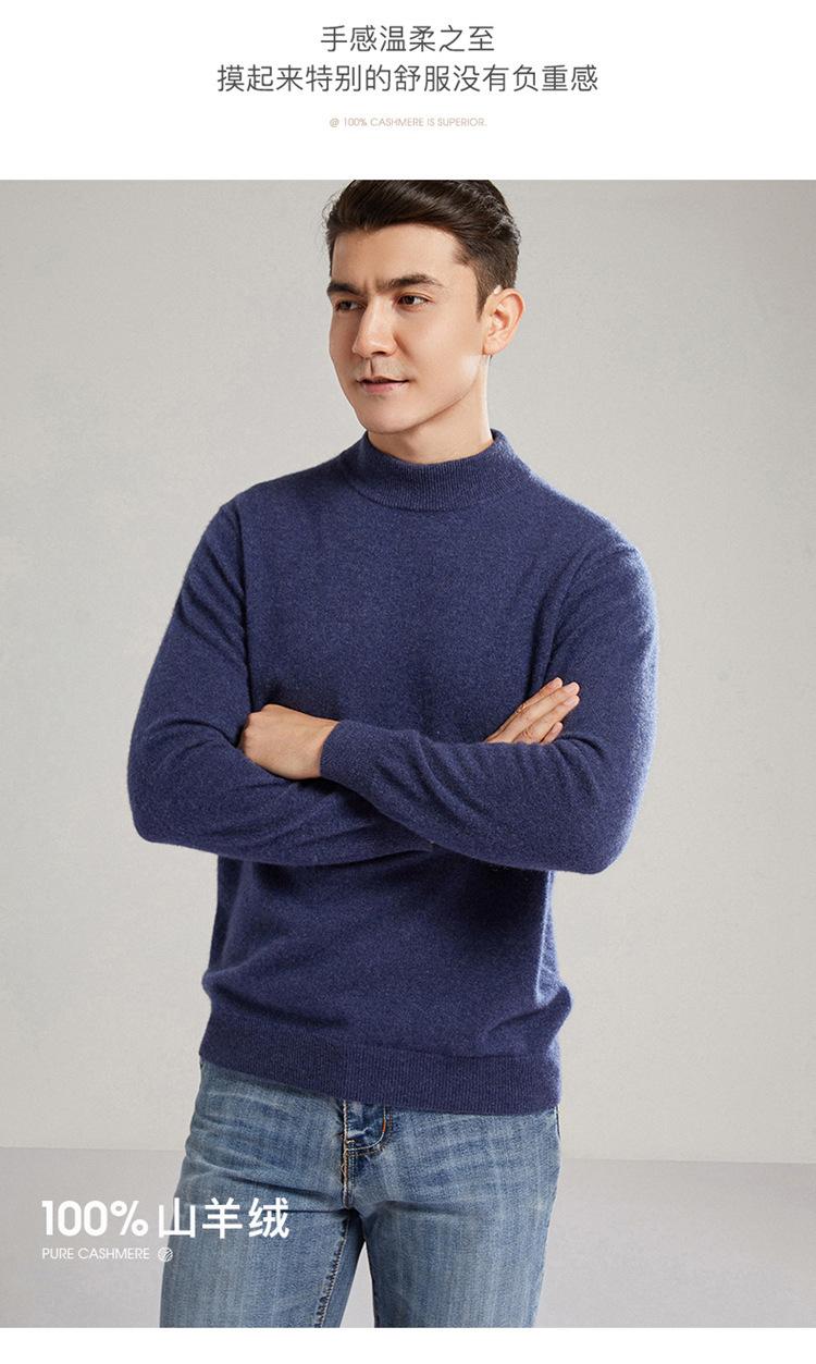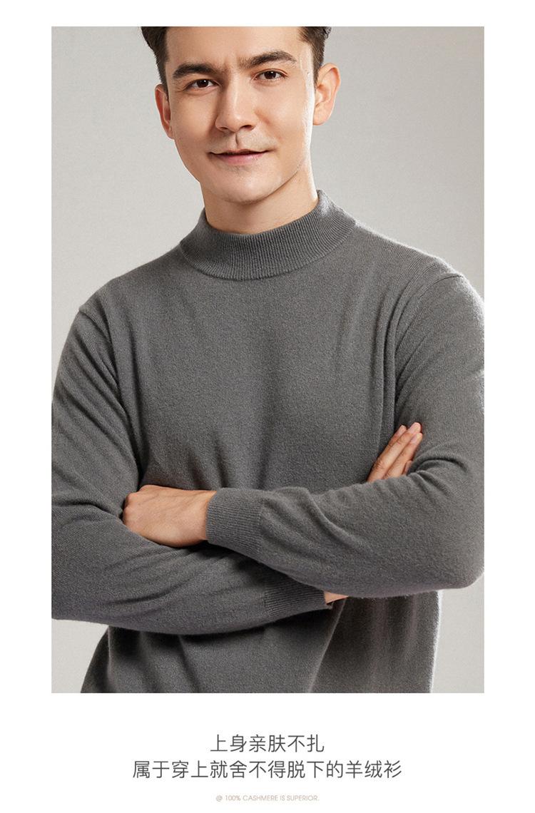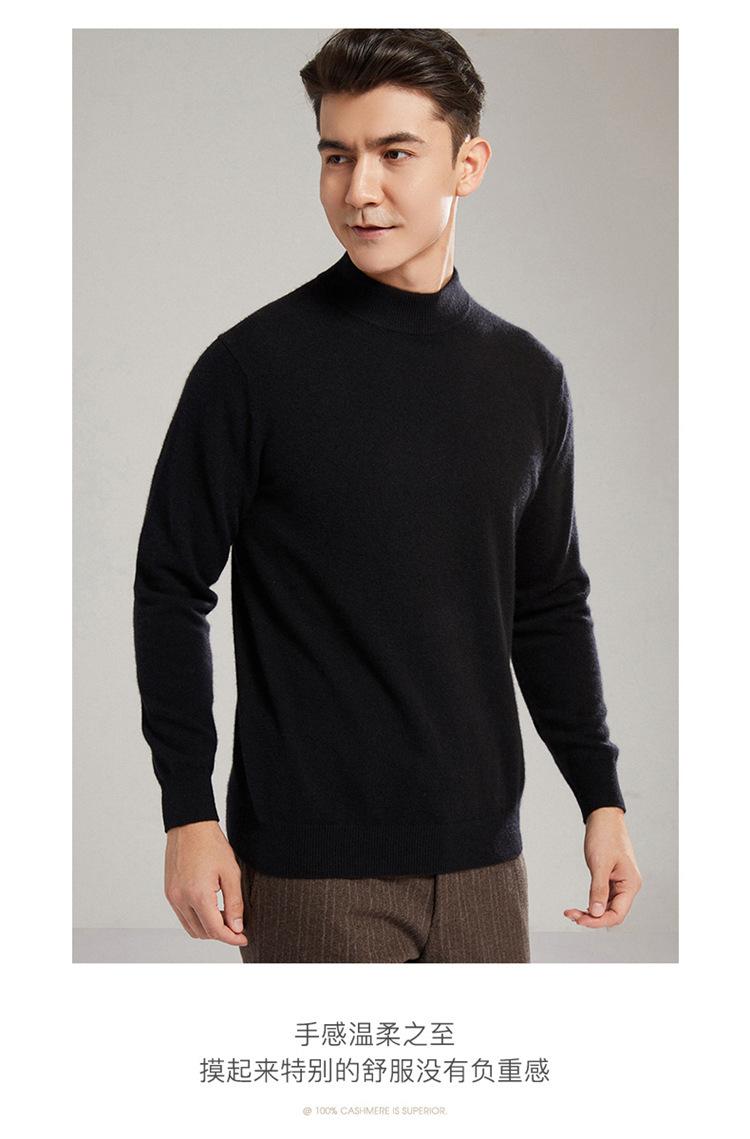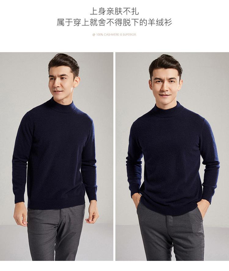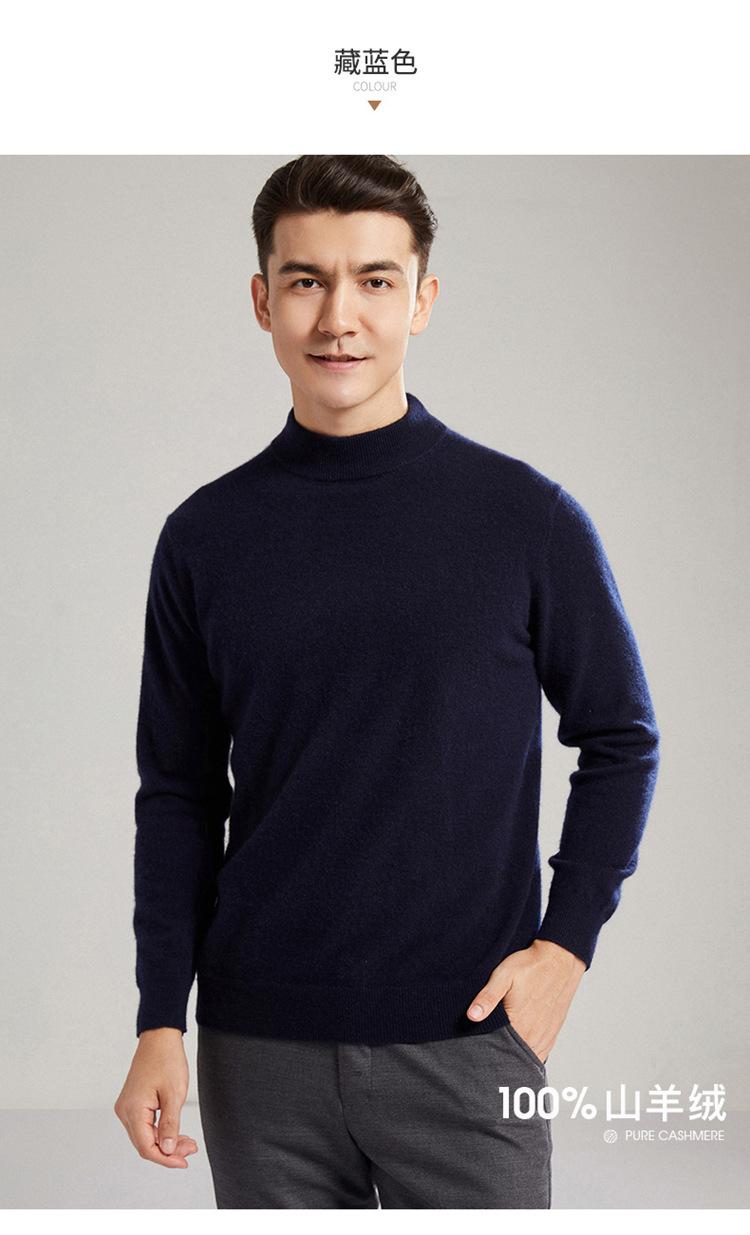 Otoño e invierno nuevo suéter de cachemira cálido de cuello alto medio para hombre, camisa de fondo de cachemira 100% pura, suéter de color sólido, suéter de manga larga de moda