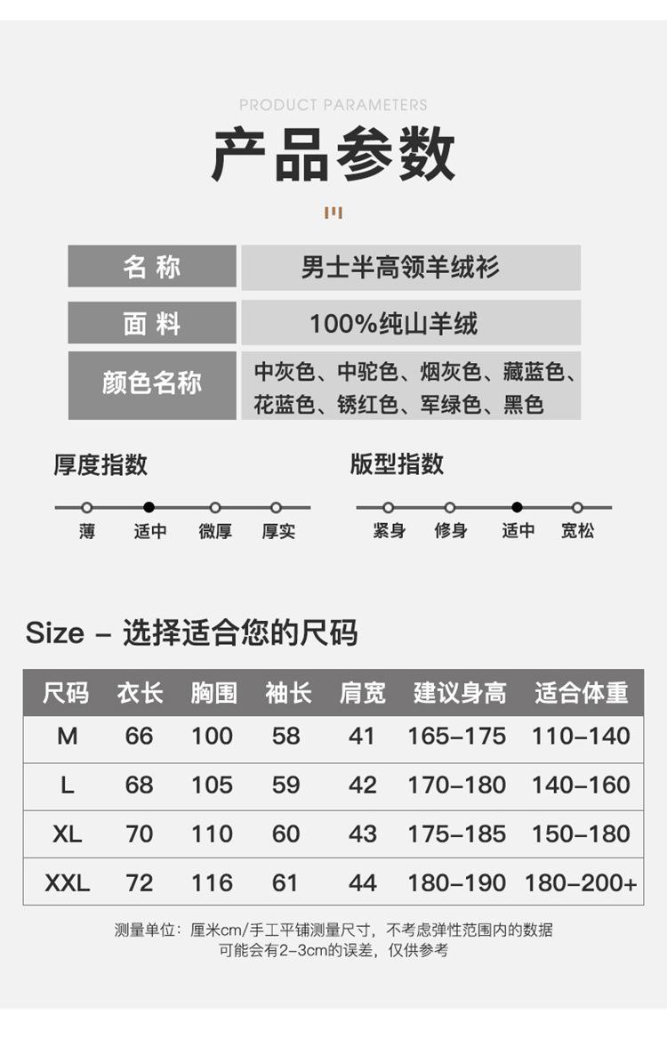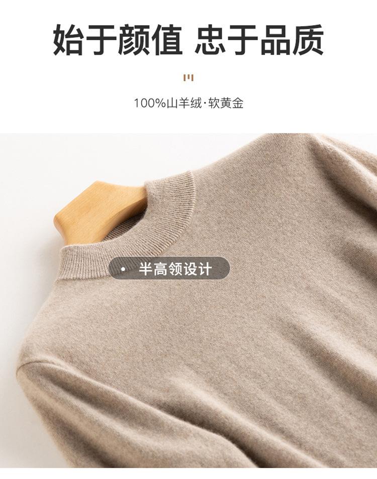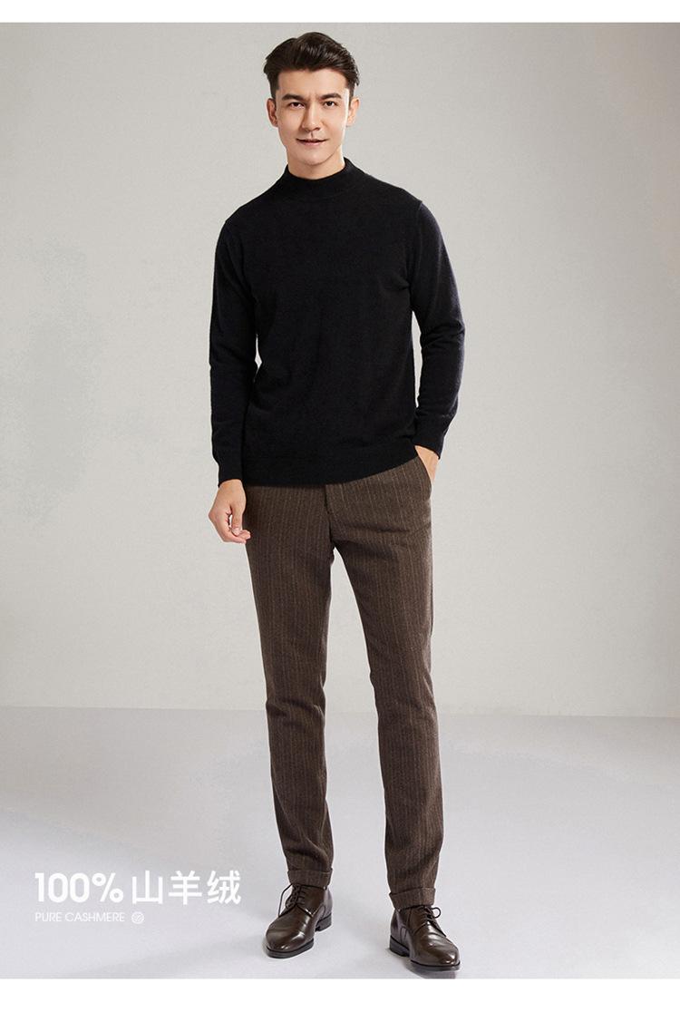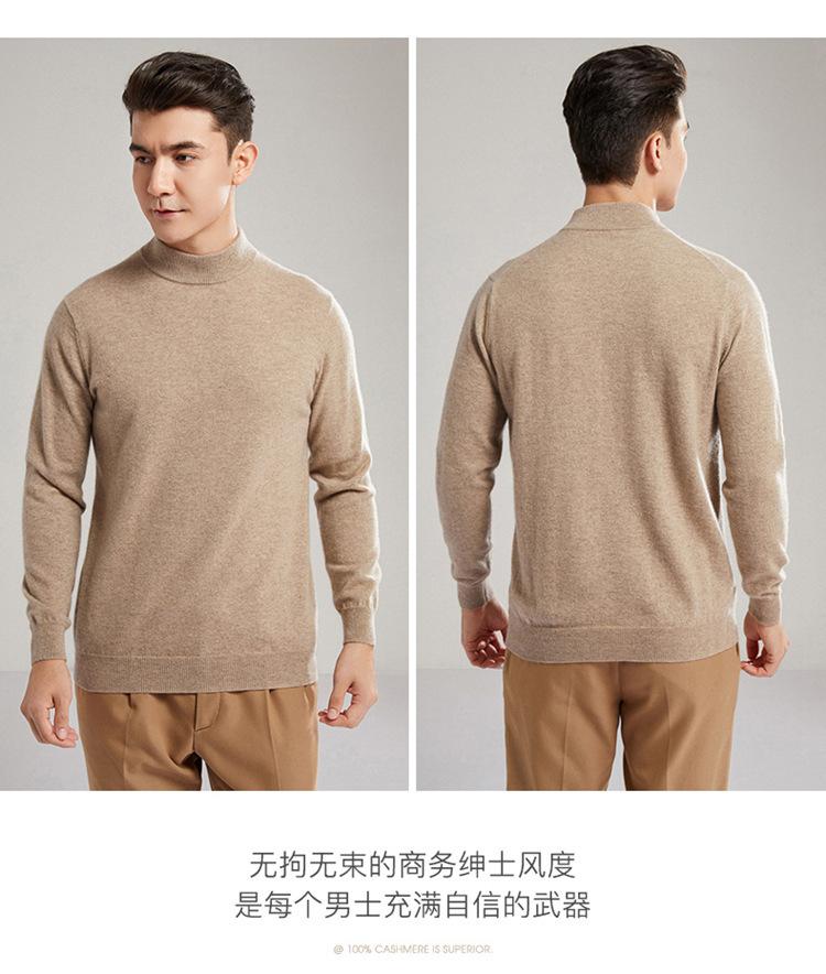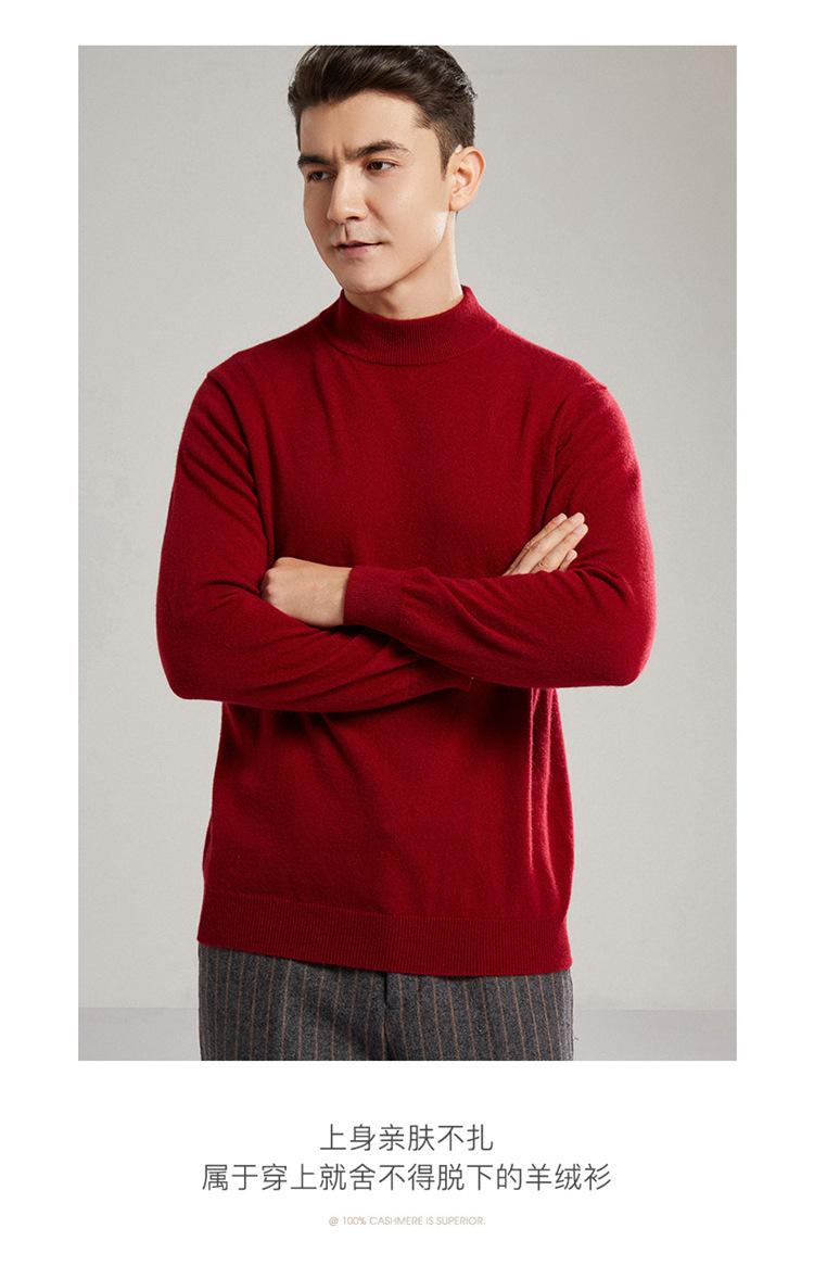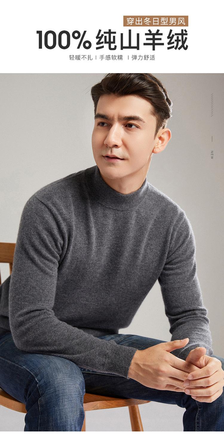 Otoño e invierno nuevo suéter de cachemira cálido de cuello alto medio para hombre, camisa de fondo de cachemira 100% pura, suéter de color sólido, suéter de manga larga de moda