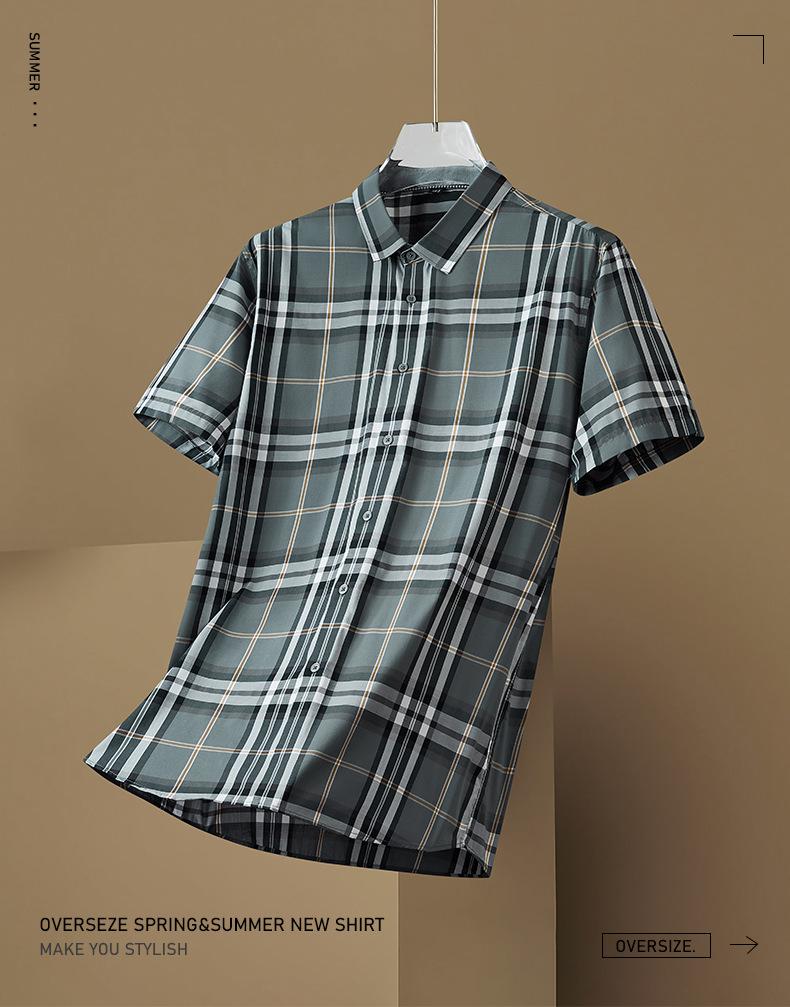 Camisa a cuadros de talla grande para hombre, nueva camisa de verano de talla grande para hombre gordo, camisa holgada informal de fibra de bambú, fina