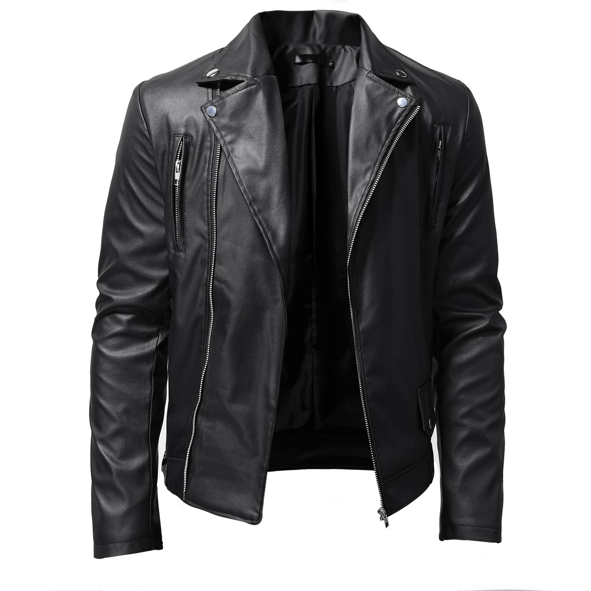 Chaqueta de cuero sintético para hombre, estilo punk, estilo motociclista, con cuello alto, estilo europeo y americano, de comercio exterior de Amazon.