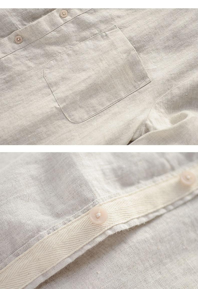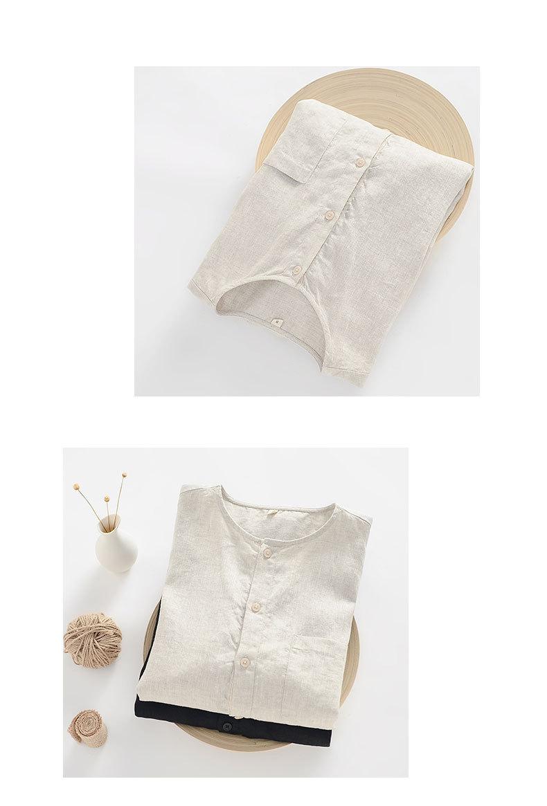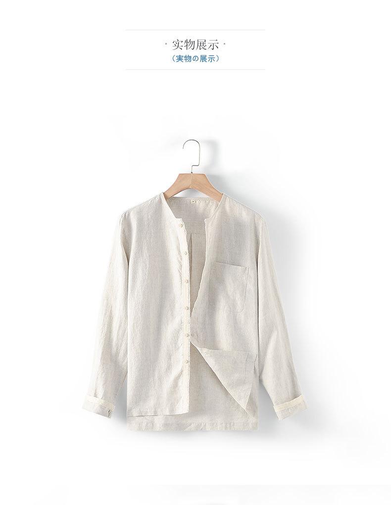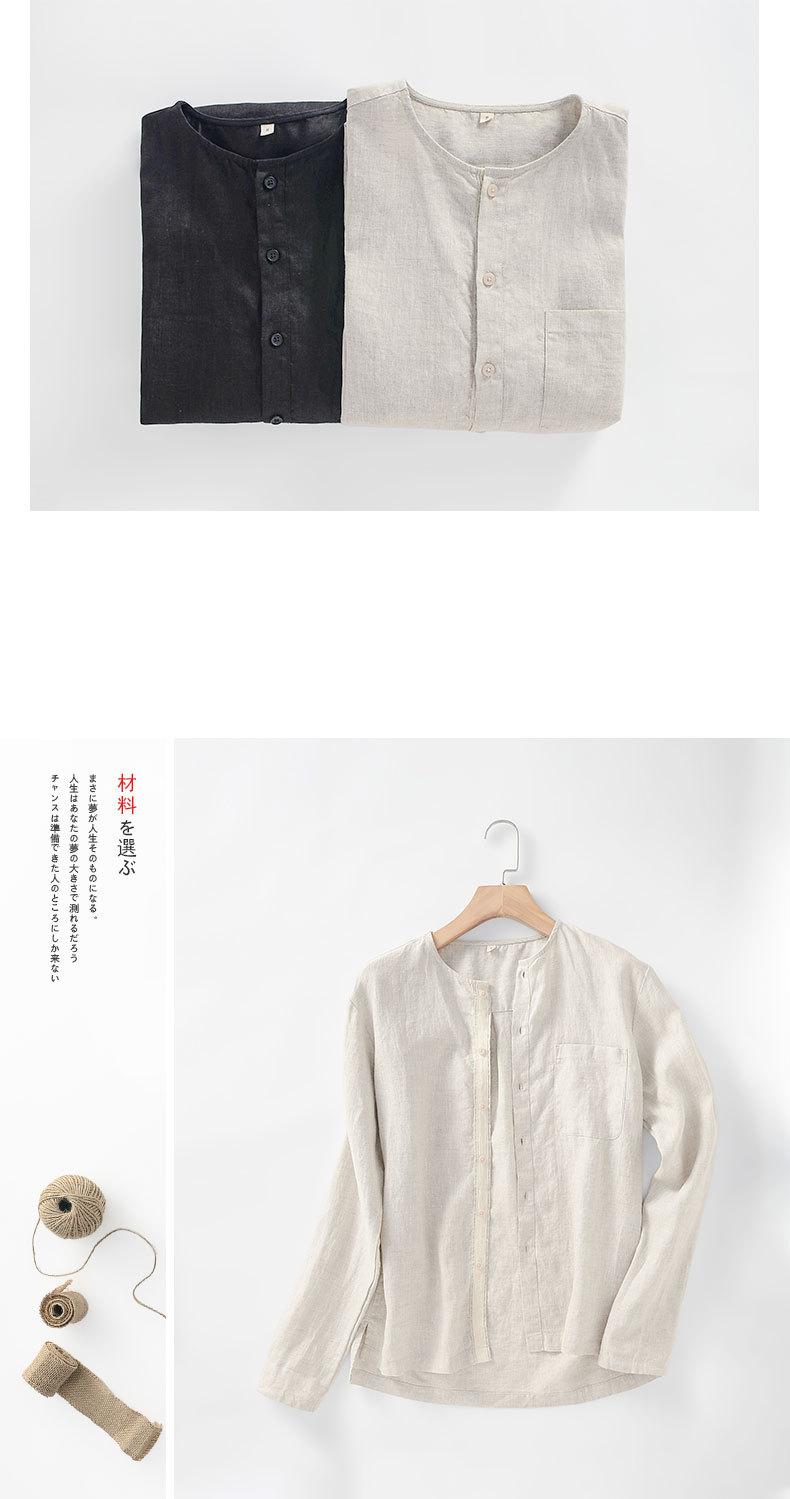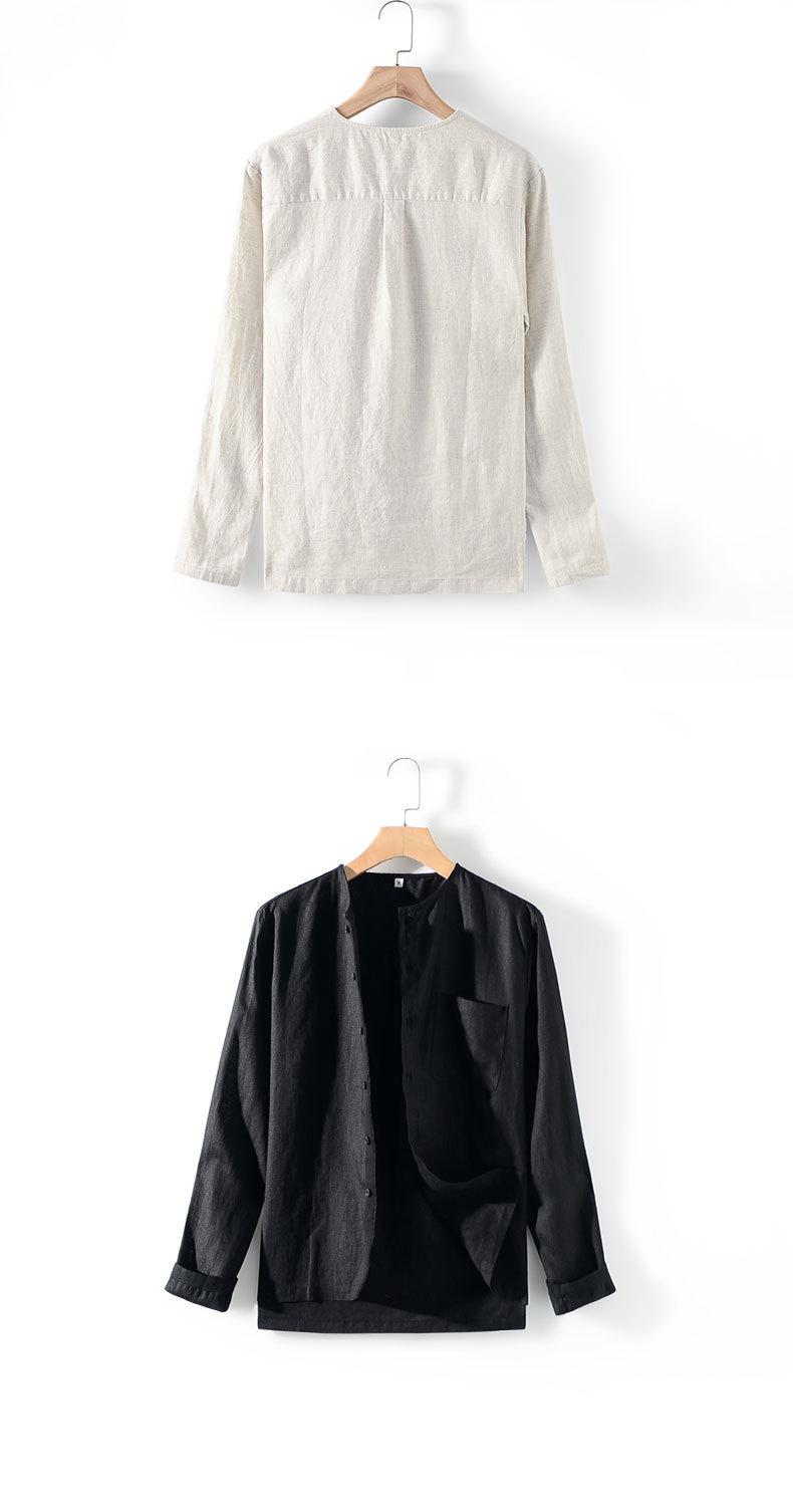Camisa de Lino para Hombre Nueva Primavera 2025 Casual Cuello Redondo Bolsillo de Parche Manga Larga Holgada Lino para Hombre D024