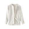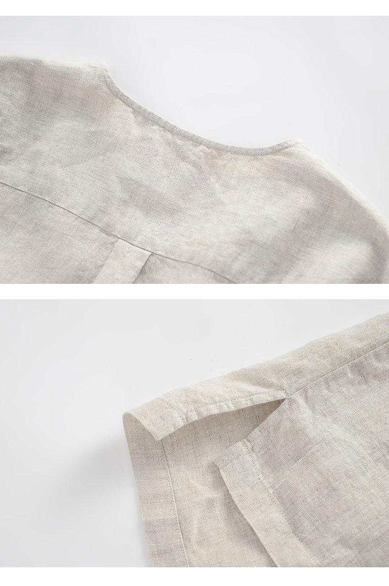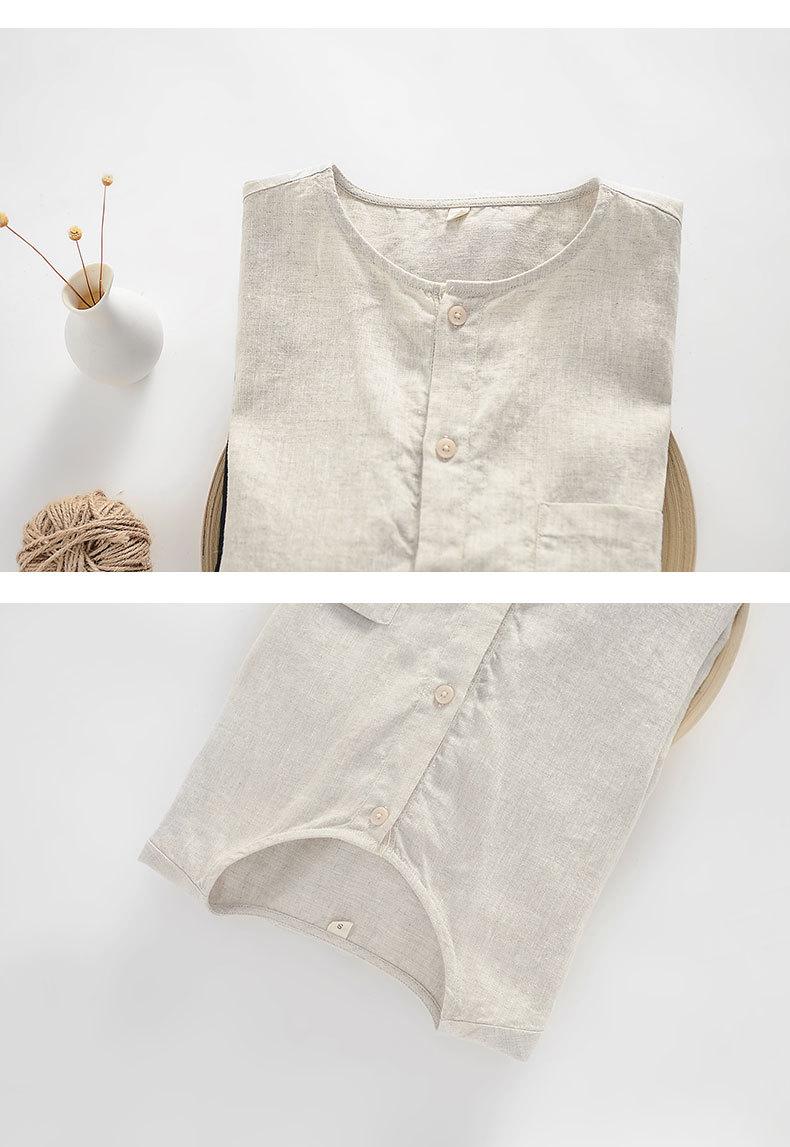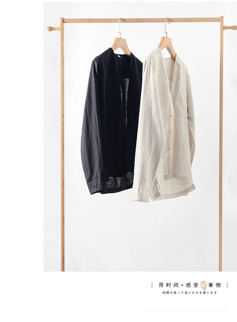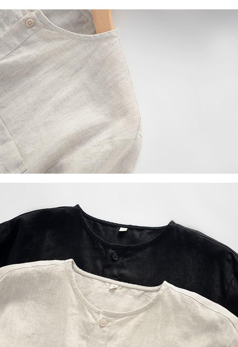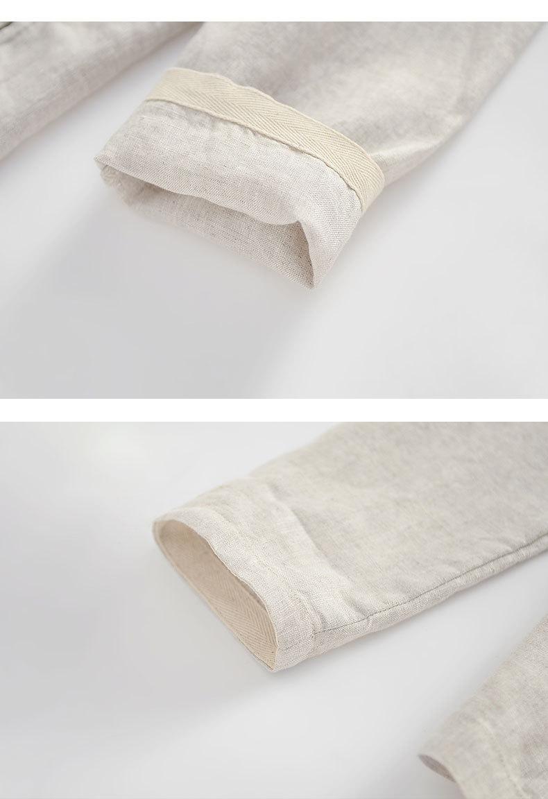 Camisa de Lino para Hombre Nueva Primavera 2025 Casual Cuello Redondo Bolsillo de Parche Manga Larga Holgada Lino para Hombre D024