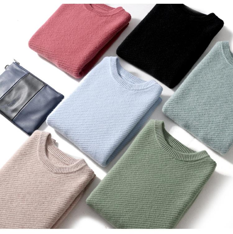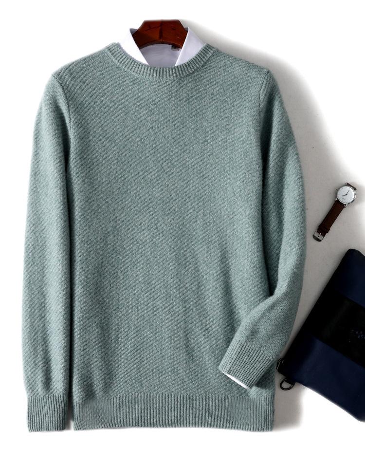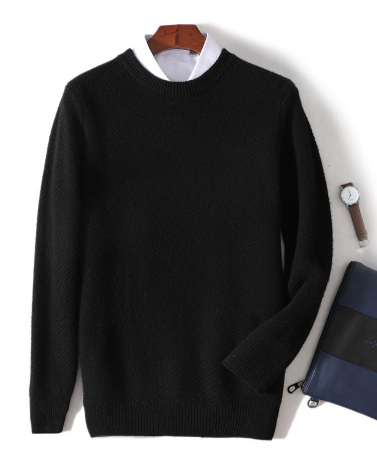Suéter de cuello redondo grueso para hombre, suéter informal de color sólido, suéter de punto suelto, nuevo de otoño e invierno