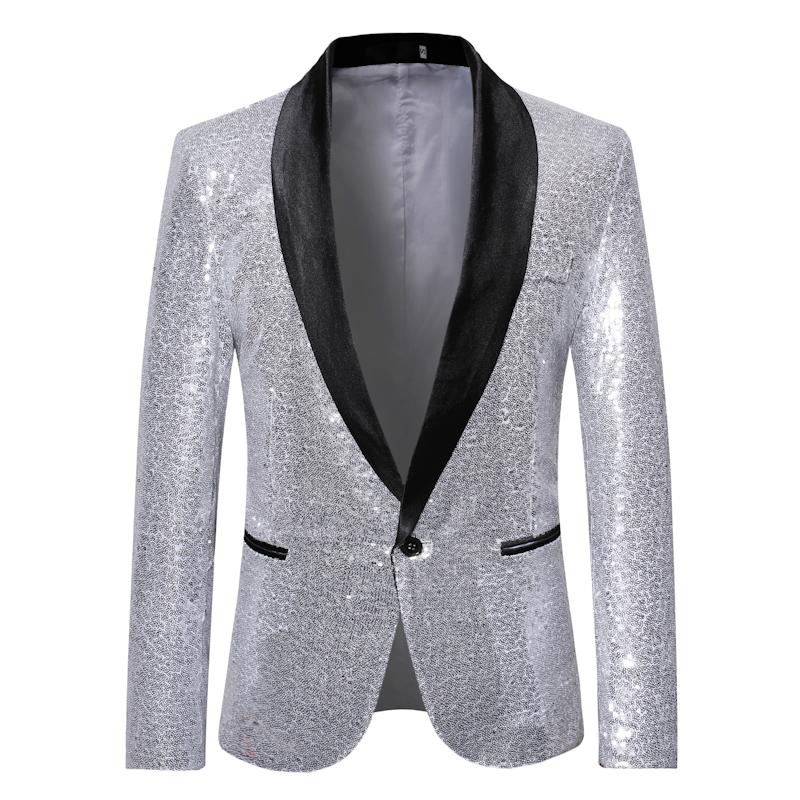 Compra Traje de hombre nuevo de comercio exterior transfronterizo, talla europea, estilo coreano, moda juvenil, informal, para discoteca, con lentejuelas, chaqueta individual para hombre al por mayor en Joom.pro