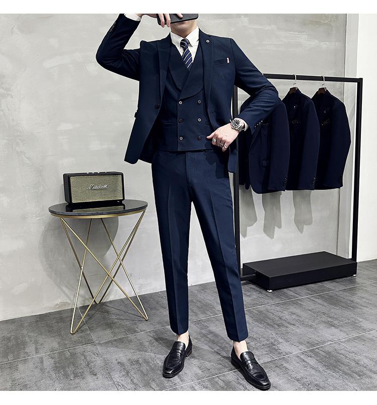 Traje Británico Nuevo Traje para Hombre Traje Slim Pequeño Traje Negocios Vestido Formal Novio Vestido de Boda Traje Casual