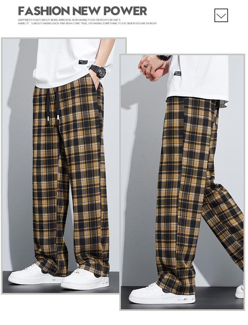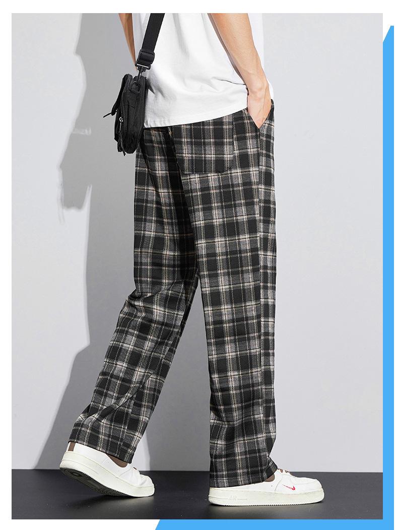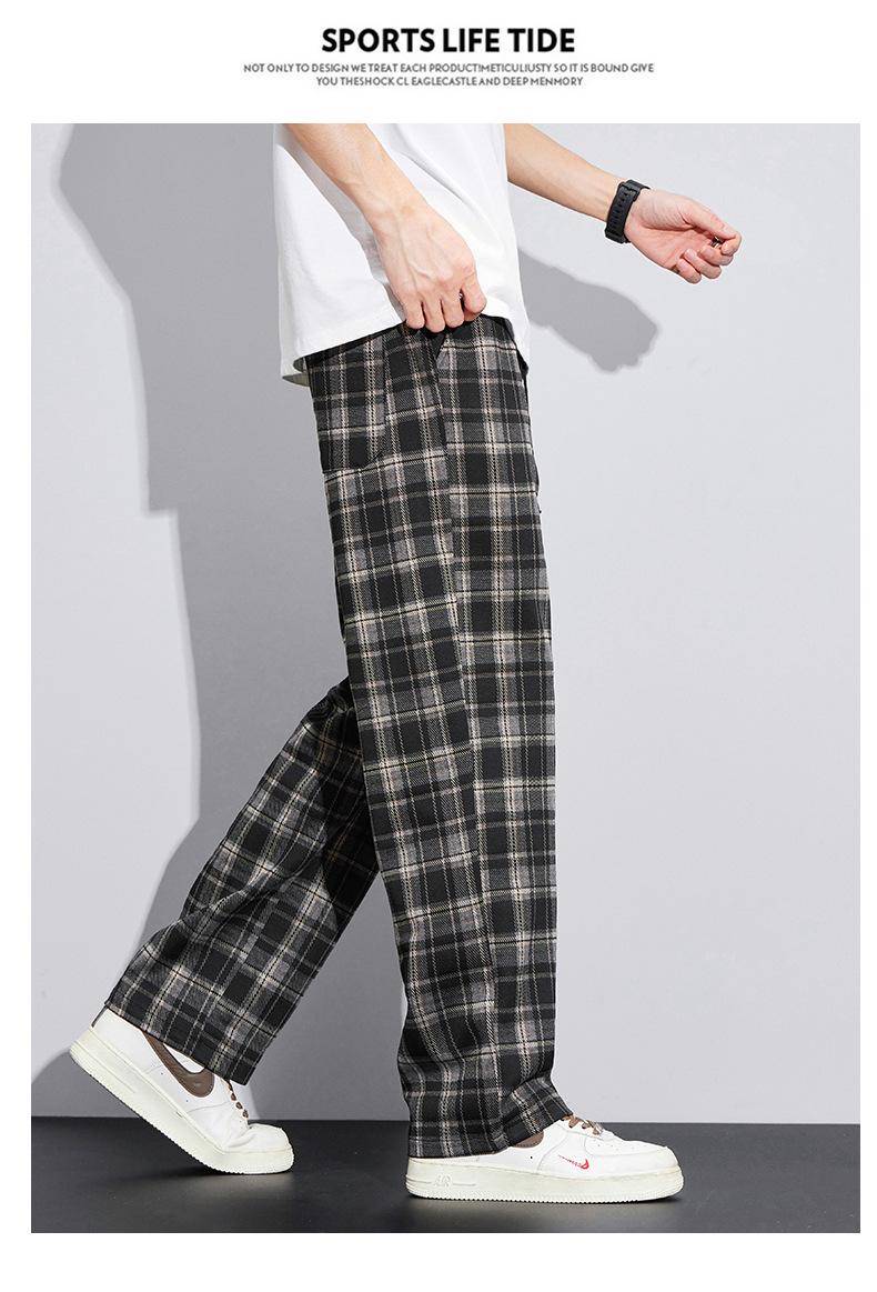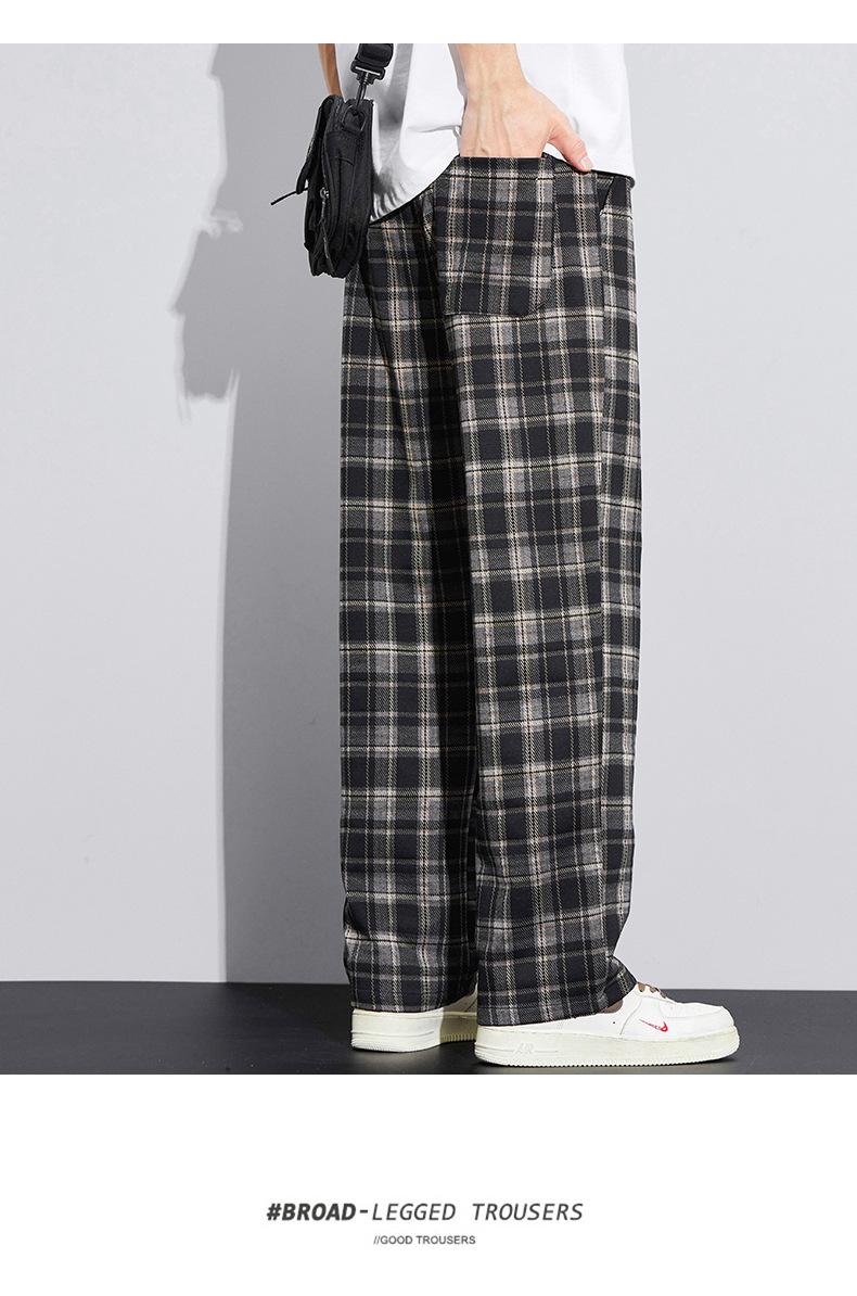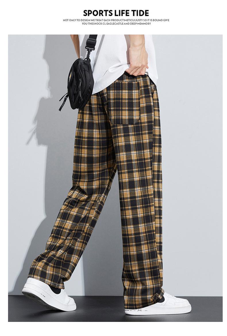 Pantalones casuales de moda para hombre, de marca de moda, con cuadros de colores contrastantes retro, holgados, rectos, de pierna ancha, para primavera y otoño, para jóvenes.