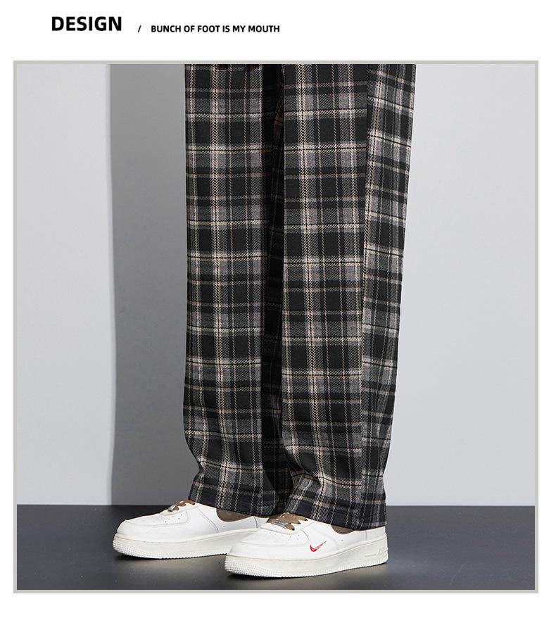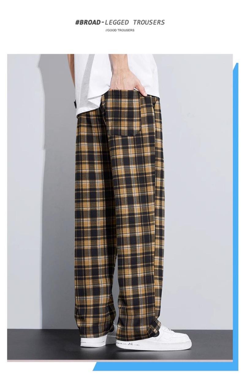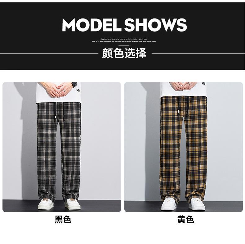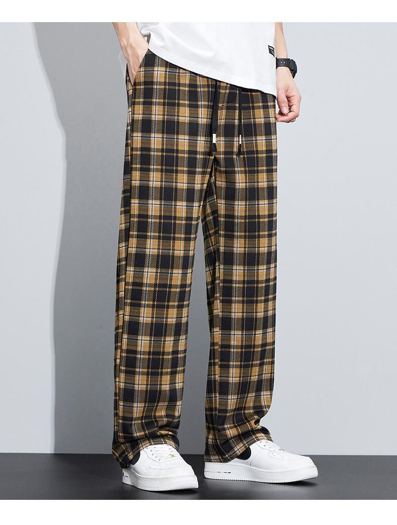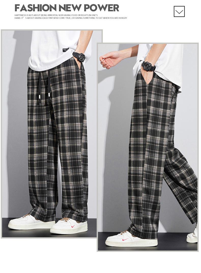 Pantalones casuales de moda para hombre, de marca de moda, con cuadros de colores contrastantes retro, holgados, rectos, de pierna ancha, para primavera y otoño, para jóvenes.