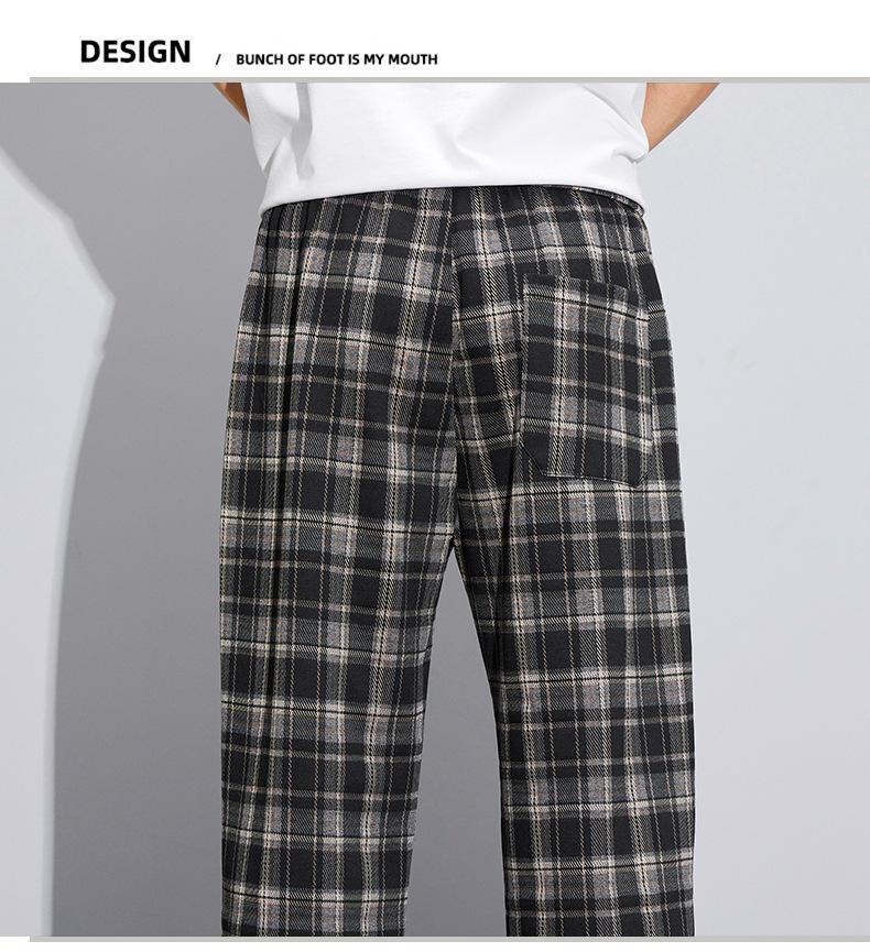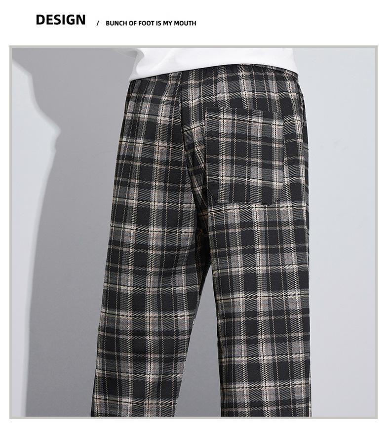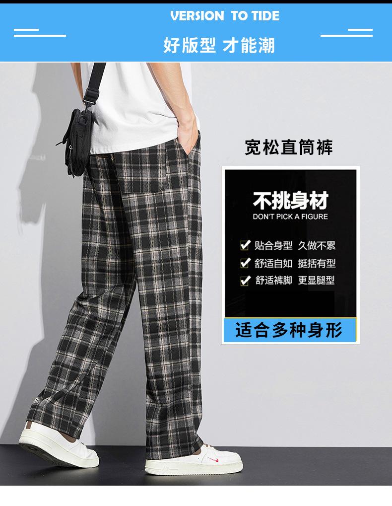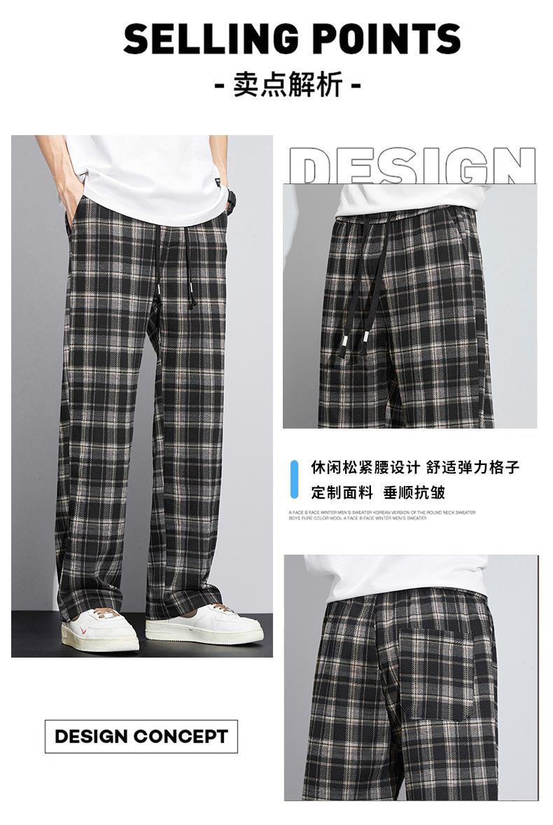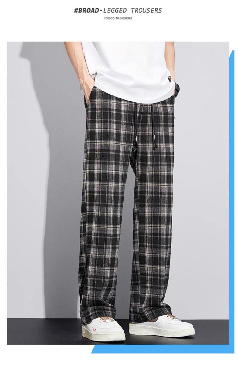 Pantalones casuales de moda para hombre, de marca de moda, con cuadros de colores contrastantes retro, holgados, rectos, de pierna ancha, para primavera y otoño, para jóvenes.