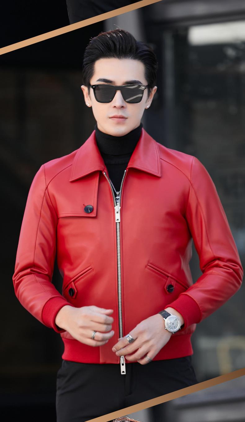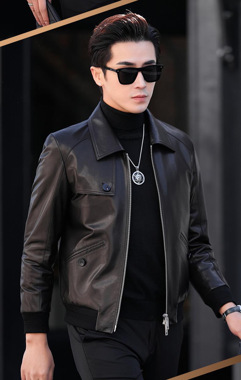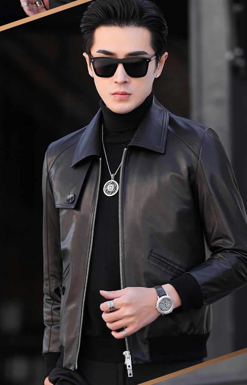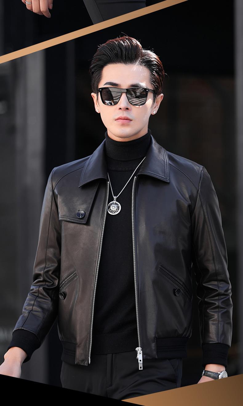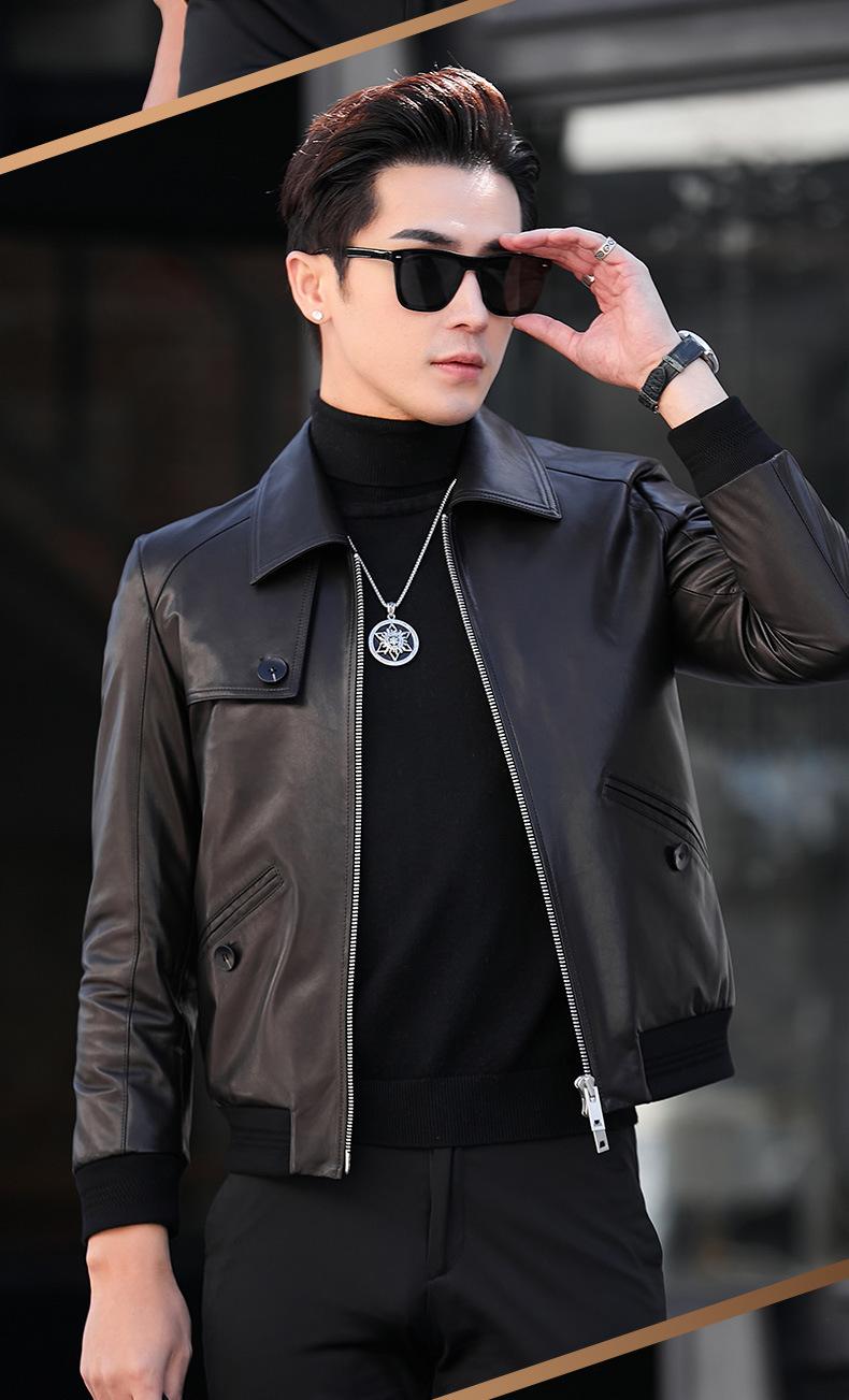 Primavera y Otoño 2025 Nueva Chaqueta de Cuero Genuino Haining para Hombre, Guapa, Slim, Corta, de Piel de Oveja, Motocicleta