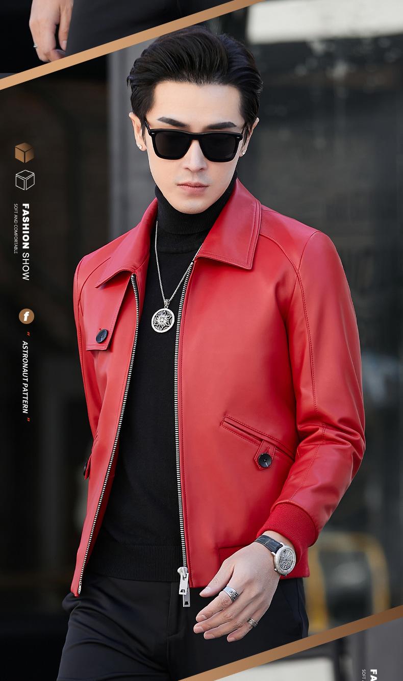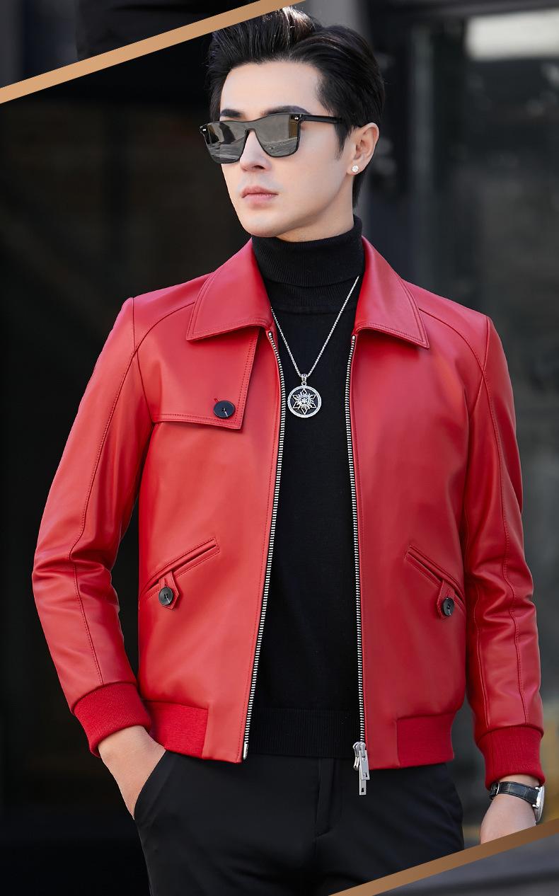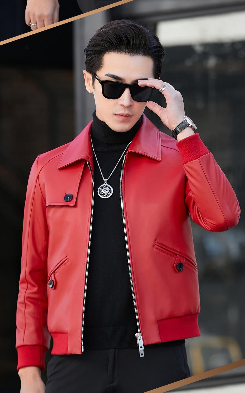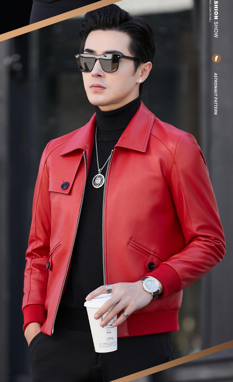 Primavera y Otoño 2025 Nueva Chaqueta de Cuero Genuino Haining para Hombre, Guapa, Slim, Corta, de Piel de Oveja, Motocicleta