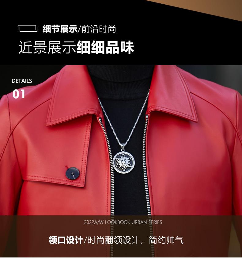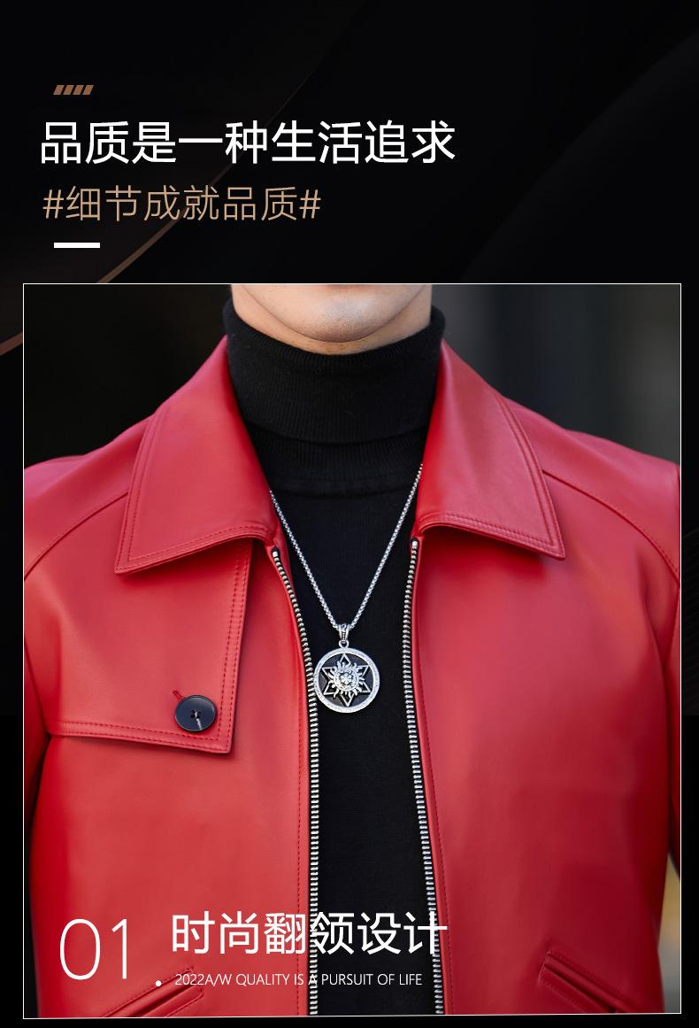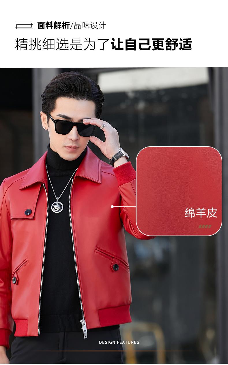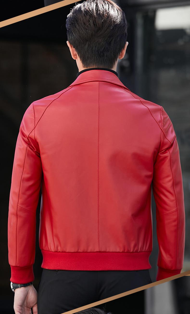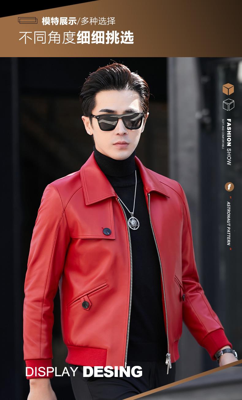 Primavera y Otoño 2025 Nueva Chaqueta de Cuero Genuino Haining para Hombre, Guapa, Slim, Corta, de Piel de Oveja, Motocicleta